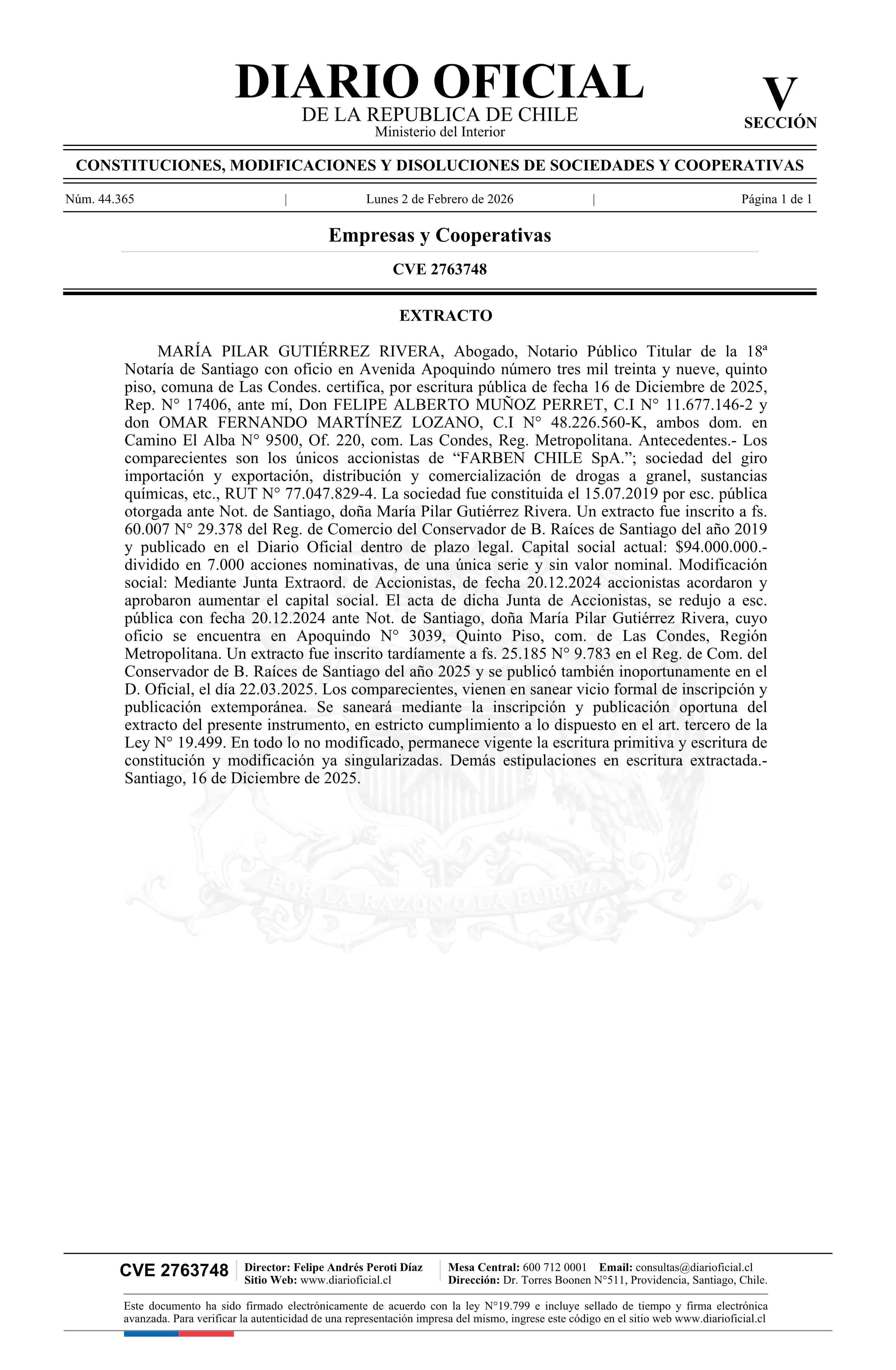 Título: FARBEN CHILE SpA 77.047.829-4*