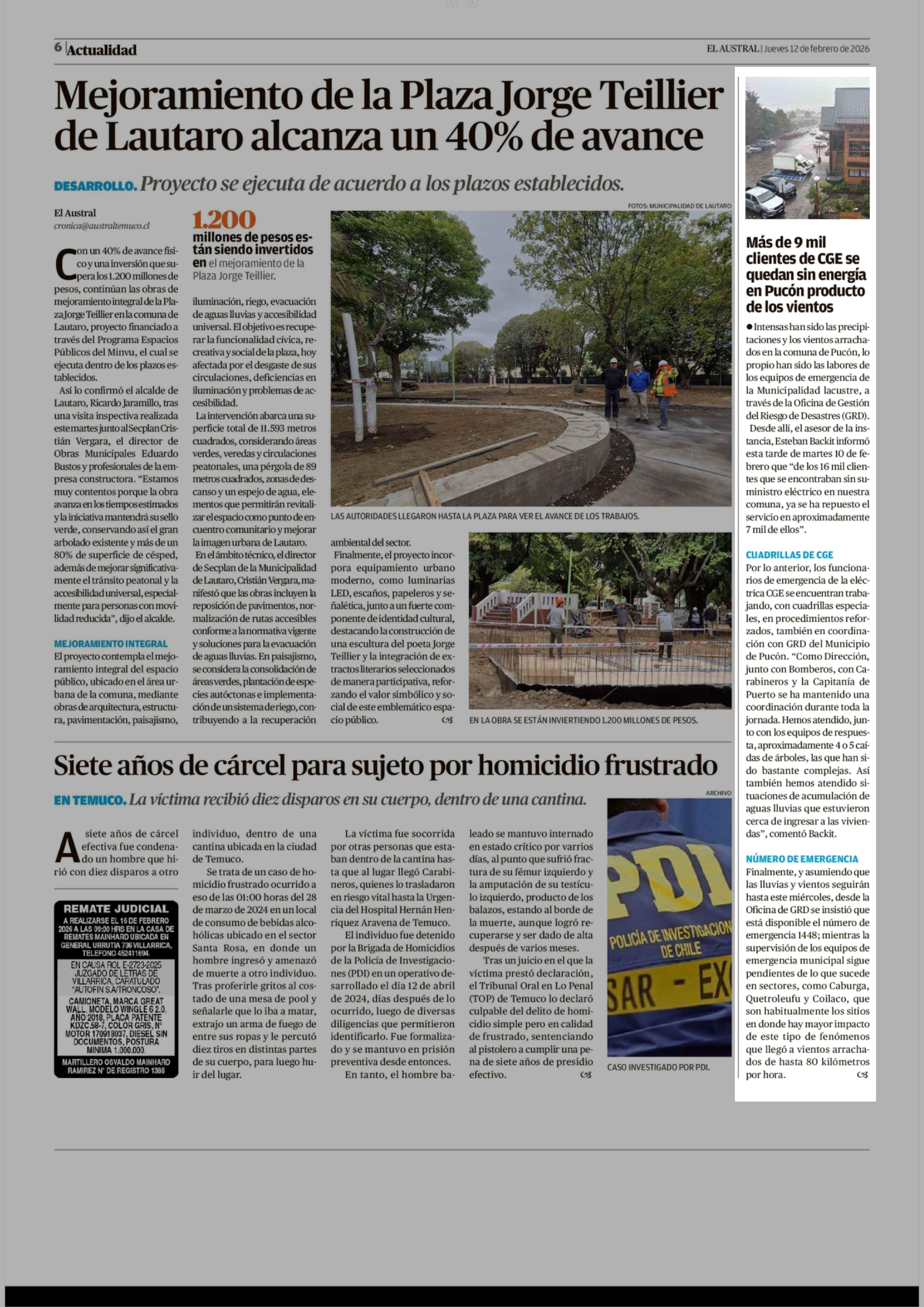 | Fecha: | 12-02-2026 | Sector: | Noticia general | Región: | Región de la Araucanía |