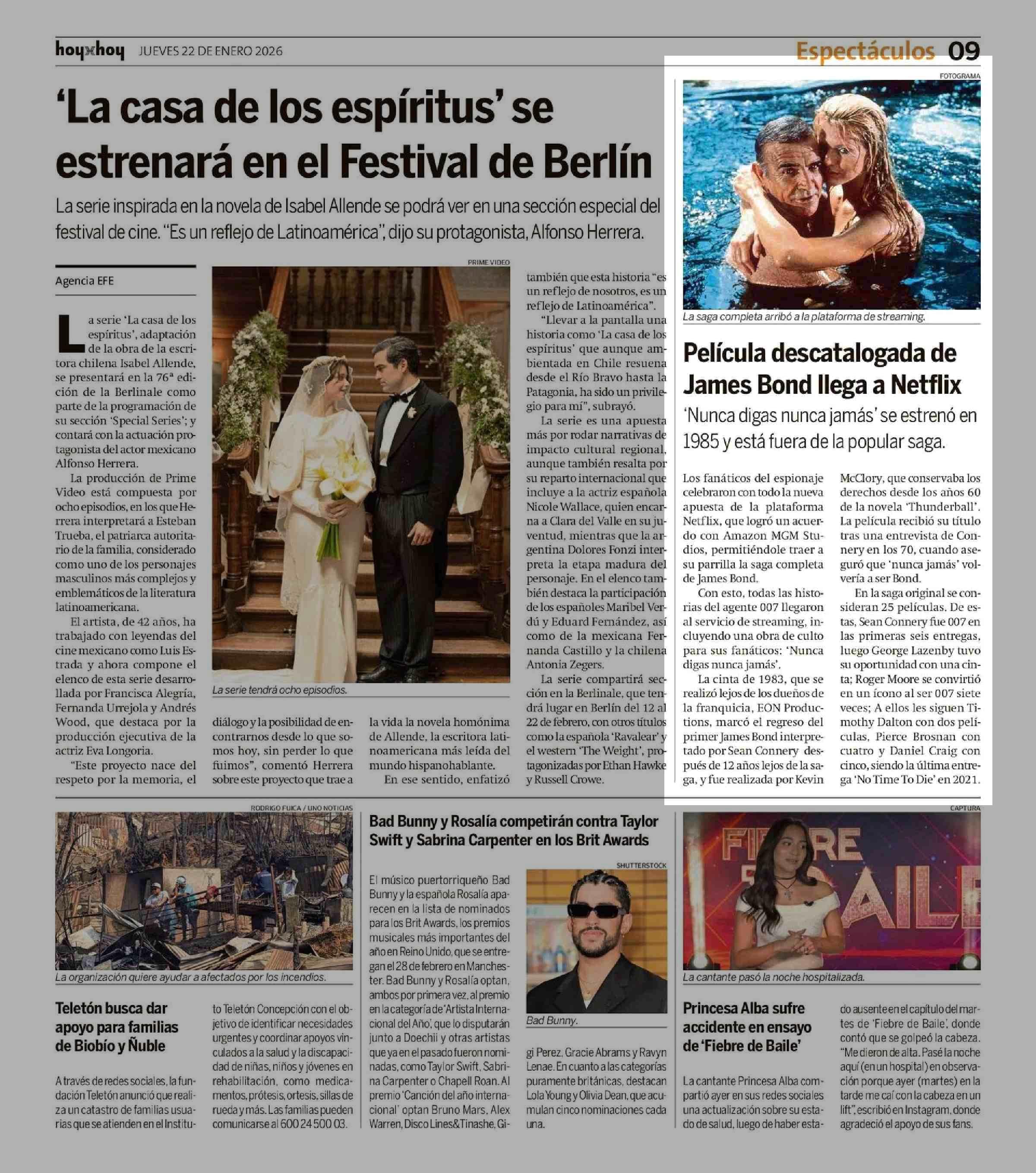 Película descatalogada de James Bond llega a Netflix 22-01-2026 Hoy x Hoy |