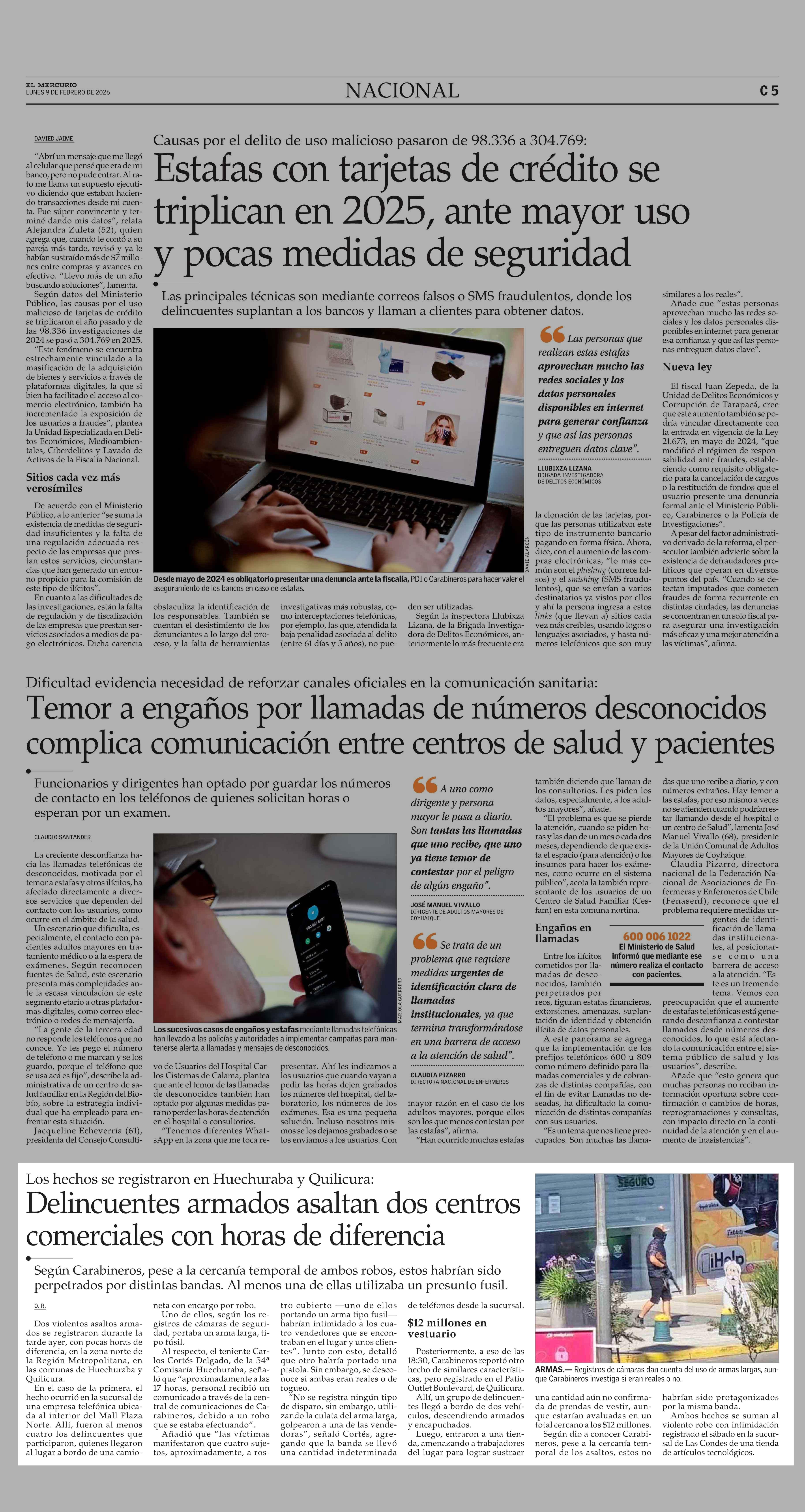 Delincuentes armados asaltan dos centros comerciales con horas de diferencia 09-02-2026 El Mercurio |