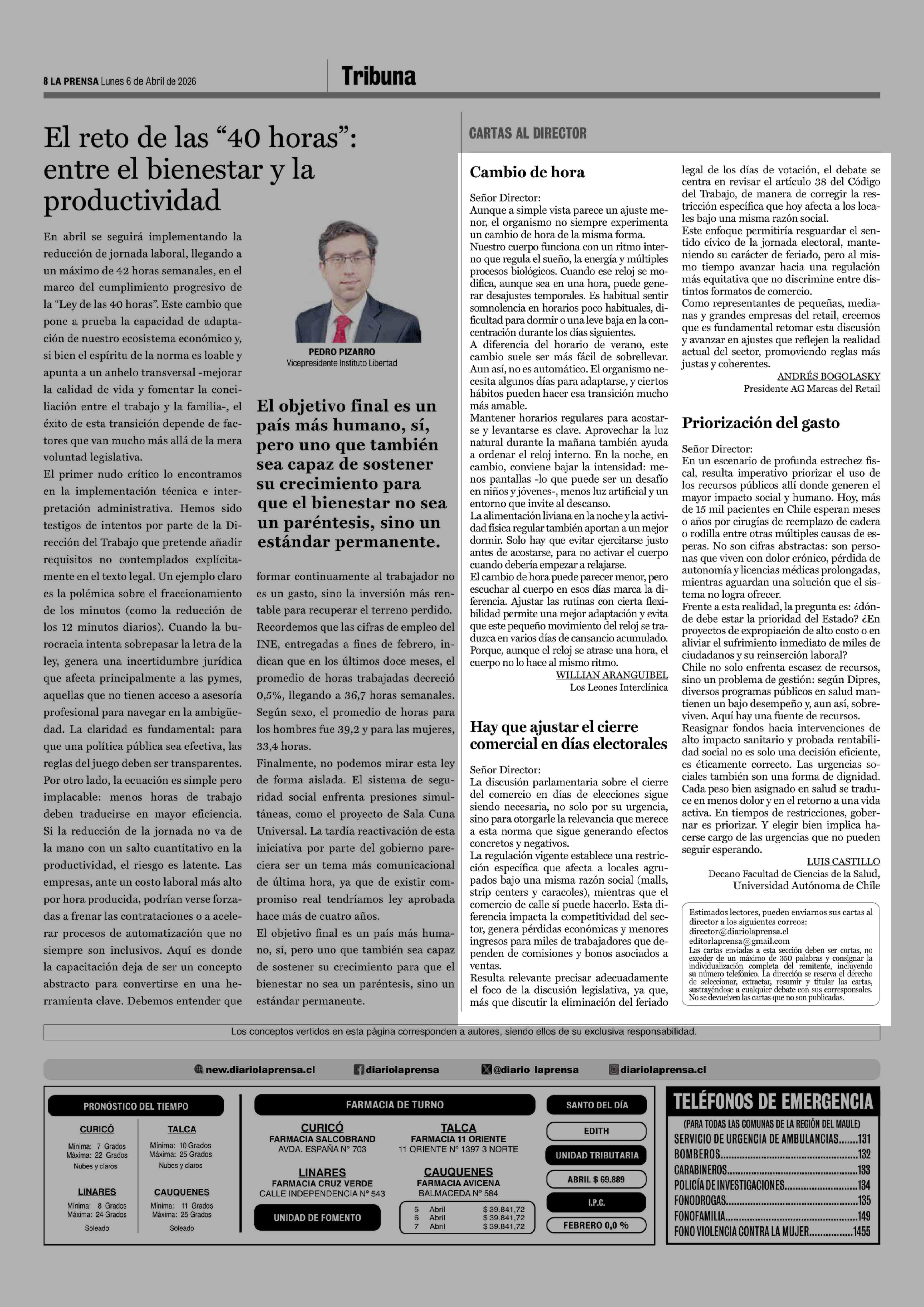 Cartas: Hay que ajustar el cierre comercial en días electorales 06-04-2026 La Prensa de Curicó |
