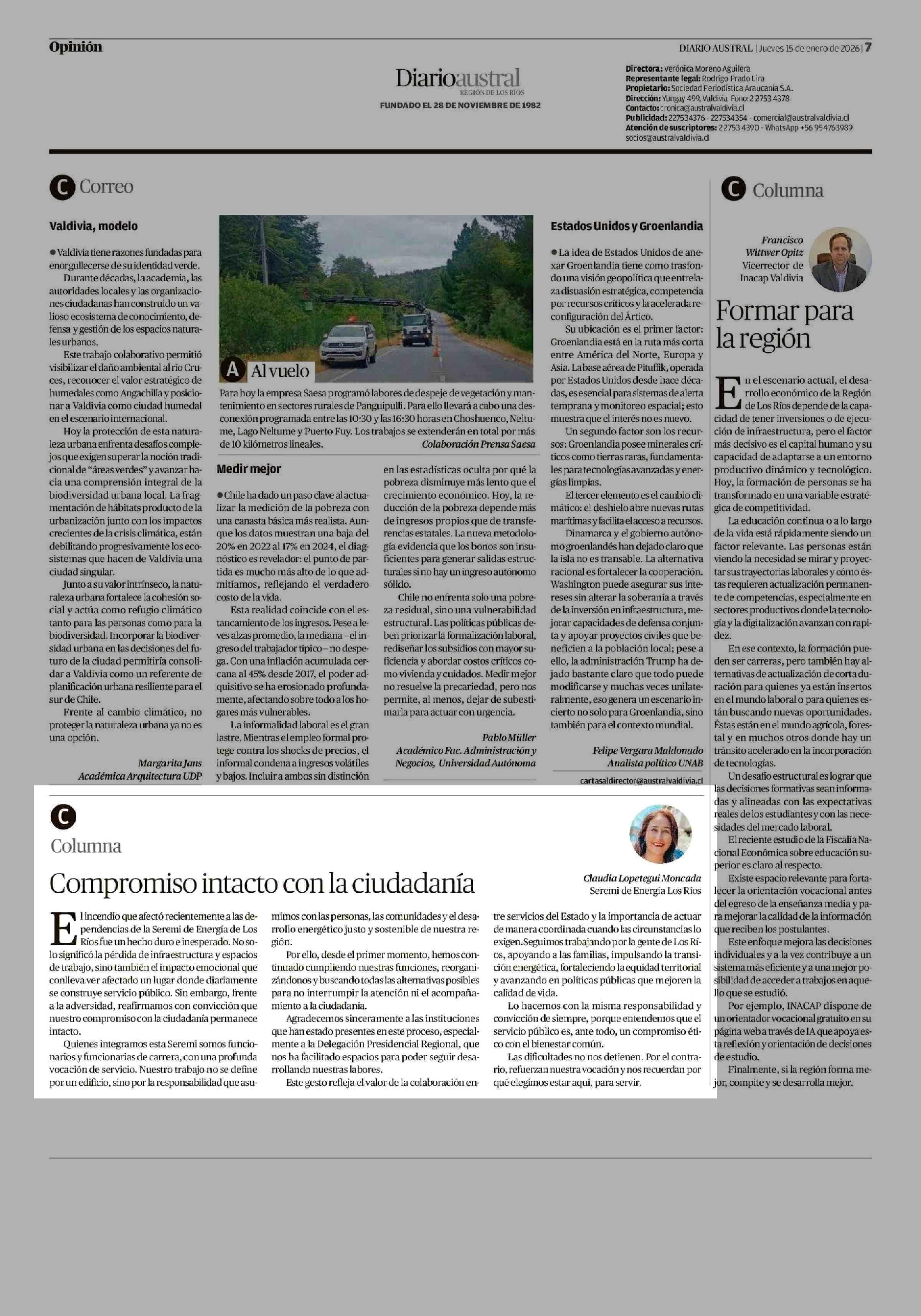 | Fecha: | 15-01-2026 | Sector: | Columnas de Opinión | Región: | Región de Los Ríos |