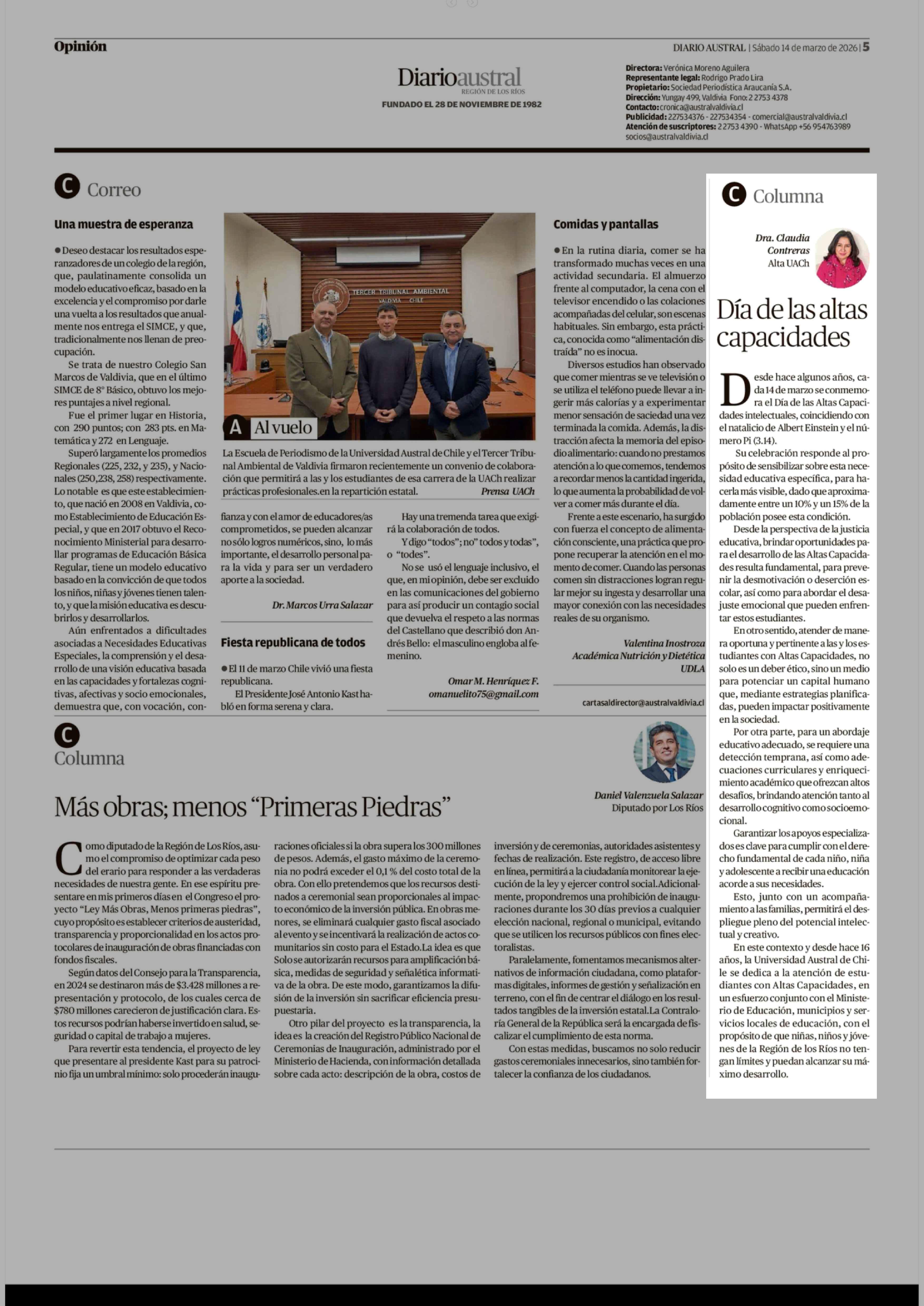 Fecha: 14-03-2026 Sector: Columnas de Opinión Región: Región de Los Ríos