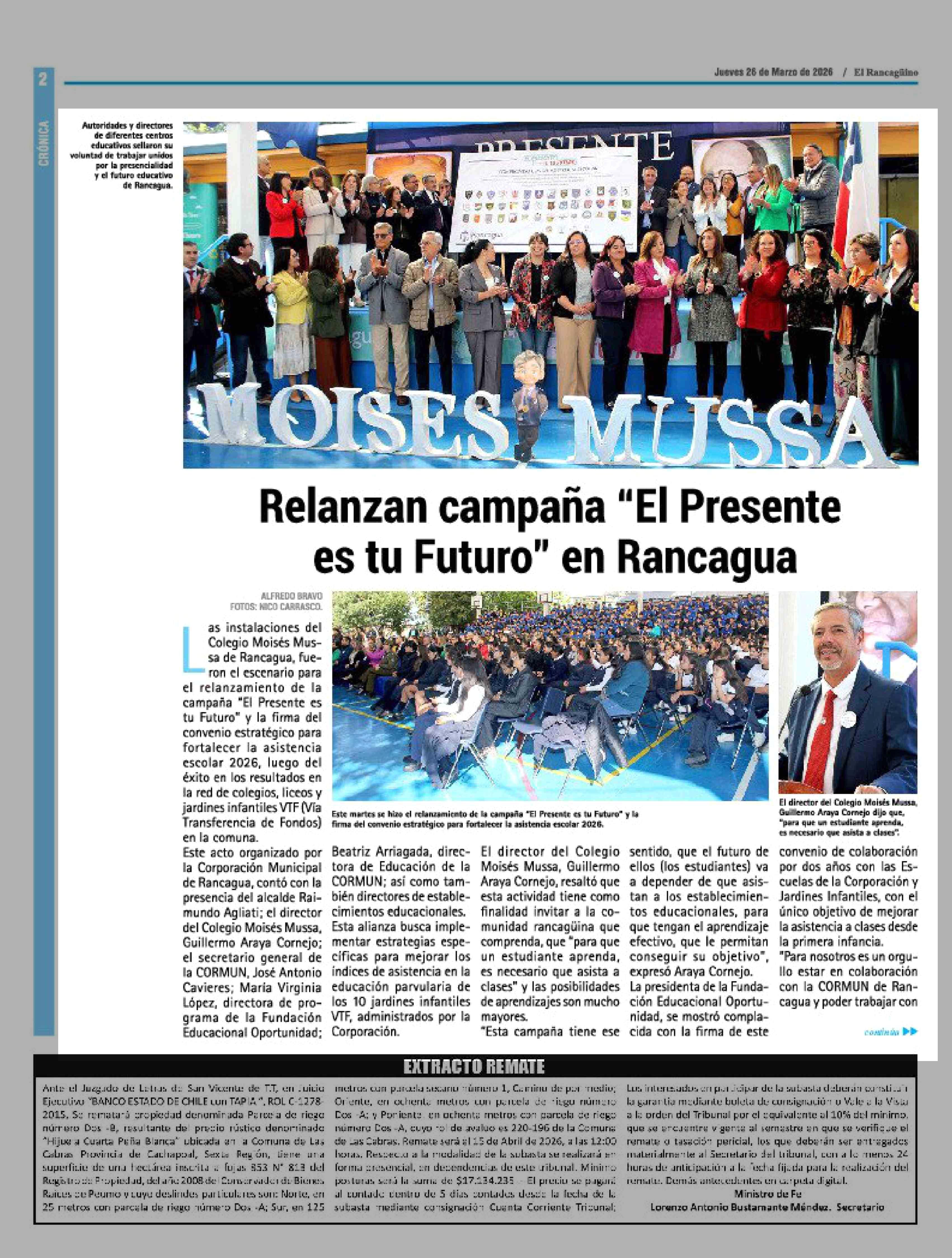 Relanzan campaña "El Presente es tu Futuro" en Rancagua 26-03-2026 El Rancagüino |