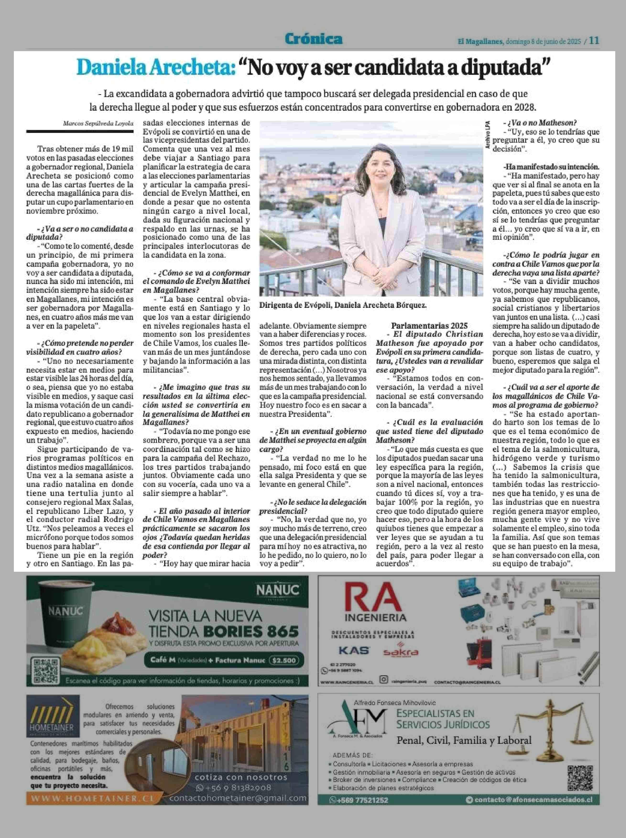 Daniela Arecheta: “No voy a ser candidata a diputada” 08-06-2025 El Magallanes |