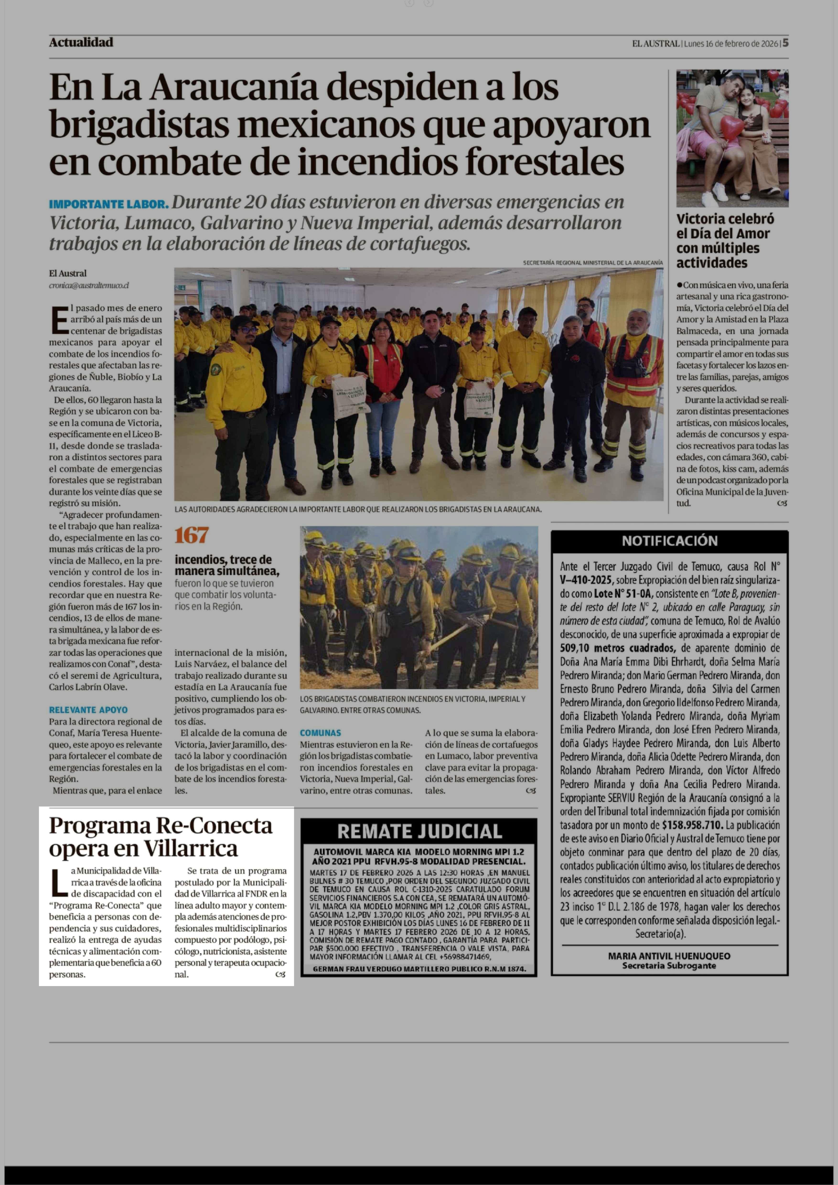 Fecha: 16-02-2026 Sector: Noticia general Región: Región de la Araucanía