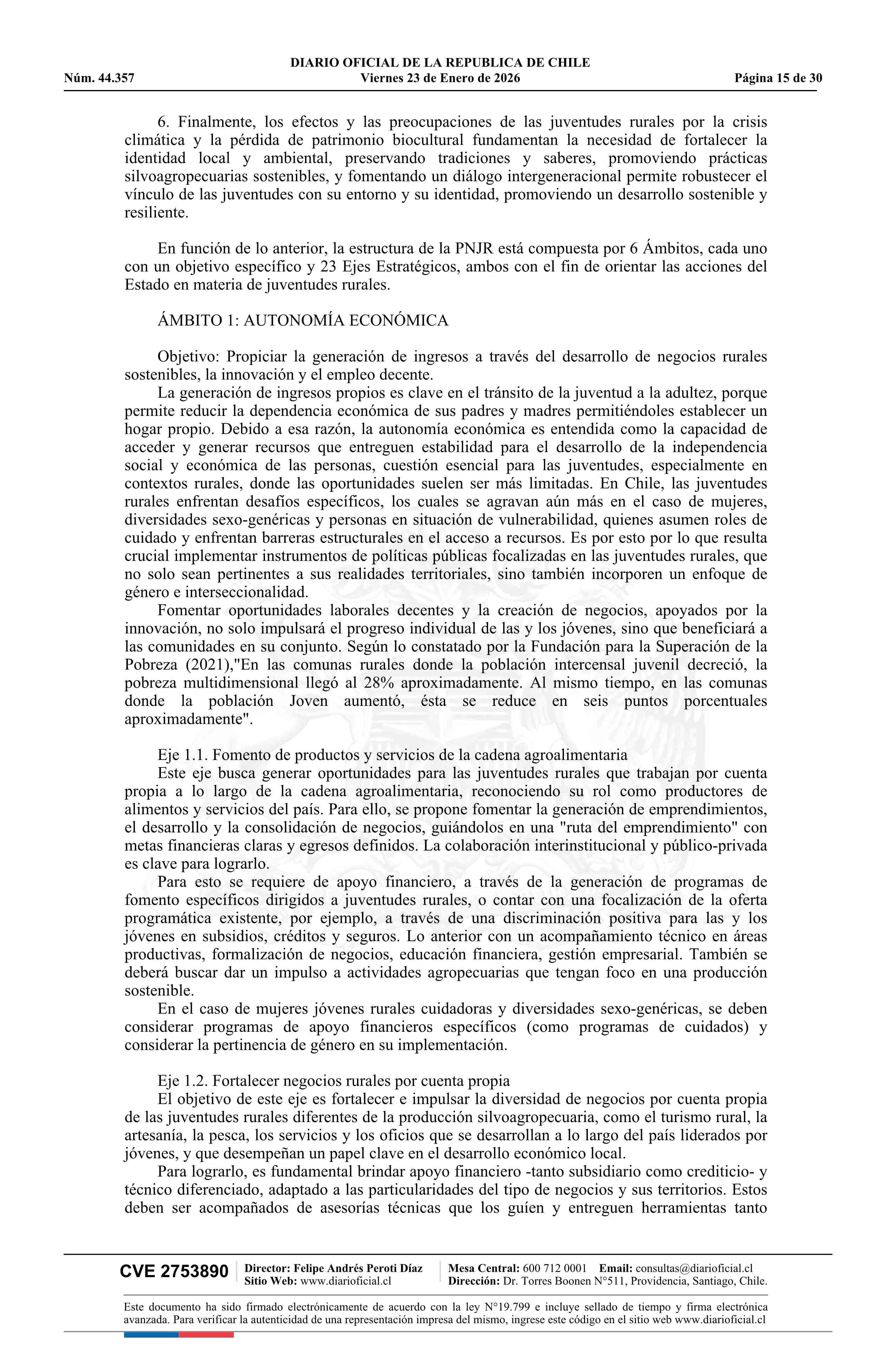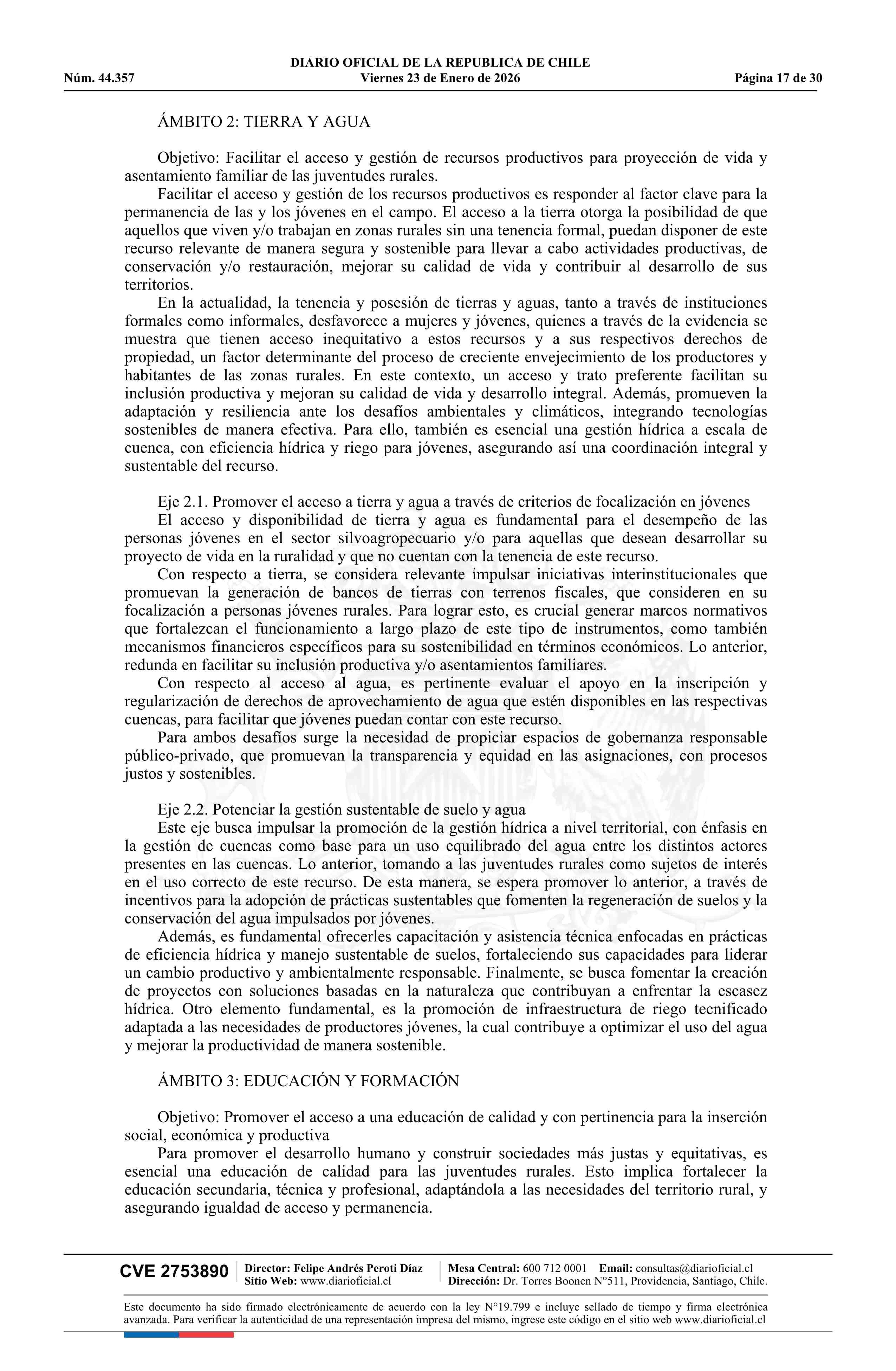 Decreto número 18, de 2025.- Aprueba Política Nacional de Juventudes Rurales