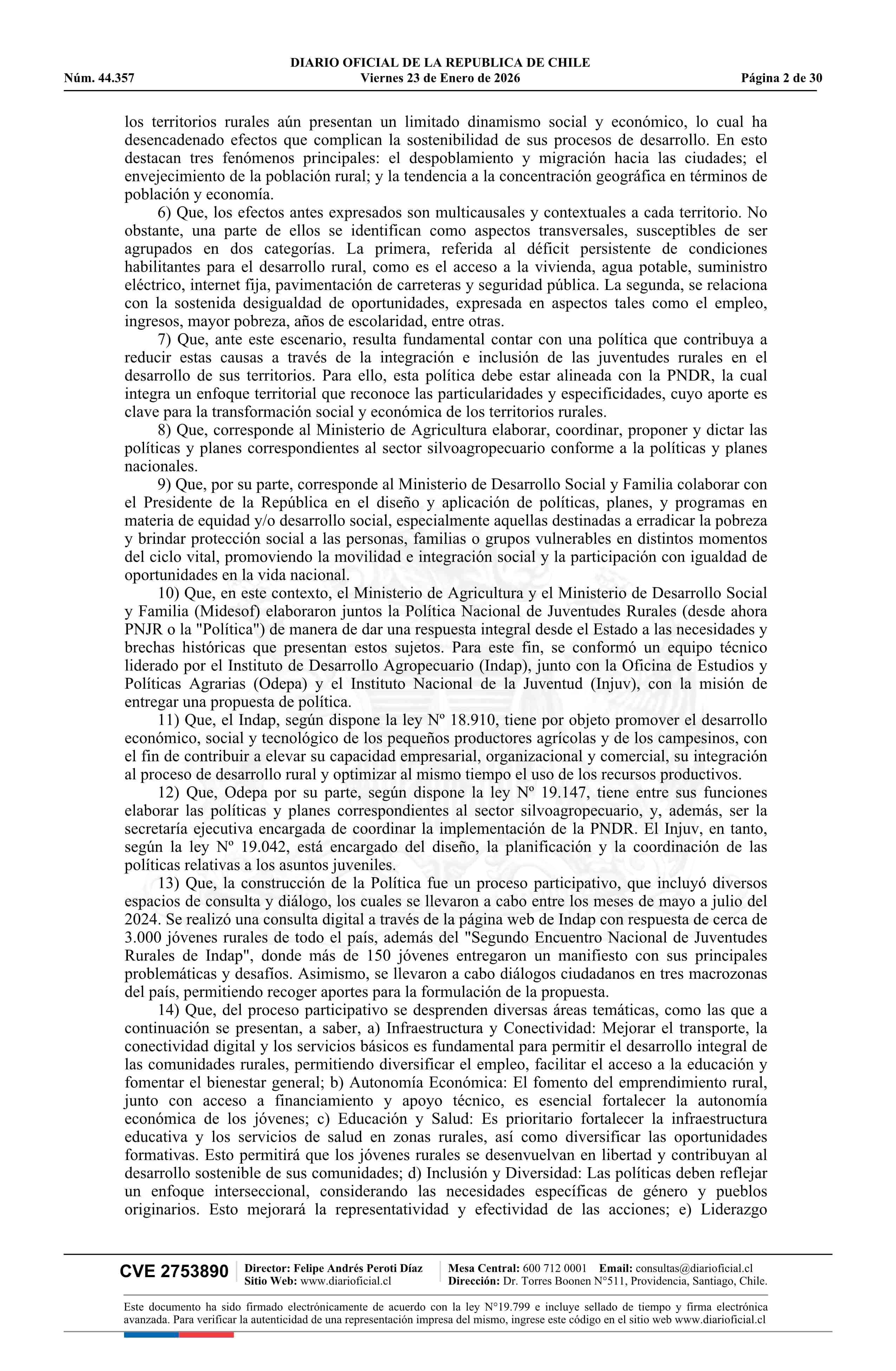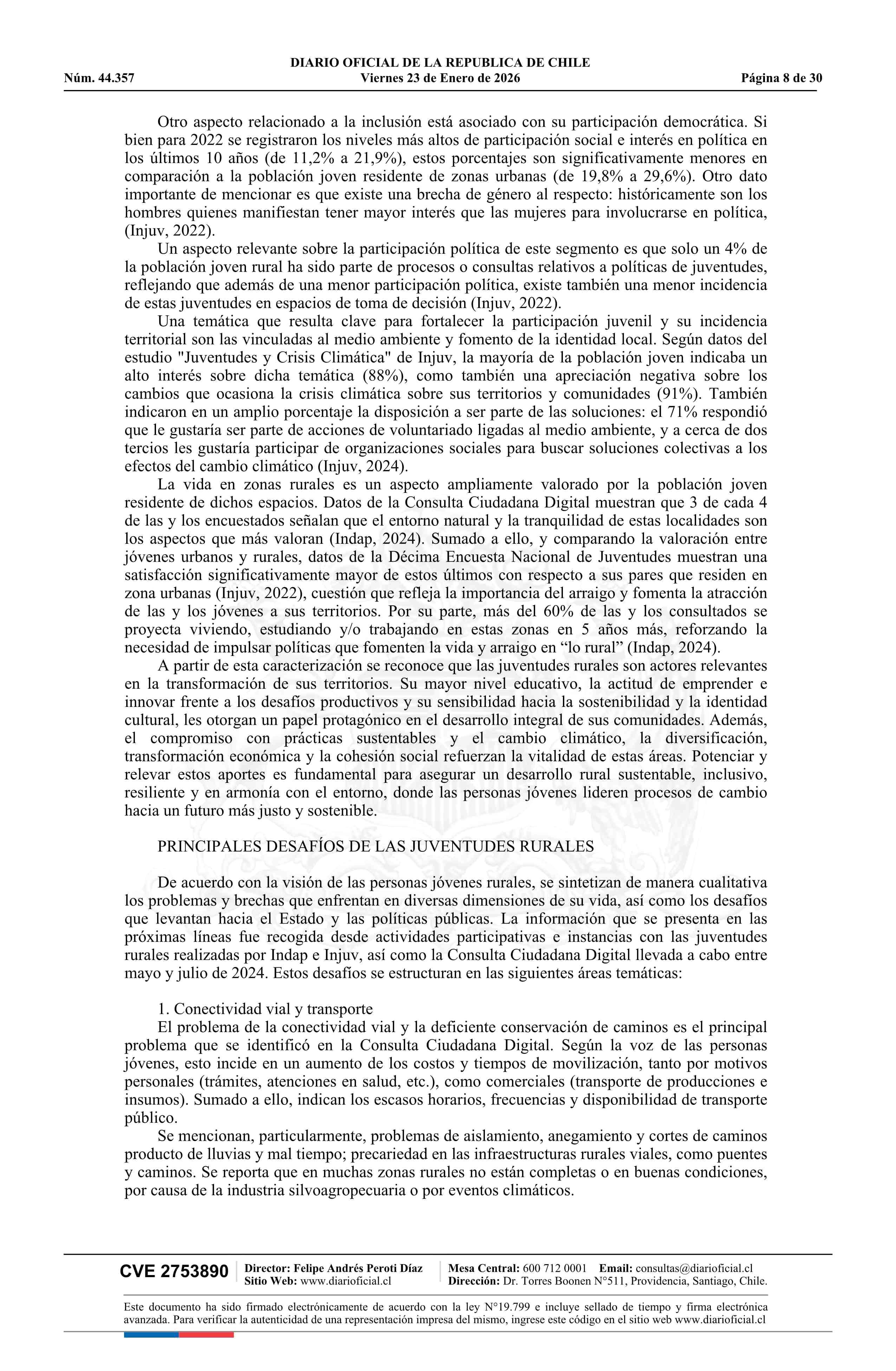 Título: Decreto número 18, de 2025.- Aprueba Política Nacional de Juventudes Rurales