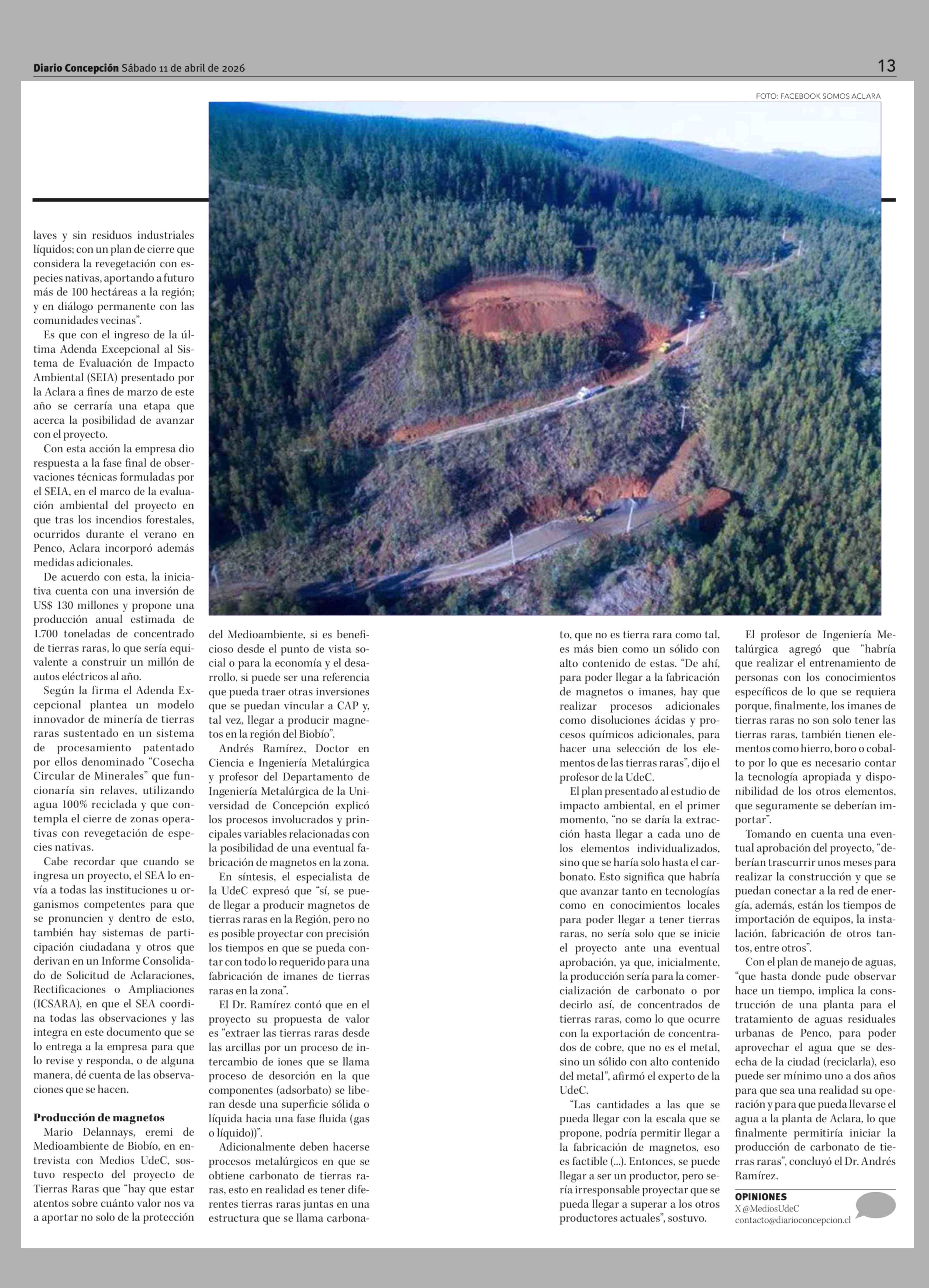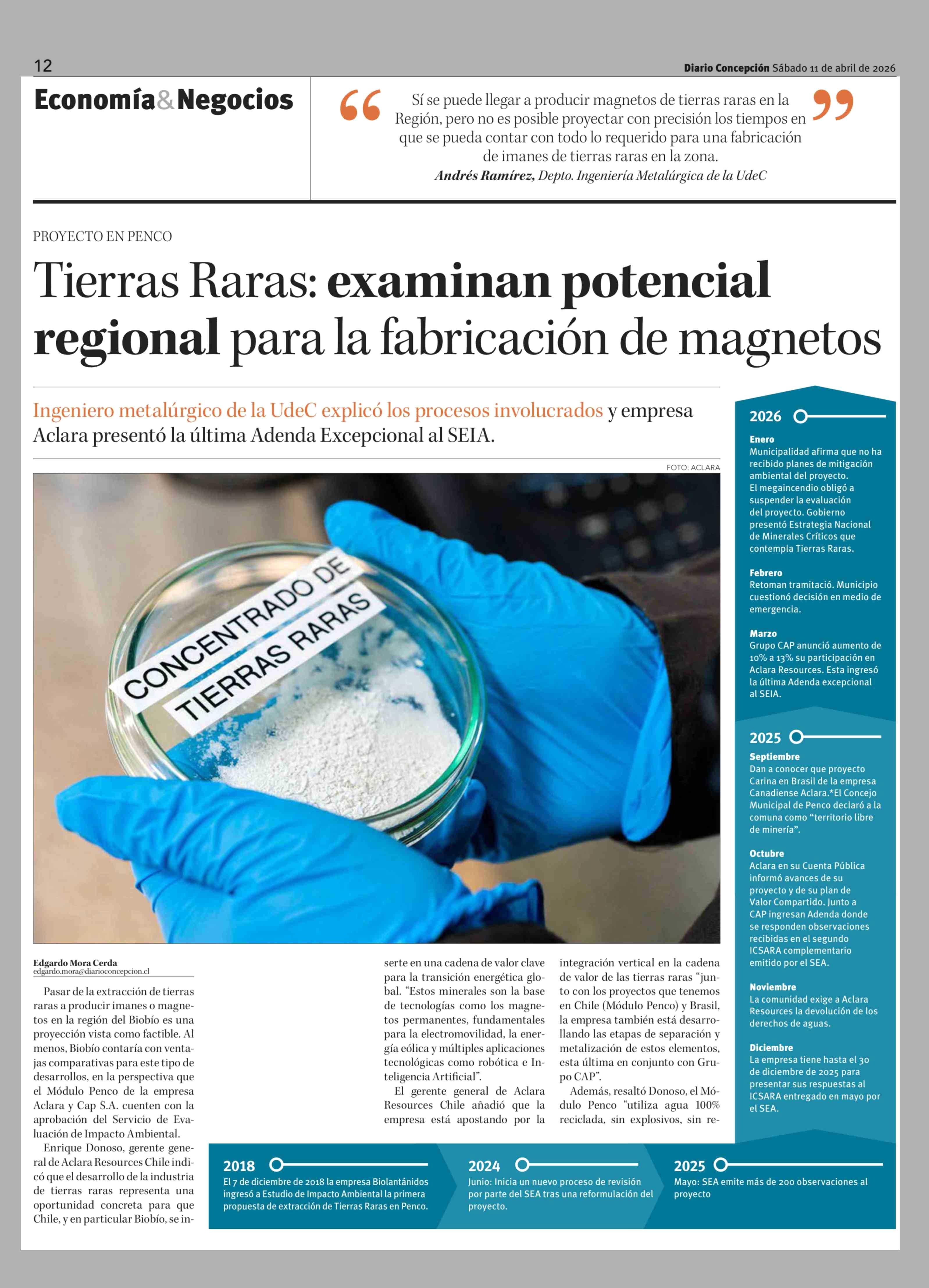 Tierras Raras: examinan potencial regional para la fabricación de magnetos 11-04-2026 Diario Concepción |