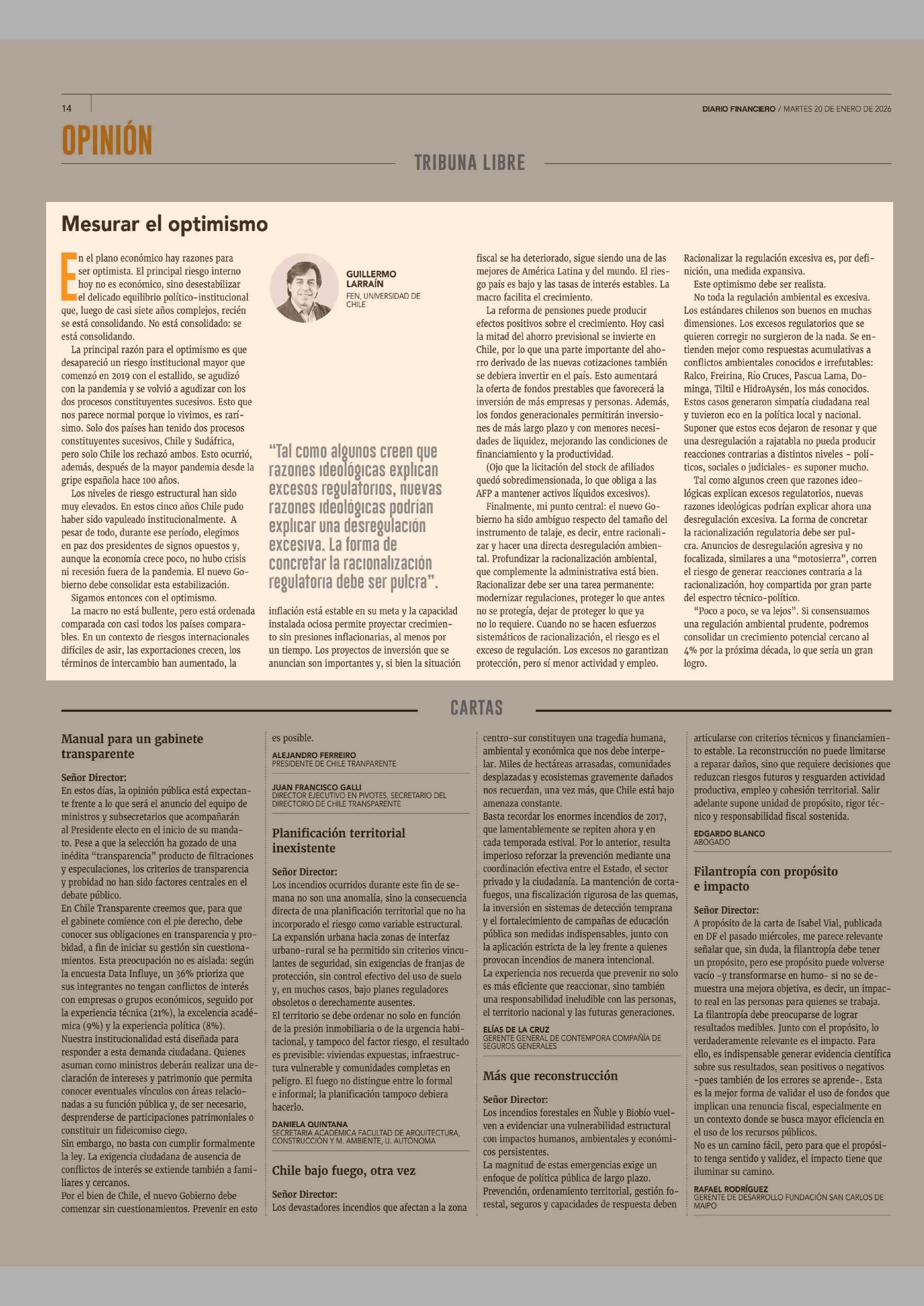 Columnas de Opinión: Mesurar el optimismo 20-01-2026 Diario Financiero |