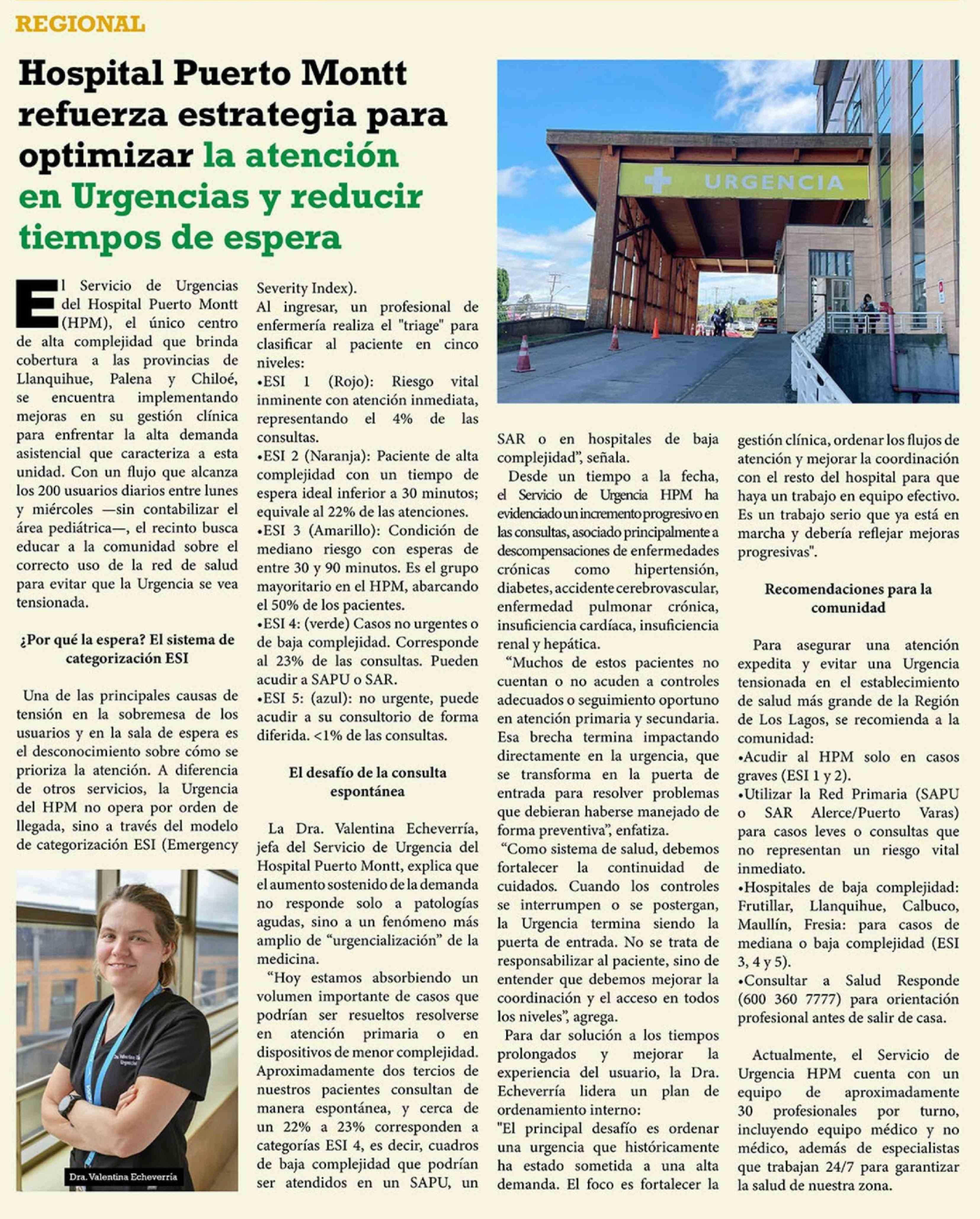 Hospital Puerto Montt refuerza estrategia para optimizar la atención en Urgencias y reducir tiempos de espera 20-02-2026 El Heraldo Austral |