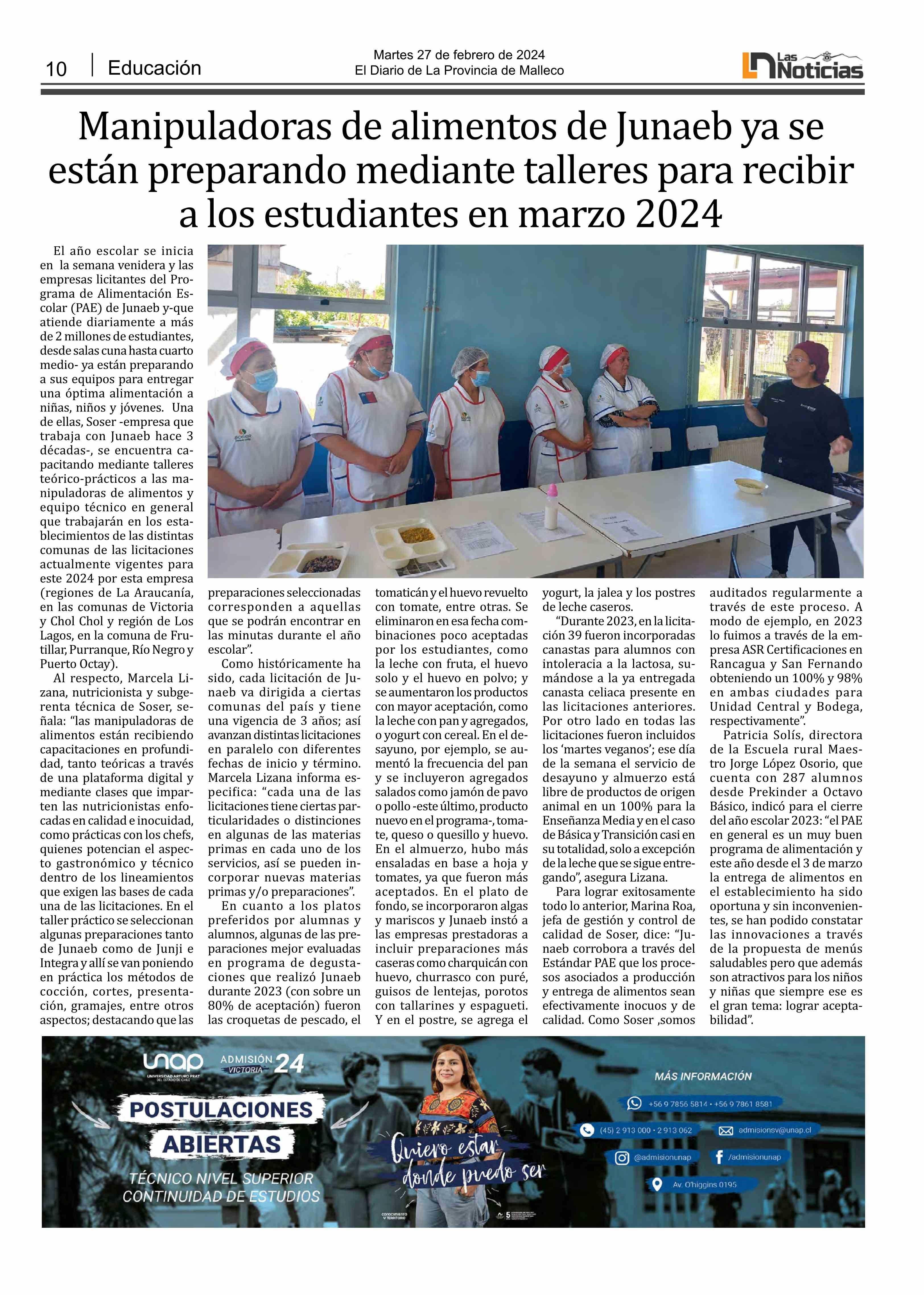 Manipuladoras de alimentos de Junaeb ya se están preparando mediante talleres para recibir a los estudiantes en marzo 2024 27-02-2024 Las Noticias |