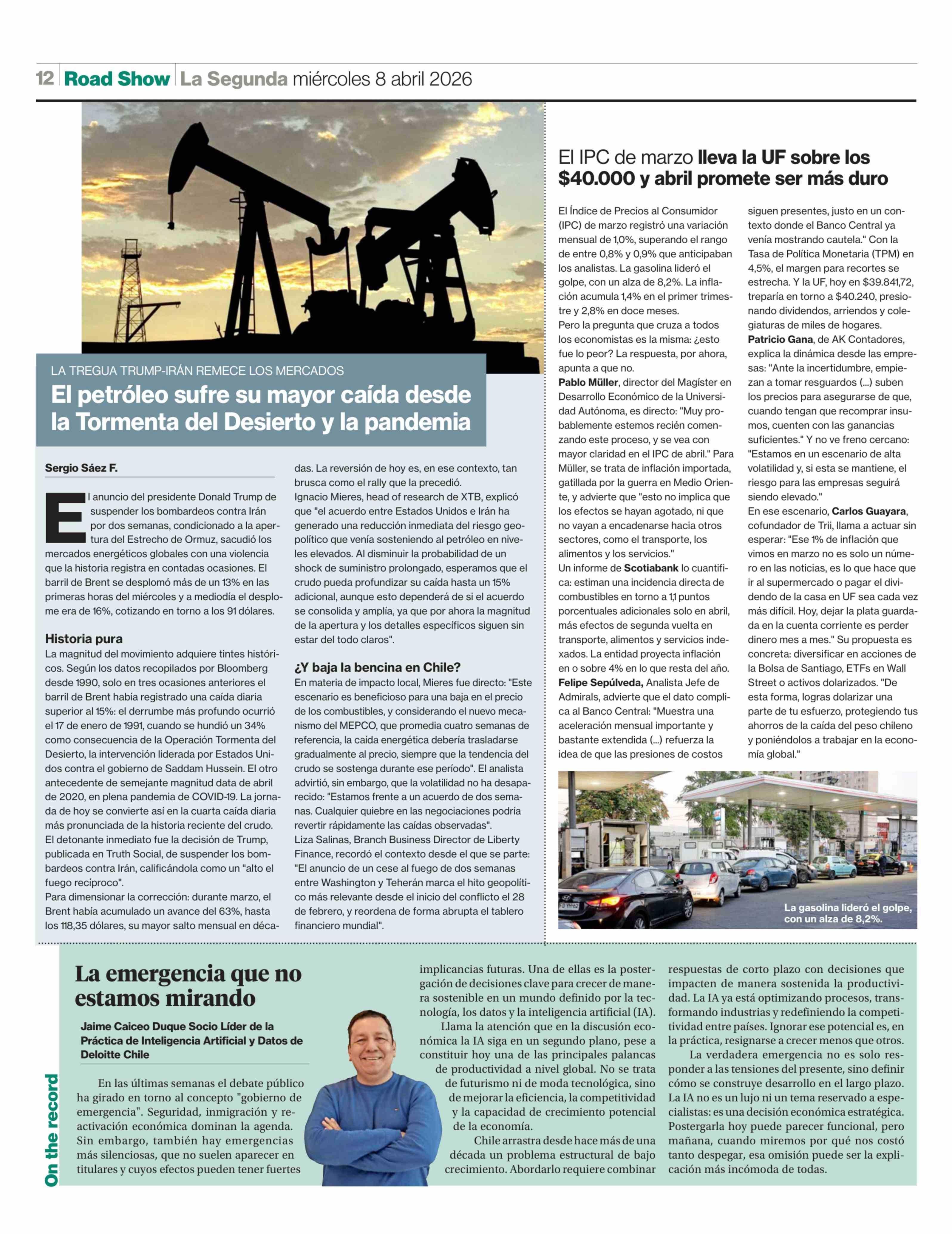 El IPC de marzo lleva la UF sobre los $40.000 y abril promete ser más duro 08-04-2026 La Segunda |