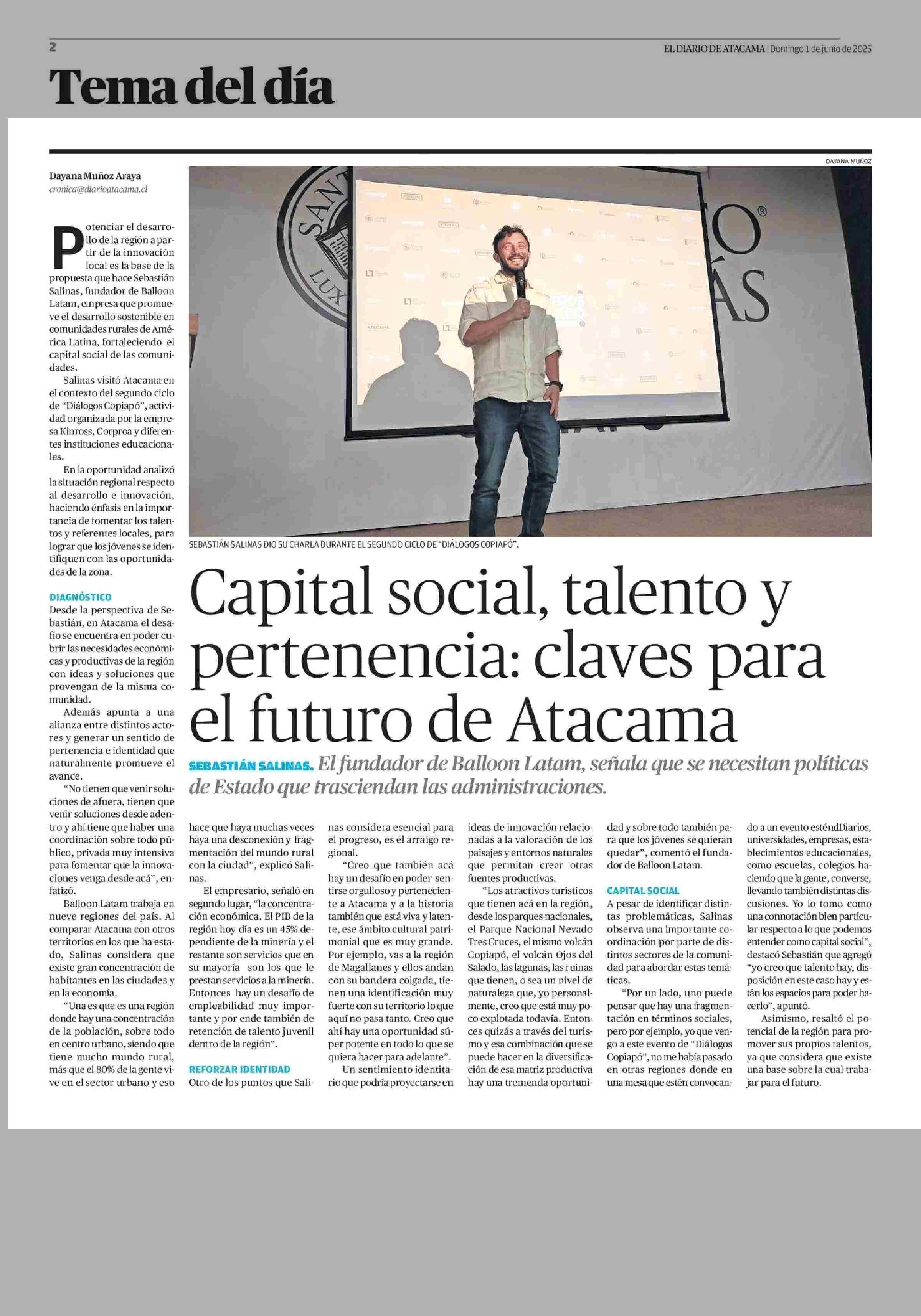 Capital social, talento y el futuro de Atacama 01-06-2025 El Diario de Atacama |