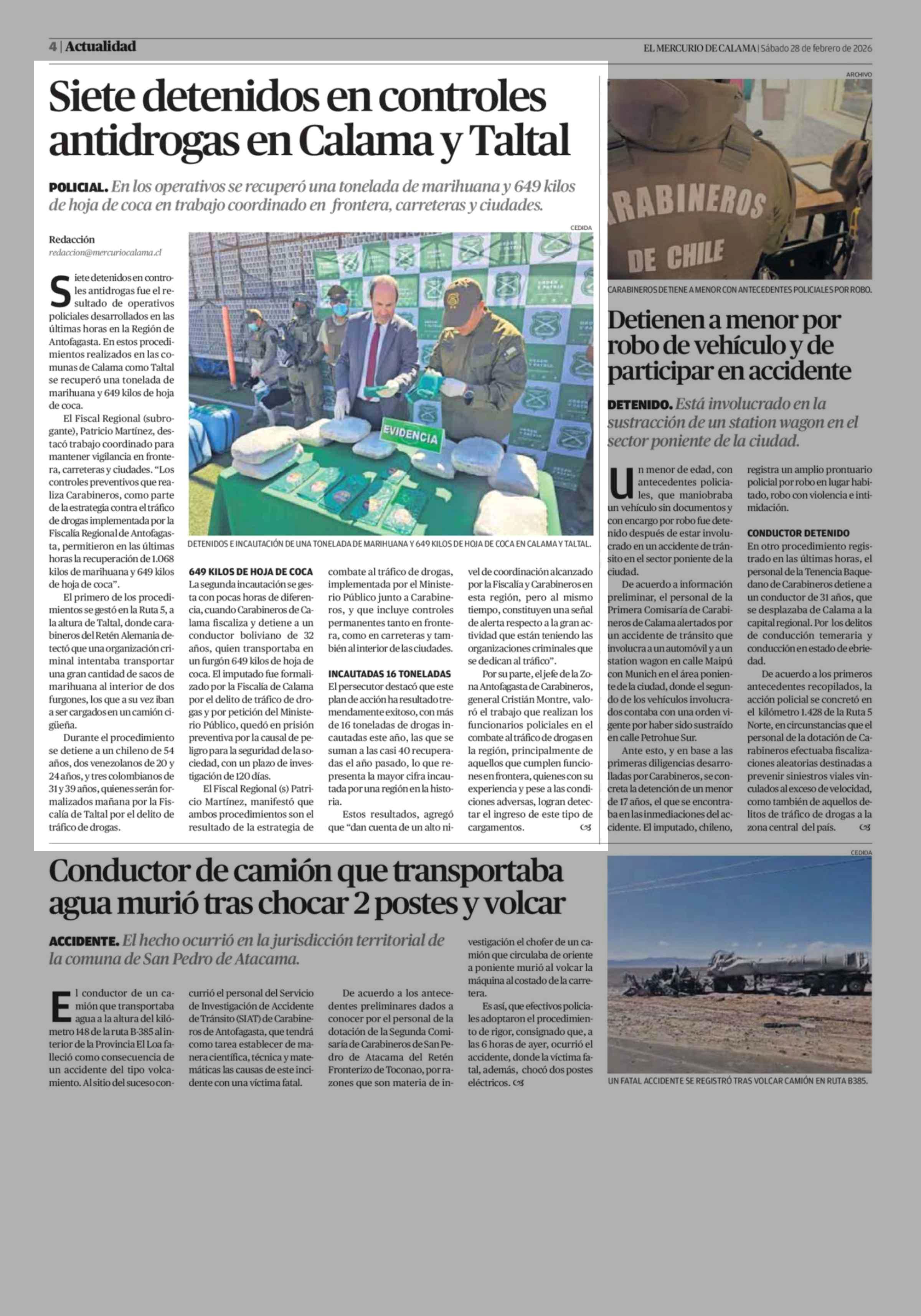 Fecha: 28-02-2026 Sector: Noticia general Región: Región de Antofagasta