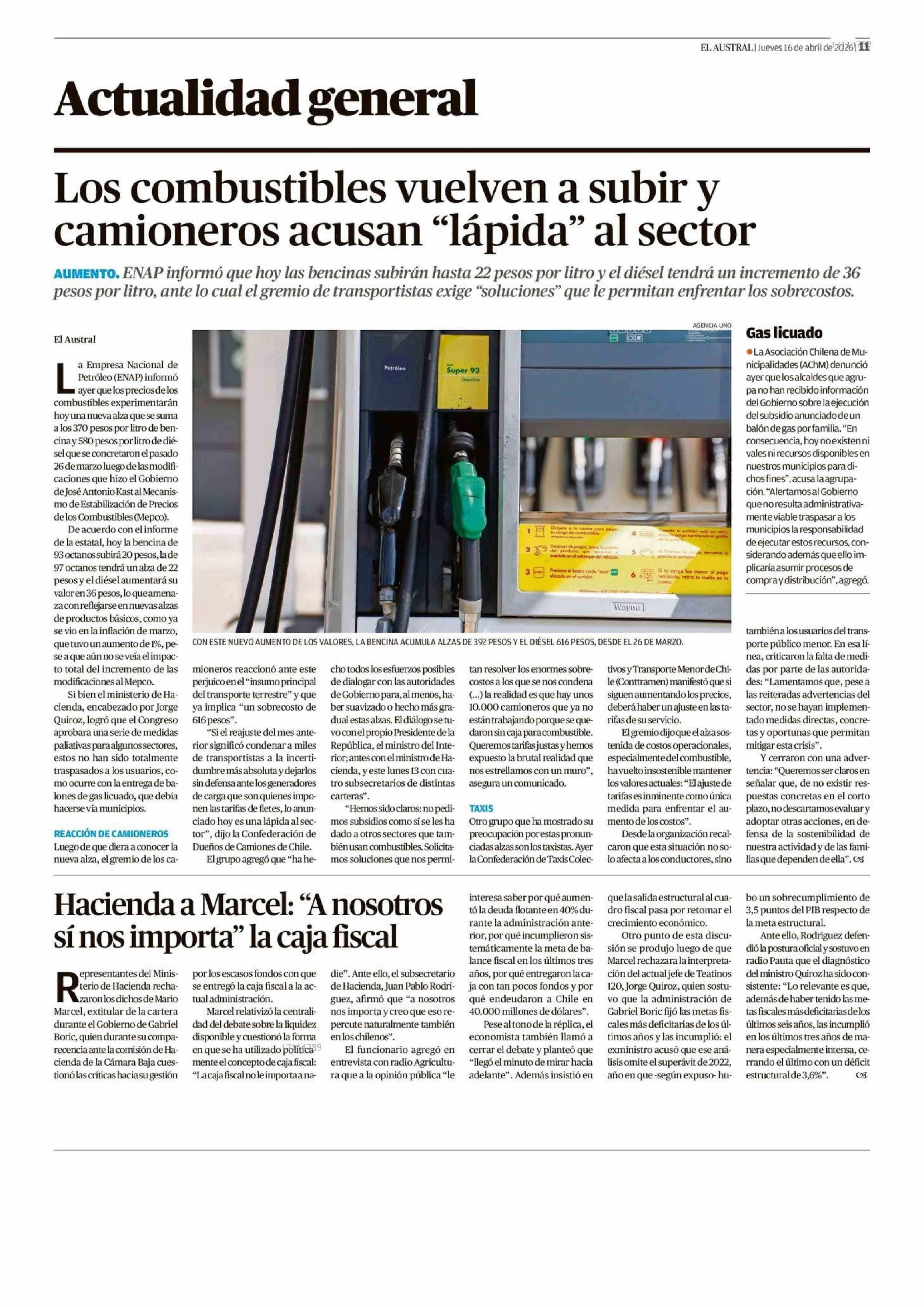Fuente: El Austral de la Araucanía (El Austral de la Araucanía) Página(s): 11