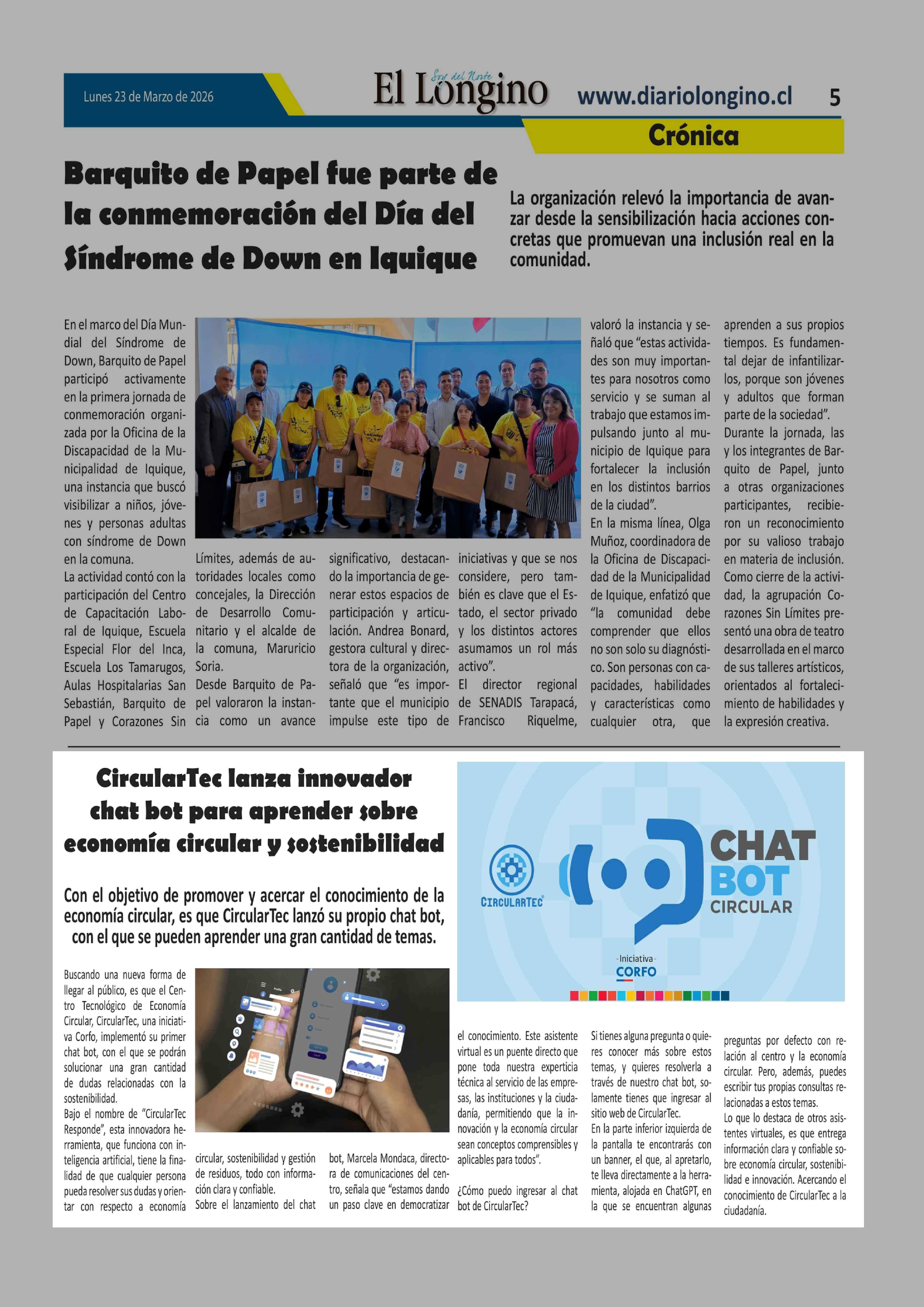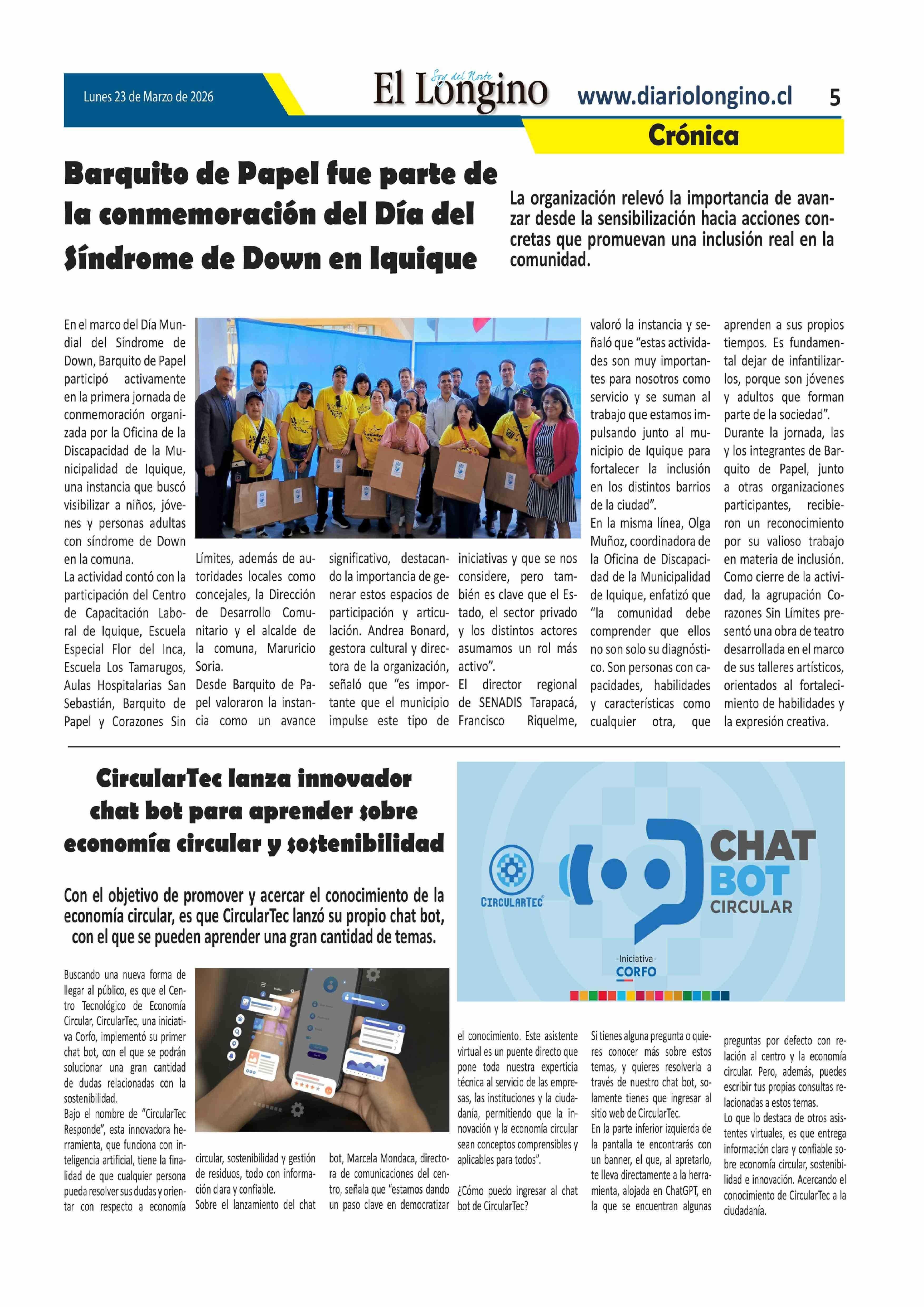 | Fecha: | 23-03-2026 | Sector: | Noticia general | Región: | Región de Tarapacá |