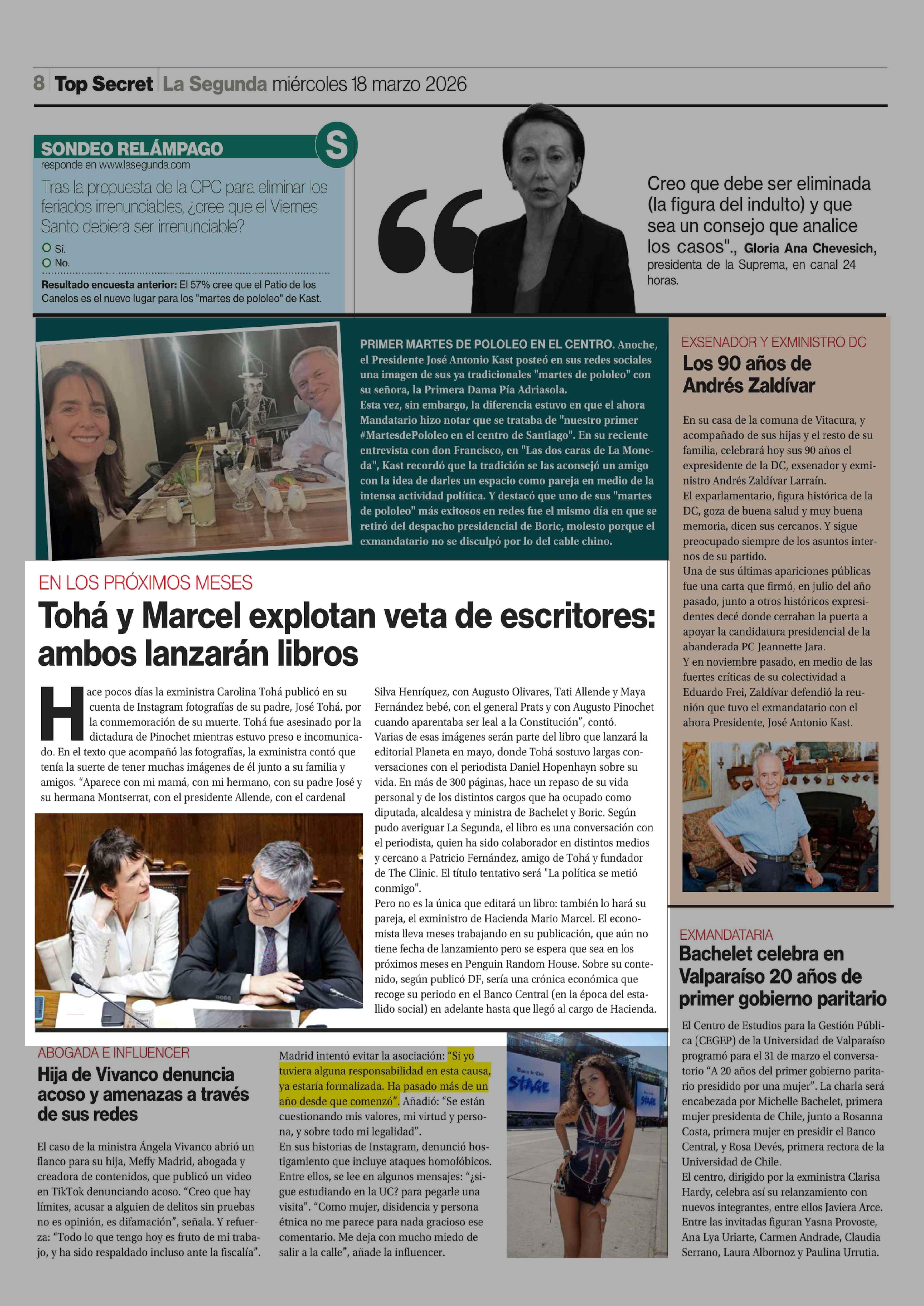 Tohá y Marcel explotan veta de escritores: ambos lanzarán libros 18-03-2026 La Segunda |