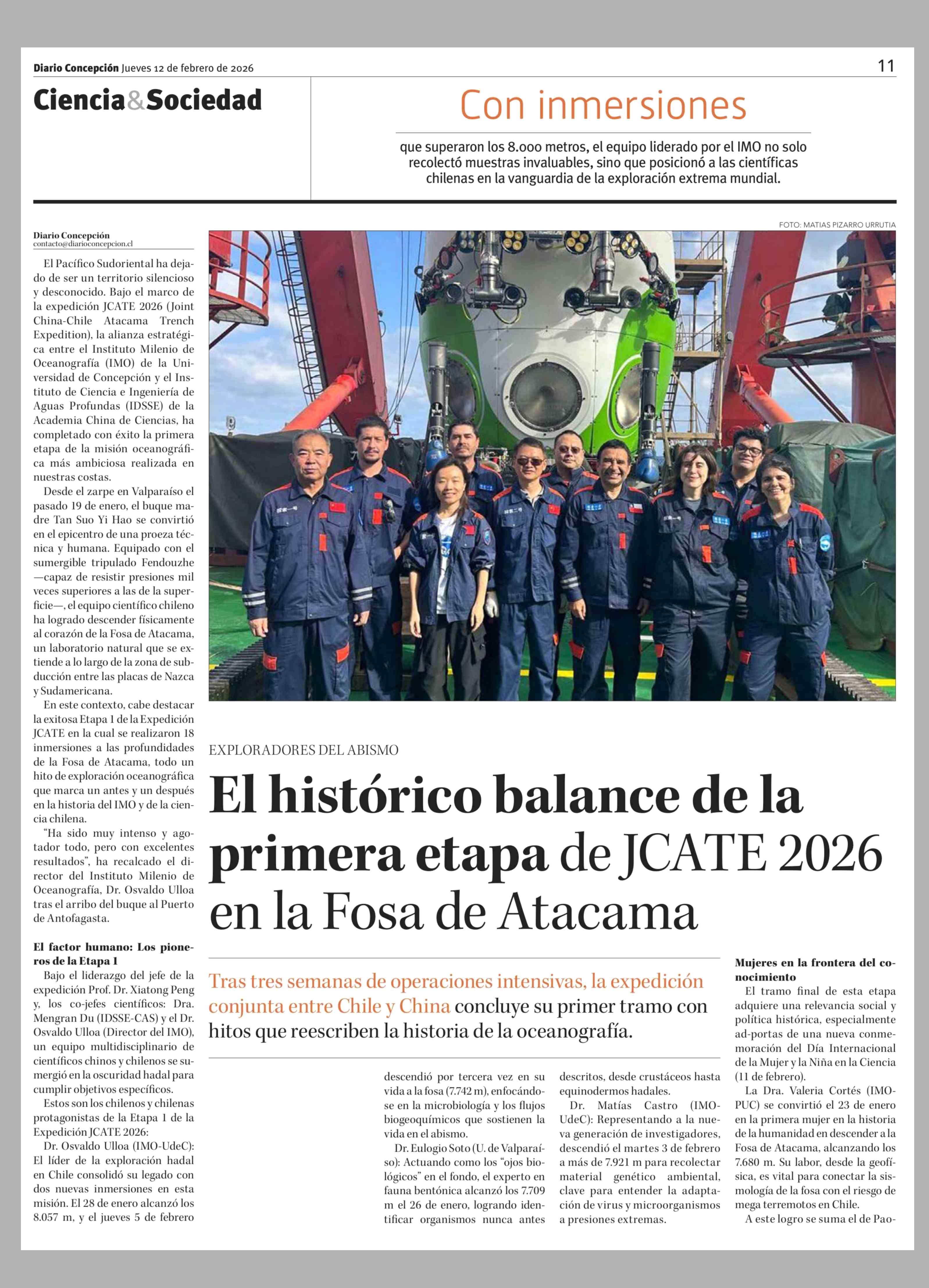 Título: El histórico balance de la primera etapa de JCATE 2026 en la Fosa de Atacama