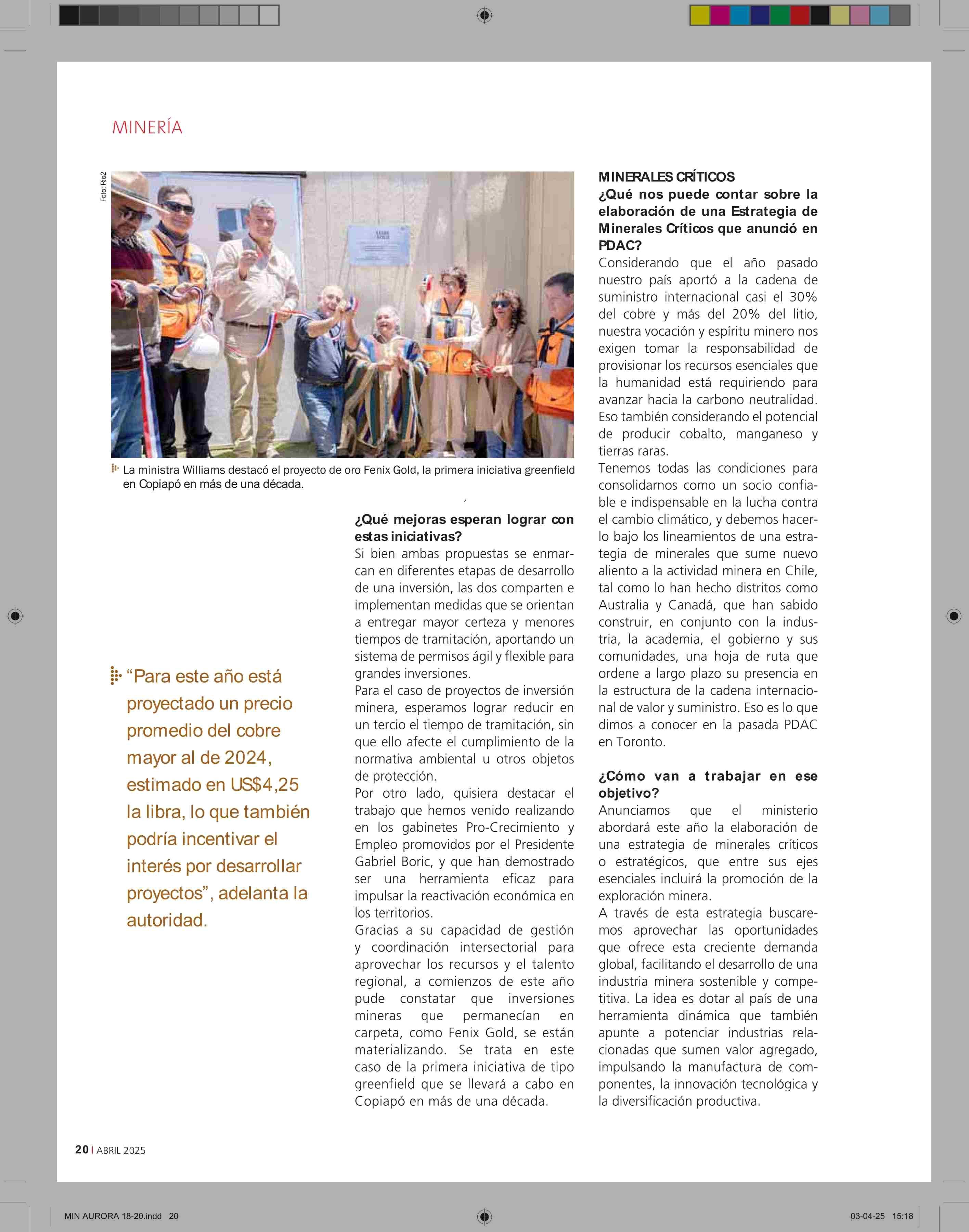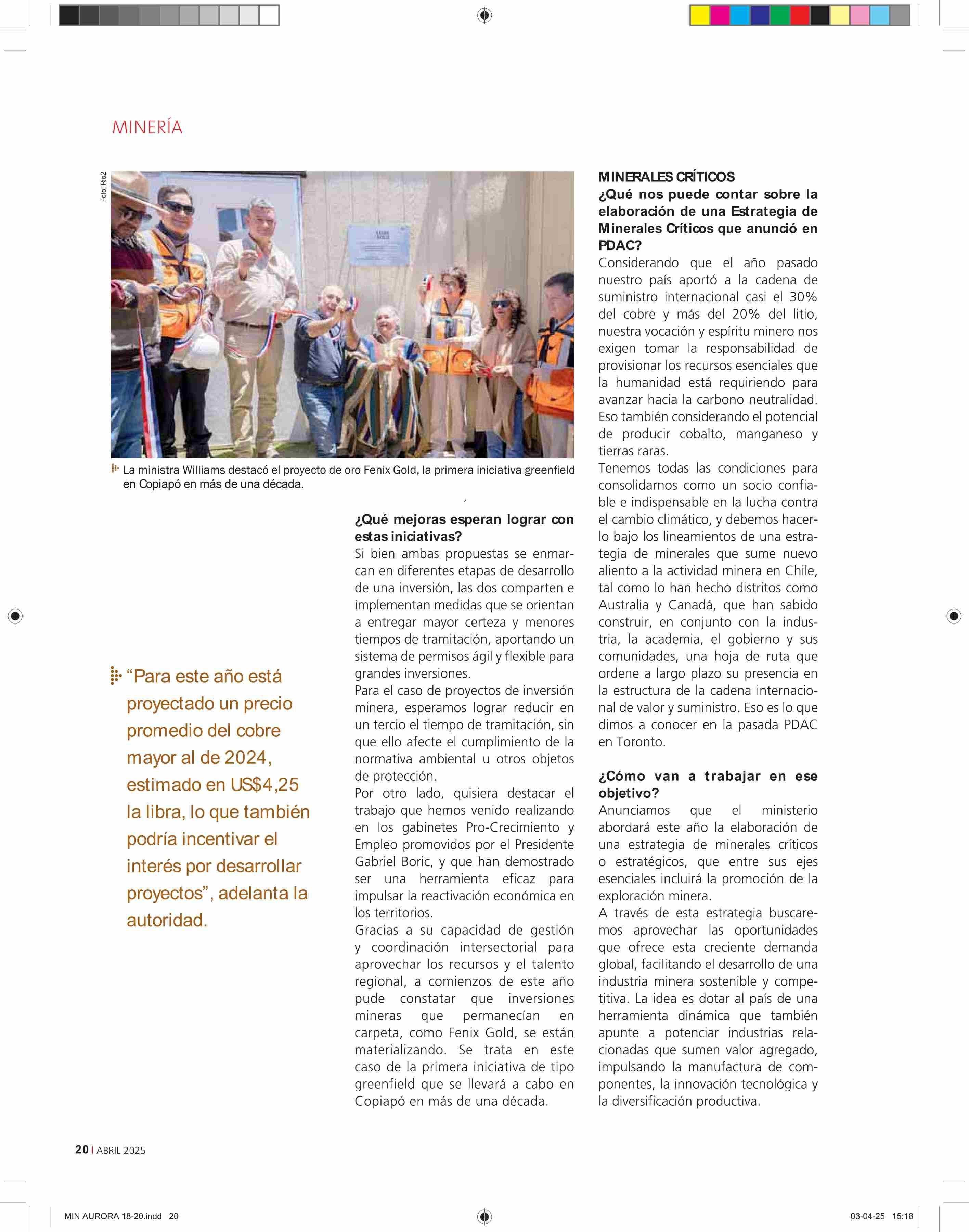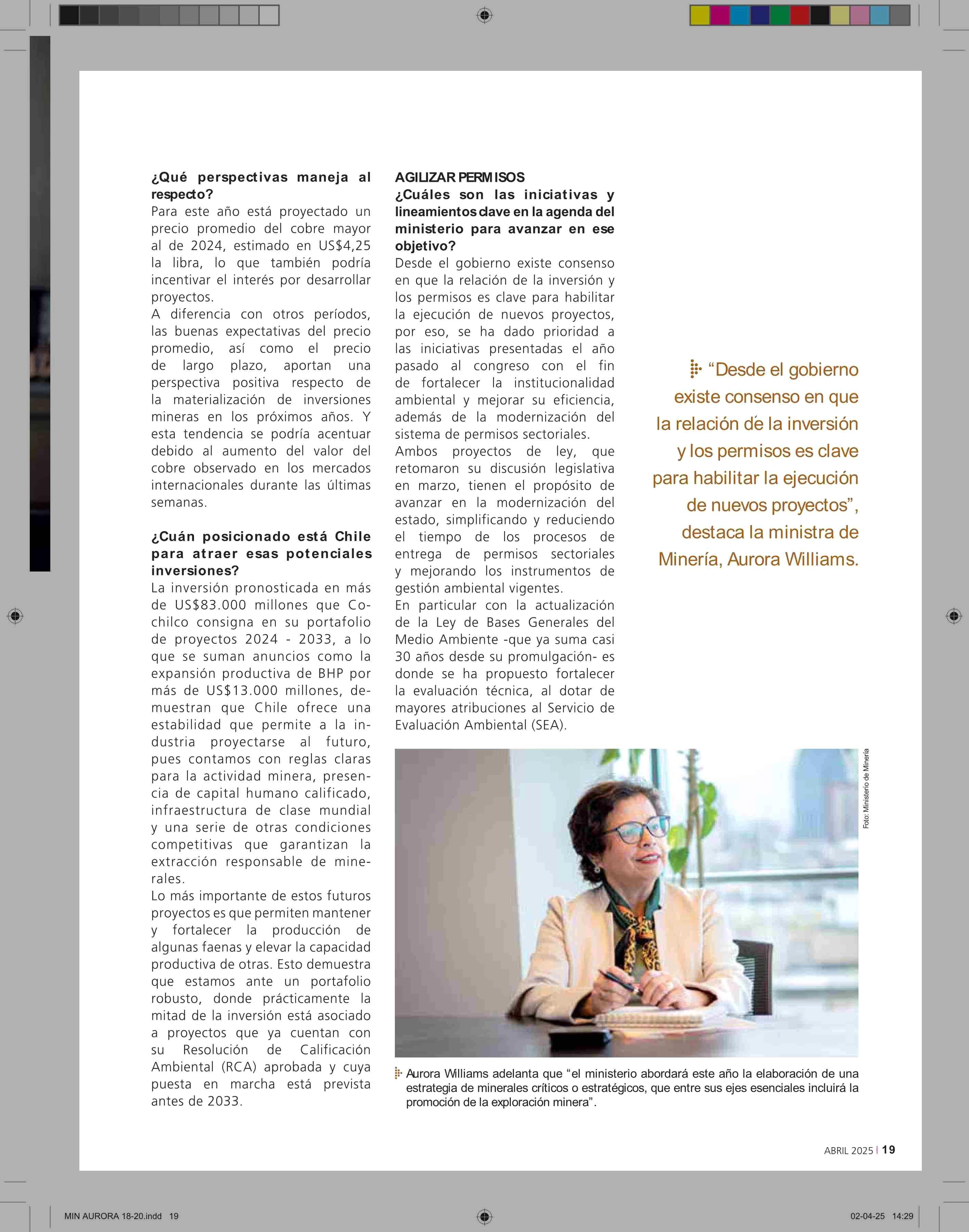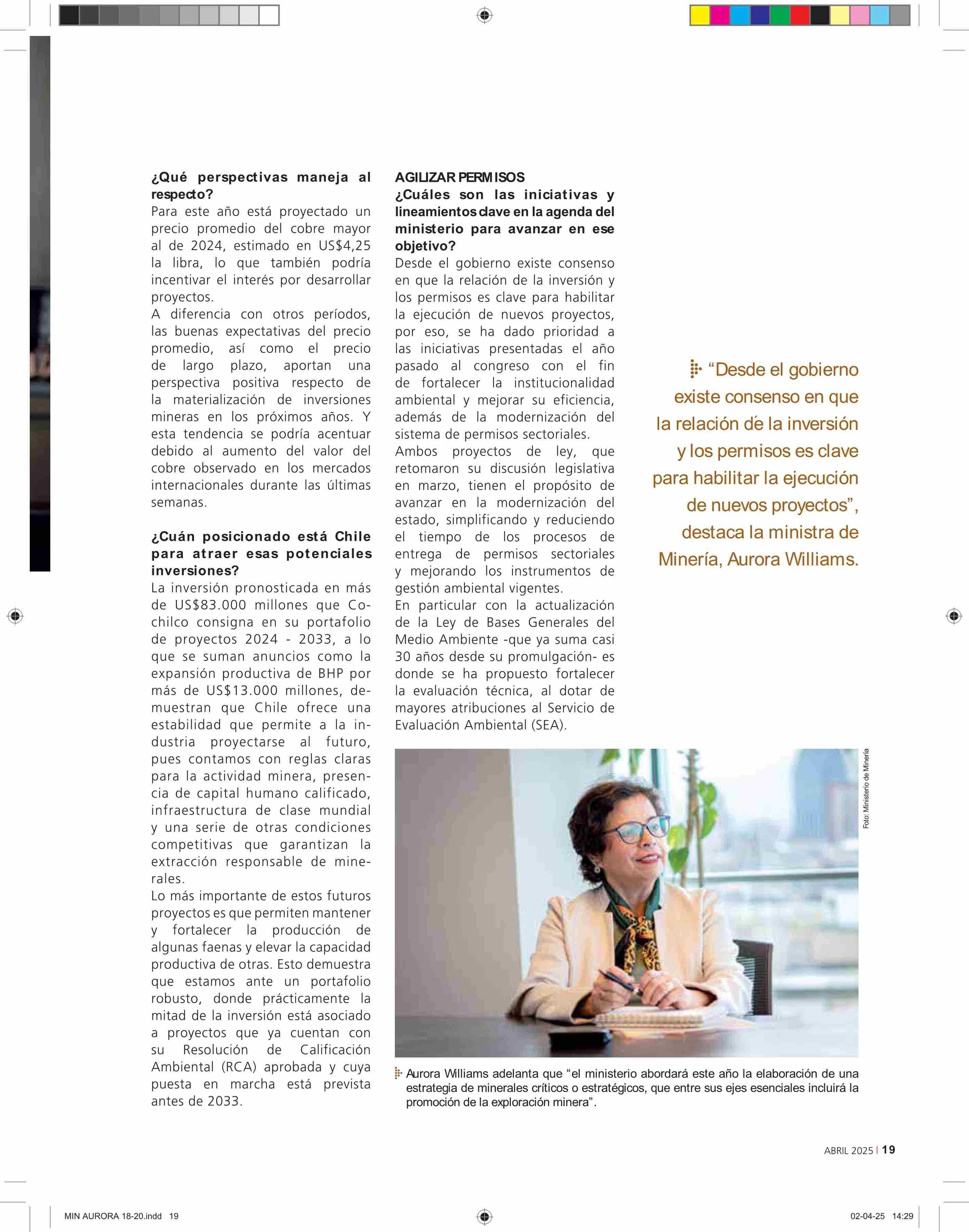 “CHILE OFRECE UNA QUE PERMITE A LA INDUSTRIA PROYECTARSE” 14-04-2025 Revista Nueva Minería & Energía |