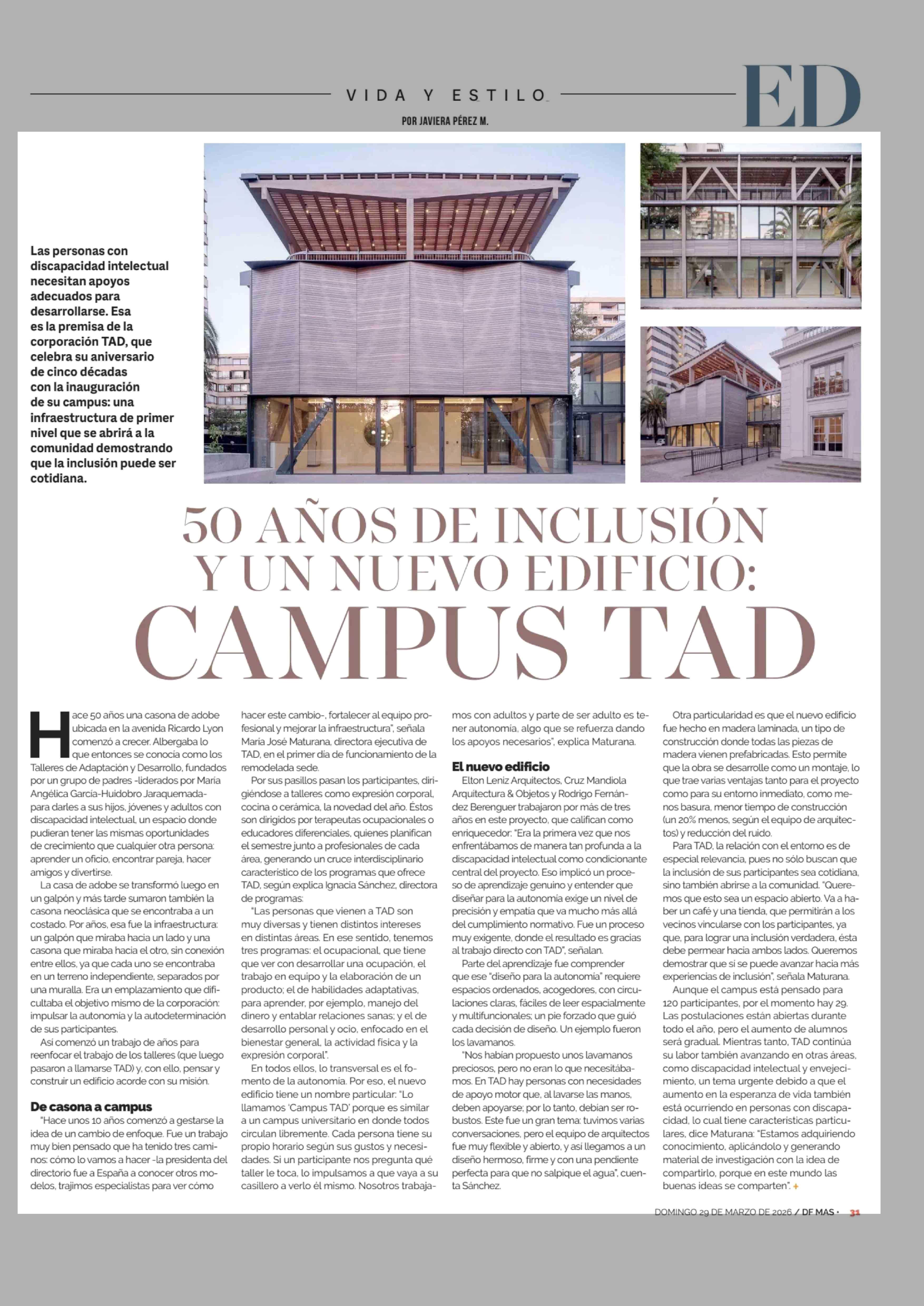 Título: 50 AÑOS DE INCLUSIÓN Y UN NUEVO EDIFICIO: CAMPUS TAD
