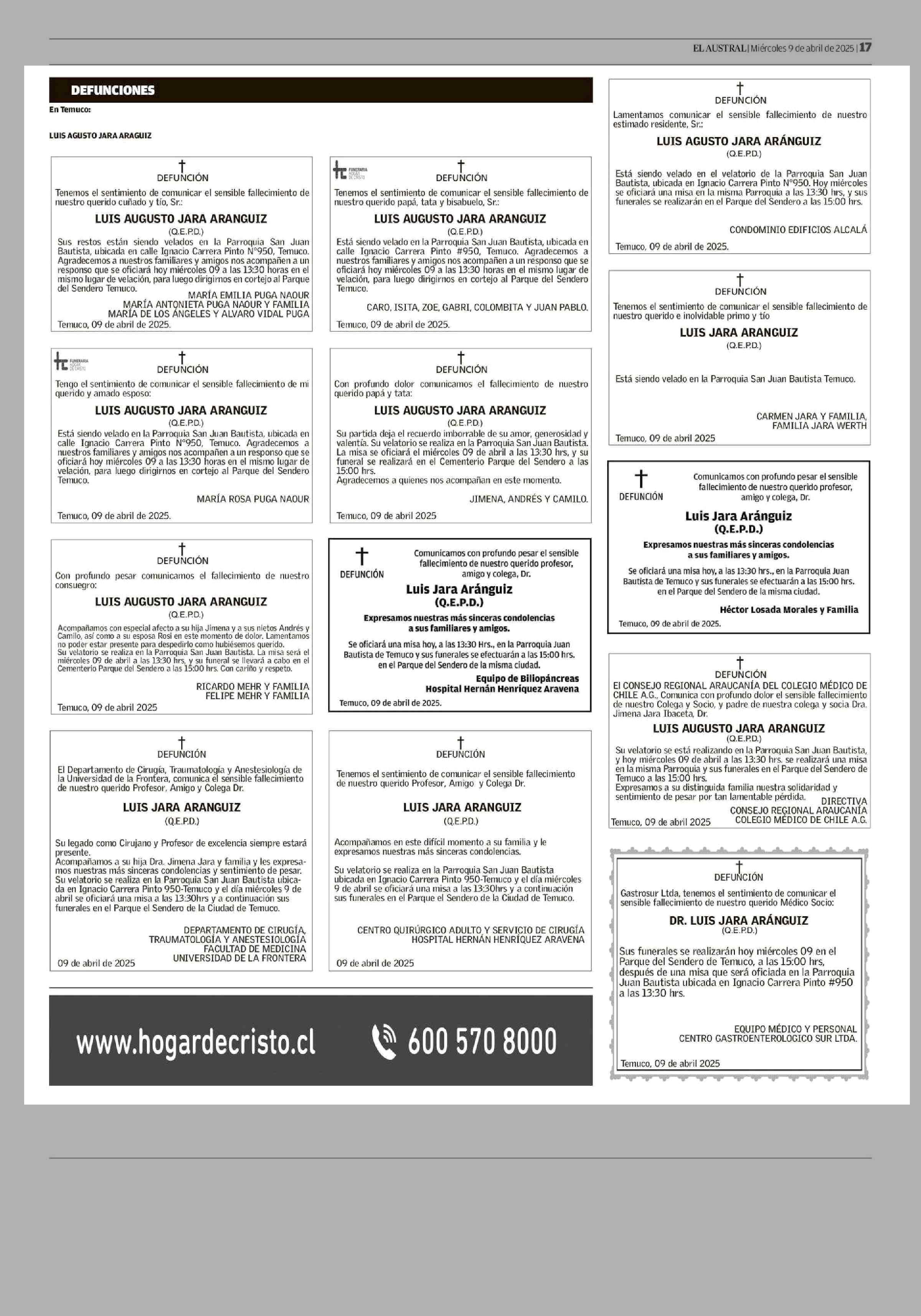 OBITUARIO: 09-04-2025 El Austral de la Araucanía |