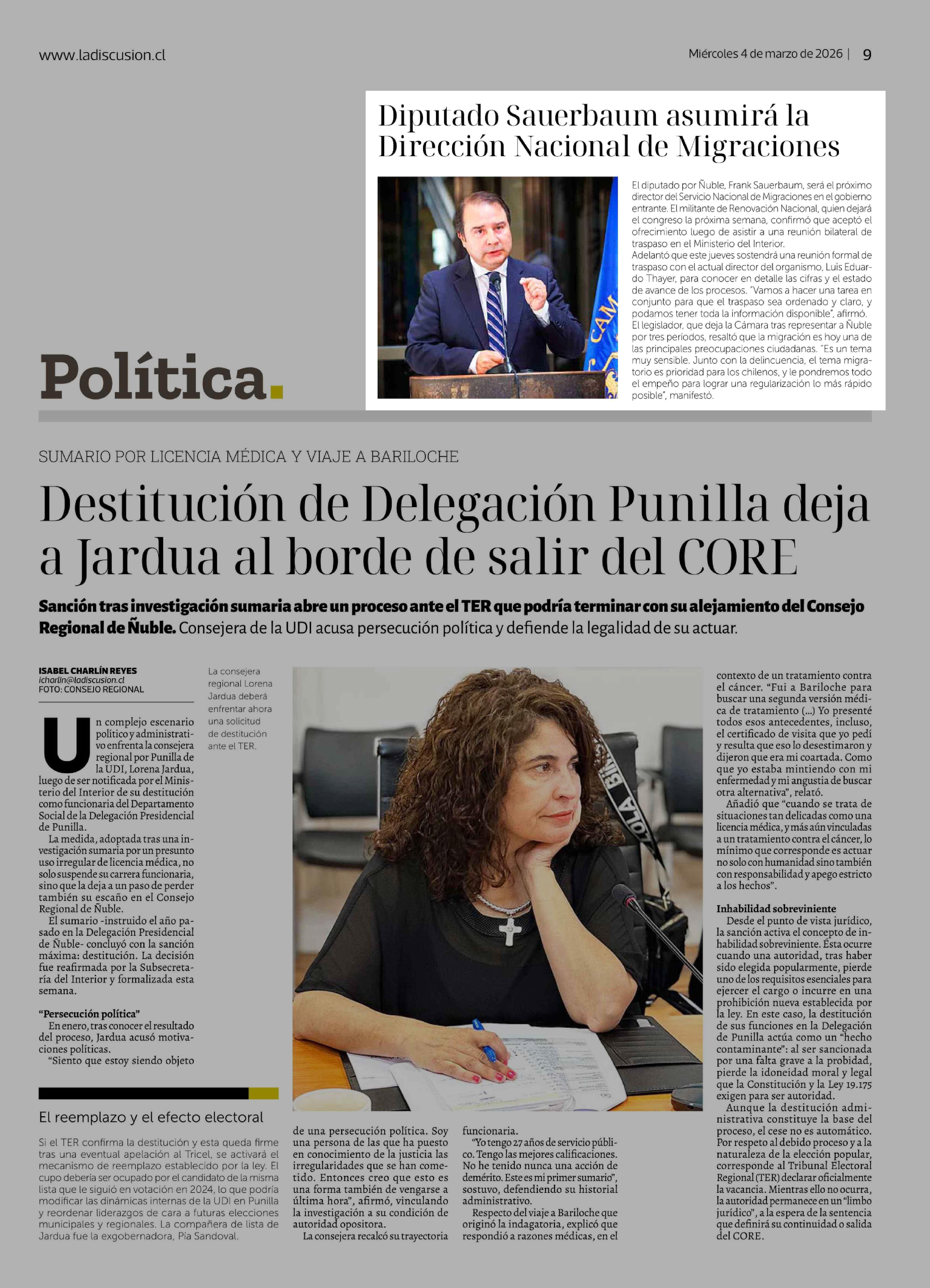 Diputado Sauerbaum asumirá la Dirección Nacional de Migraciones 04-03-2026 La Discusión |