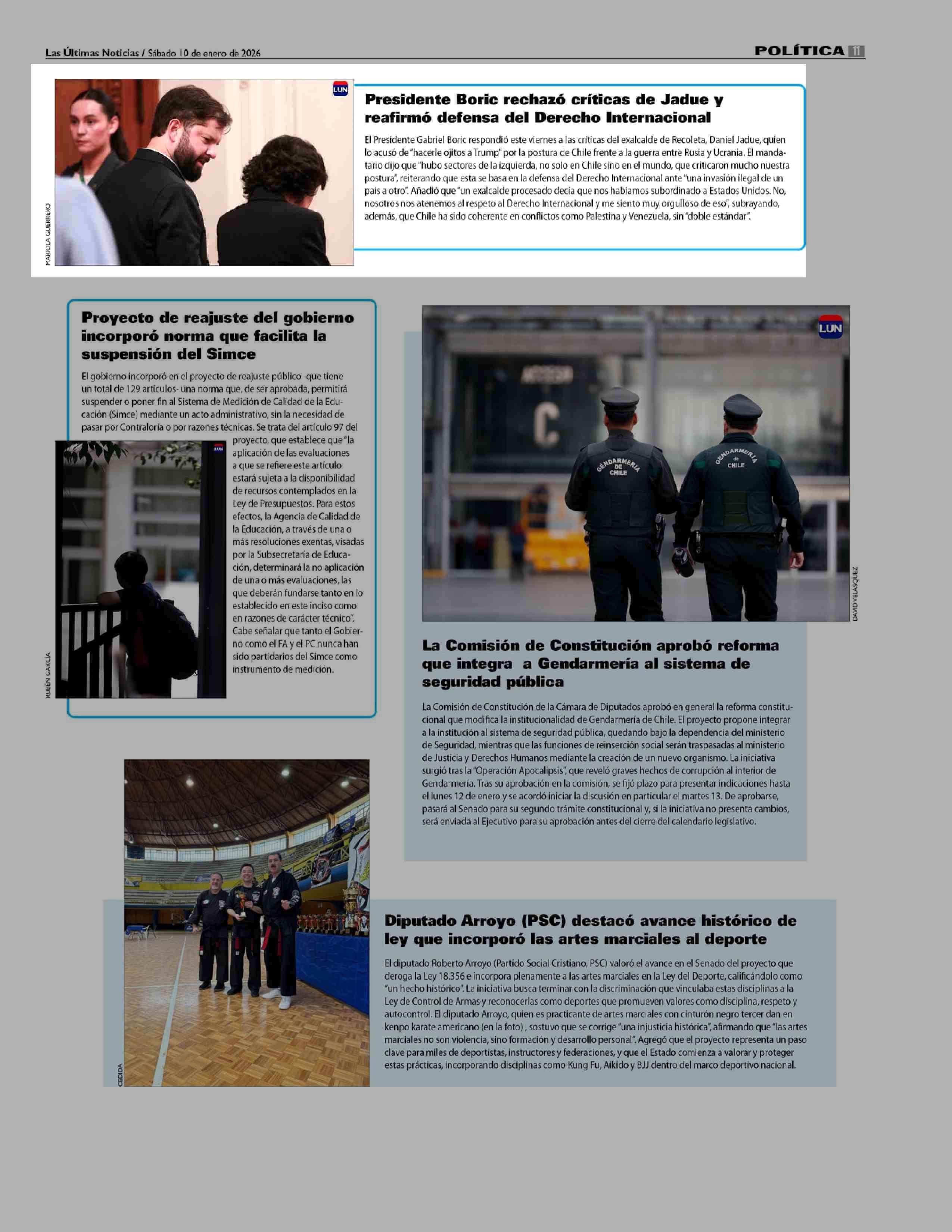 Presidente Boric rechazó críticas de Jadue y reafirmó defensa del Derecho Internacional 10-01-2026 Las Últimas Noticias |