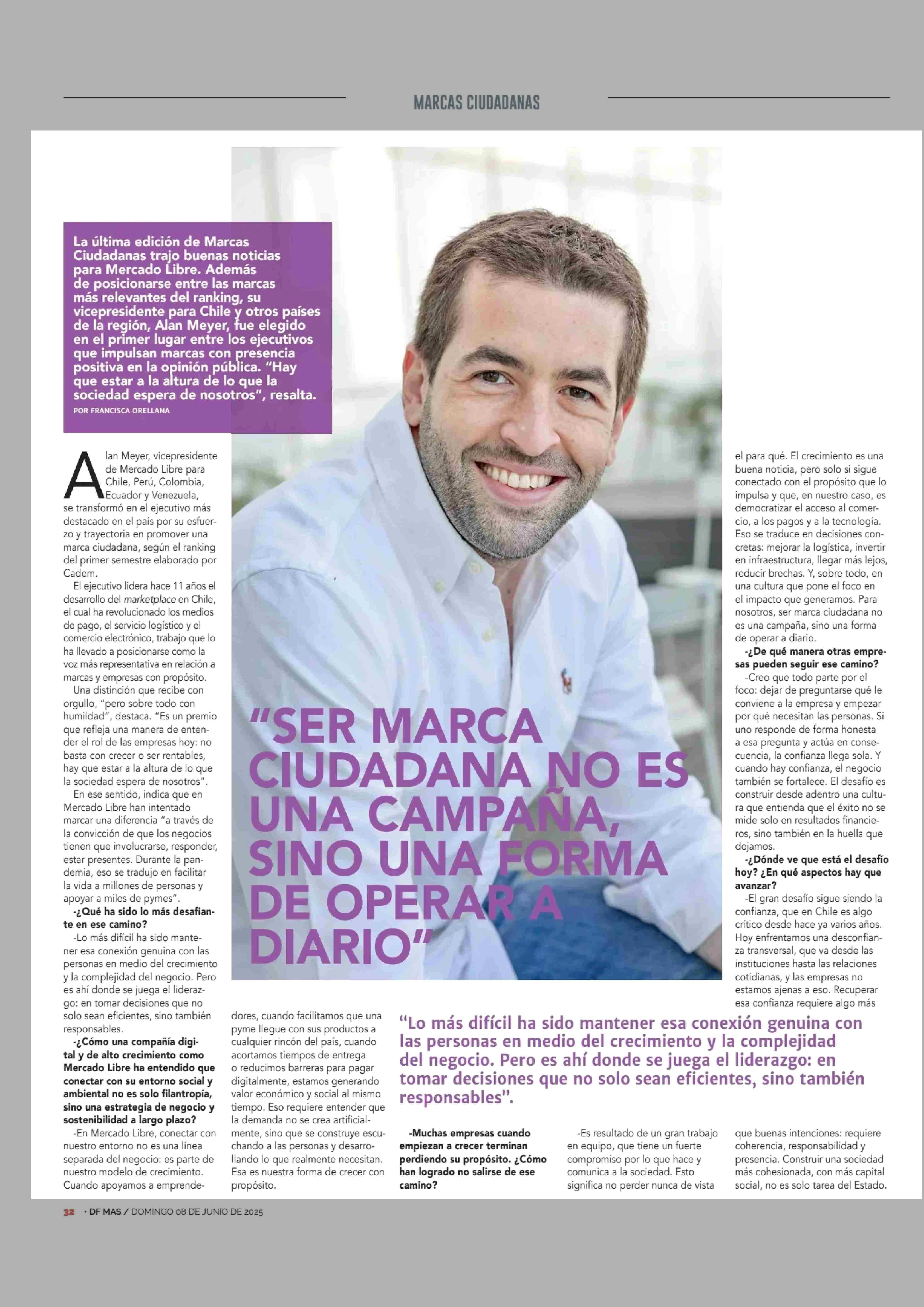 "SER MARCA CIUDADANA NO ES CAMPAÑA, SINO UNA FORMA DE OPERAR A DIARIO" 08-06-2025 Diario Financiero |