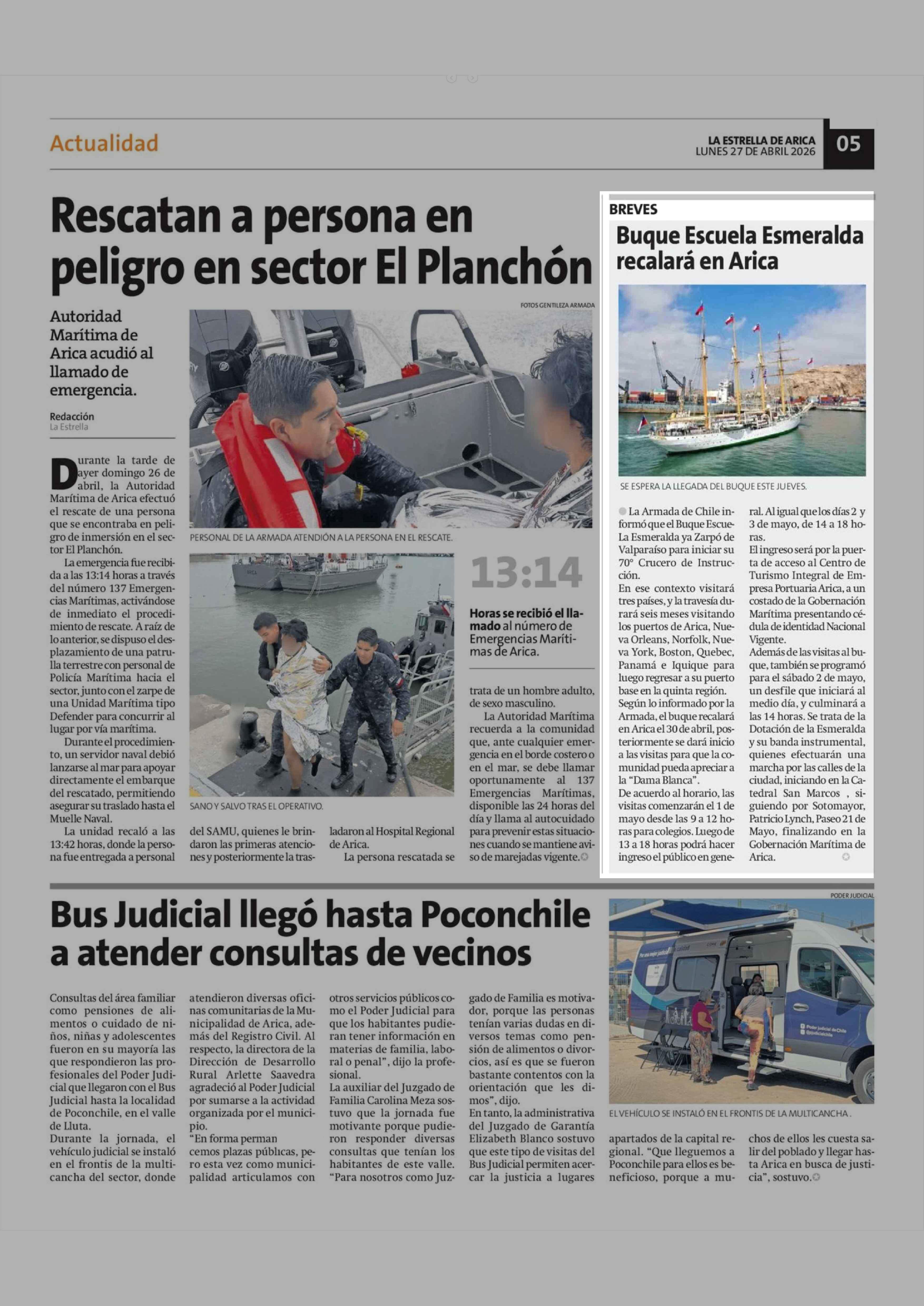 | Fecha: | 27-04-2026 | Sector: | Noticia general | Región: | Región de Arica y Parinacota |