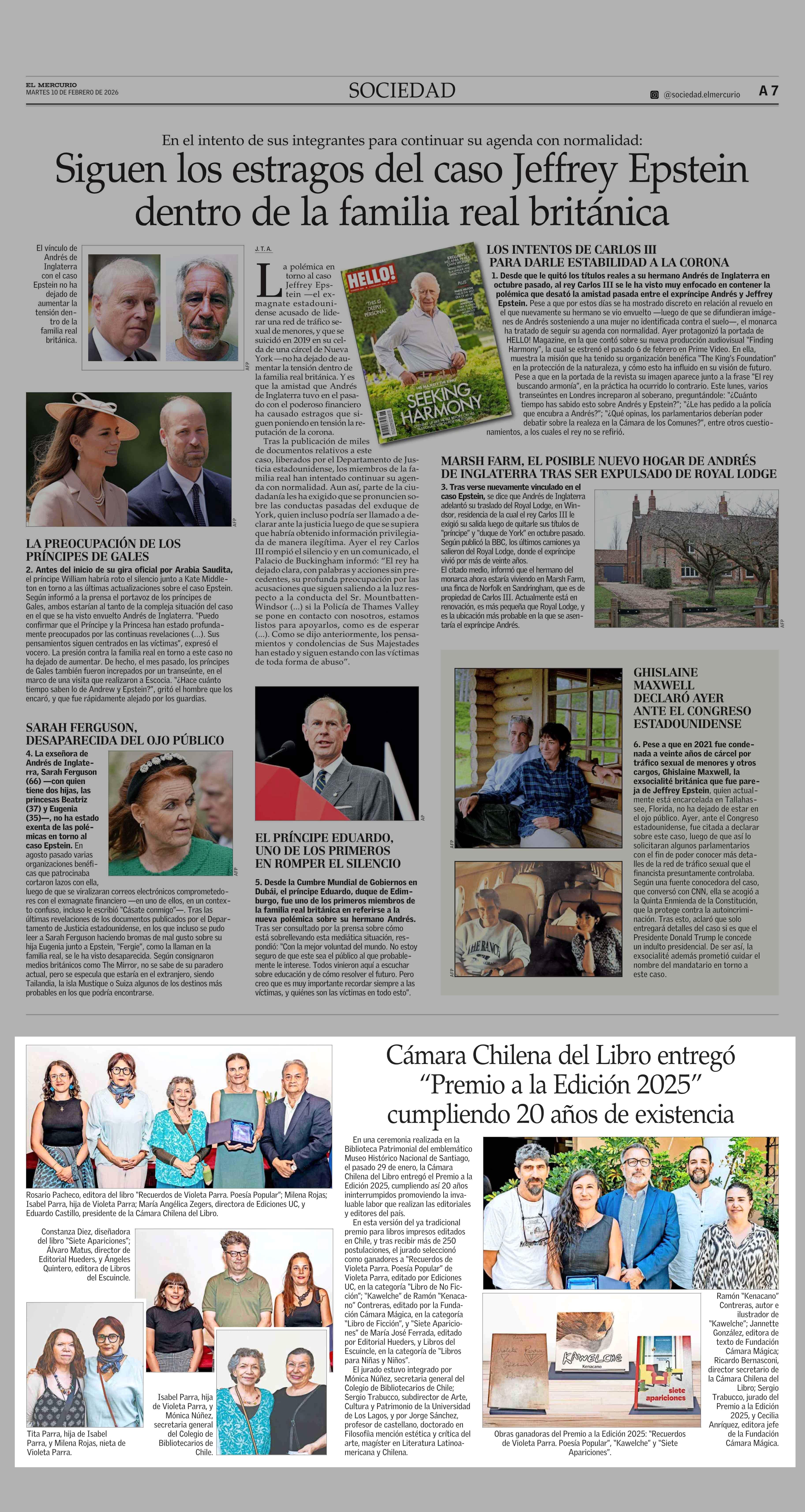 Cámara Chilena del Libro entregó “Premio a la Edición 2025” cumpliendo 20 años de existencia 10-02-2026 El Mercurio |