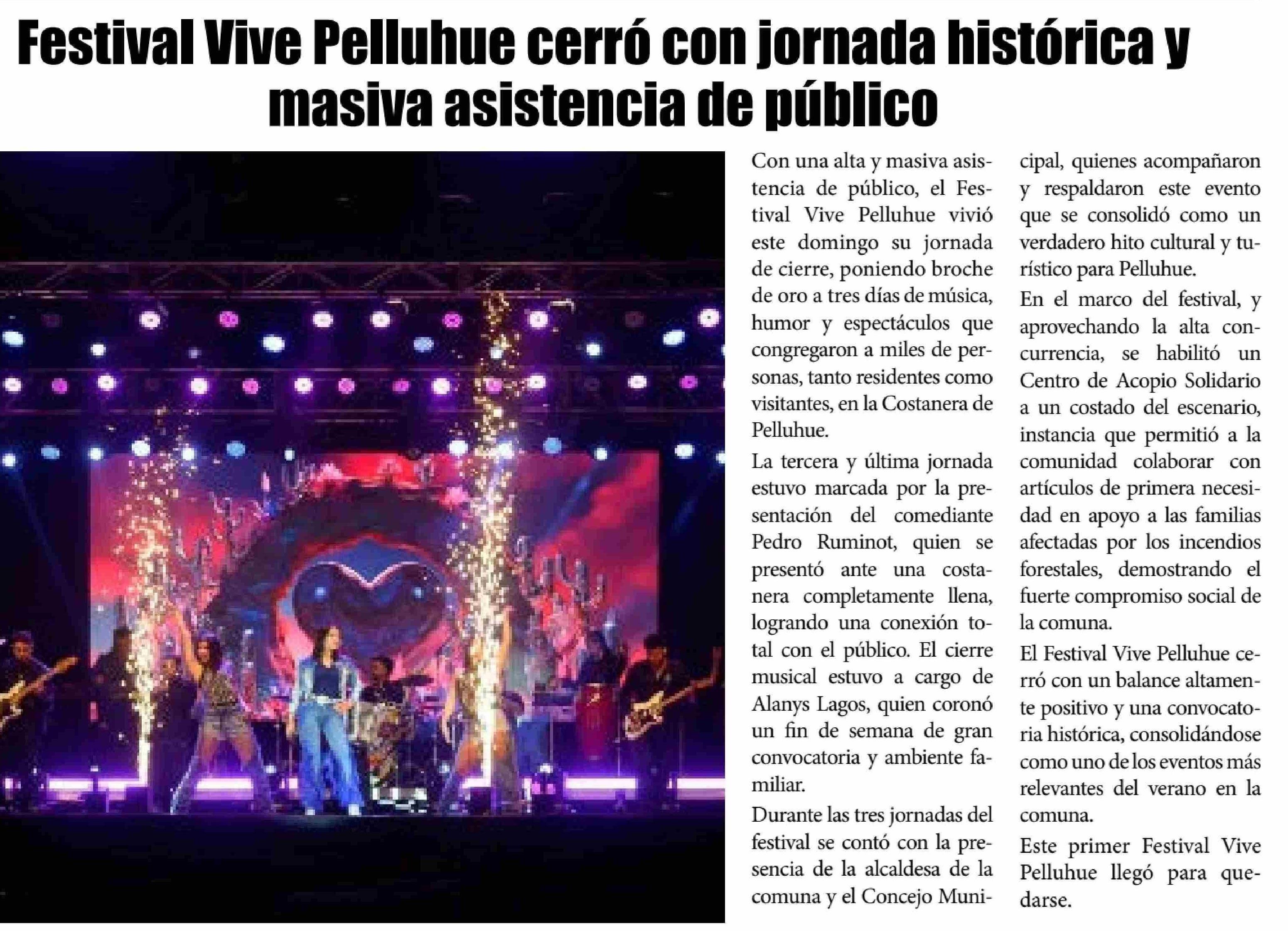| Título: | Festival Vive Pelluhue cerró con jornada histórica y masiva asistencia de público |