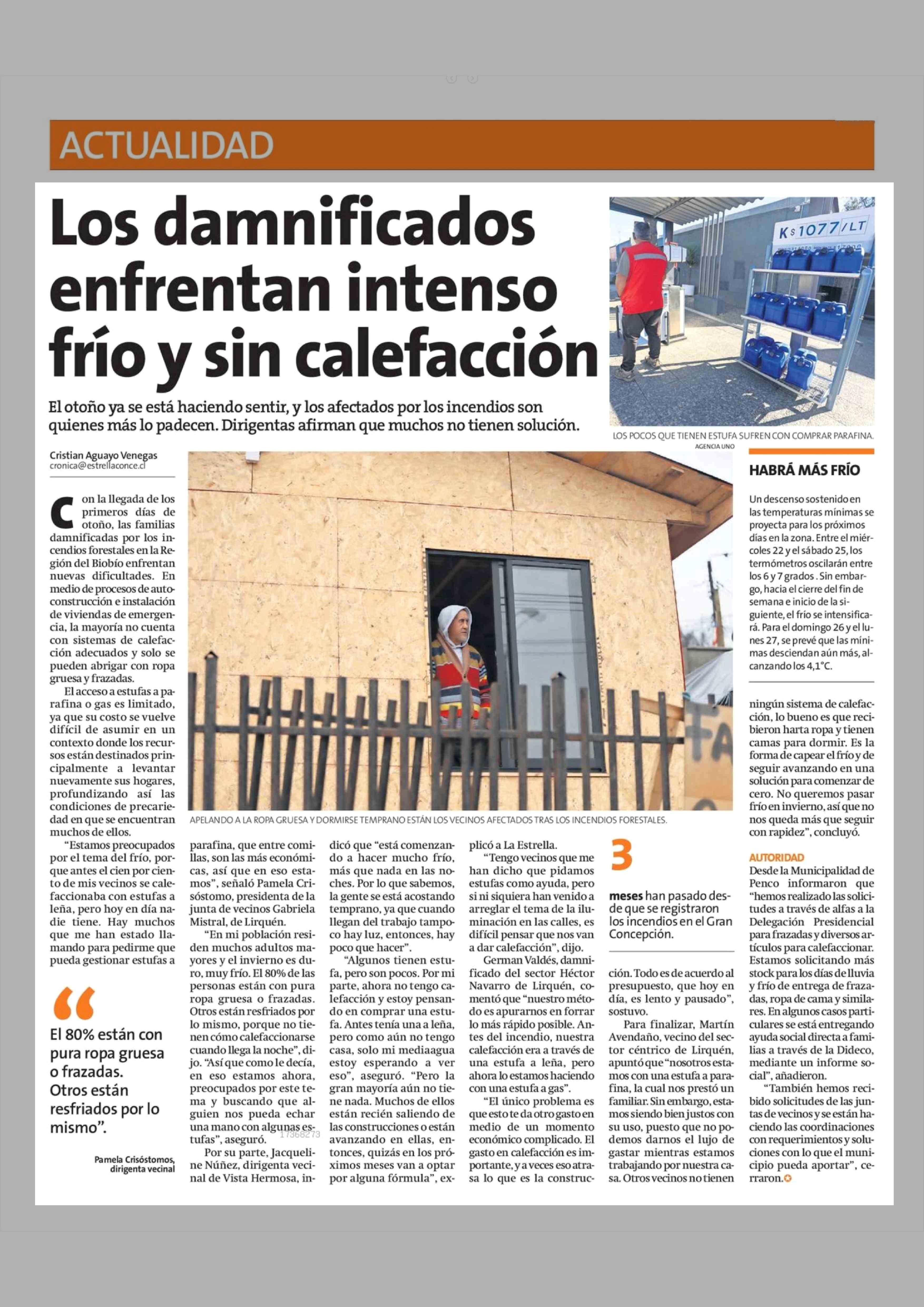 Título: Los damnificados enfrentan intenso frío y sin calefacción