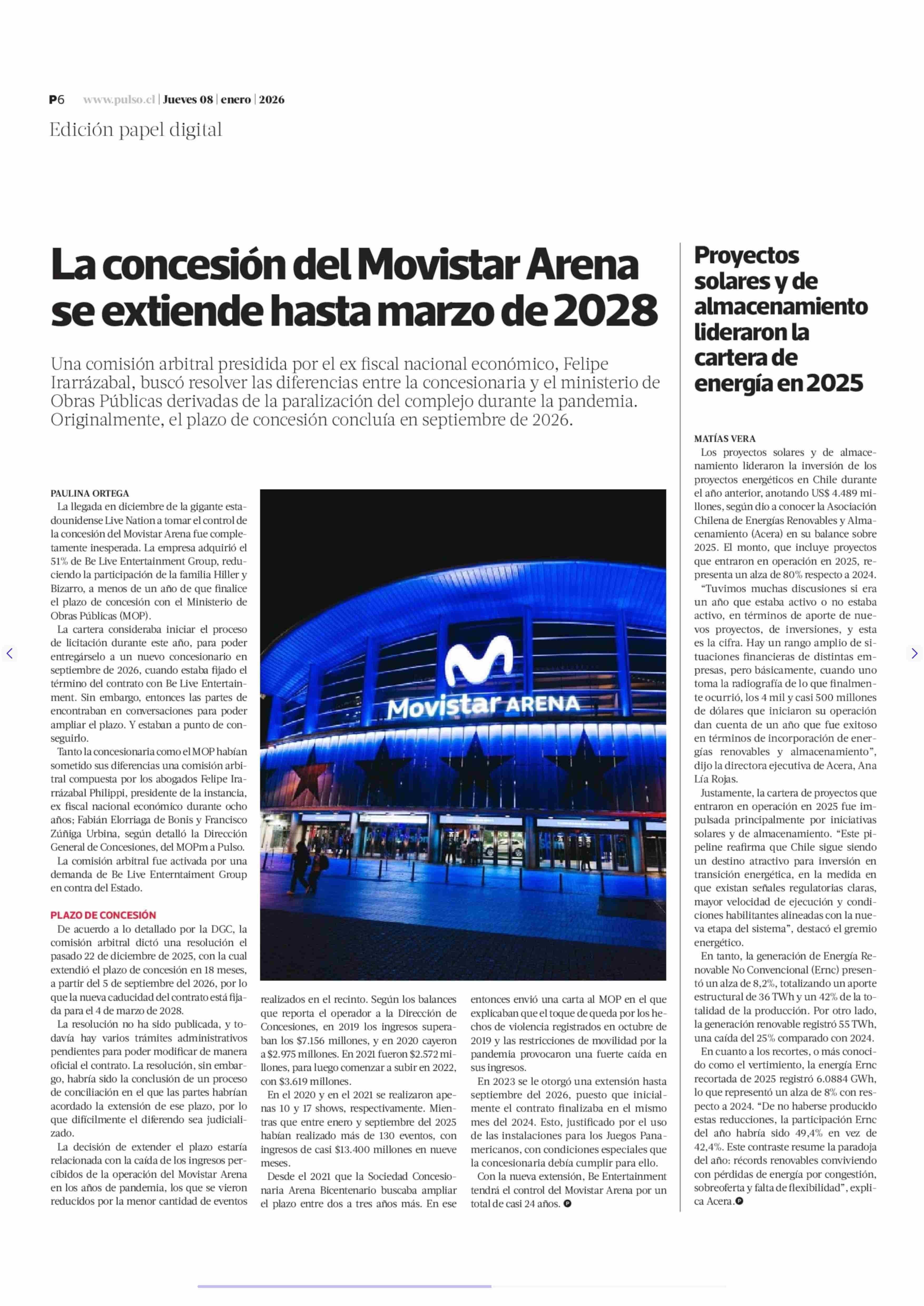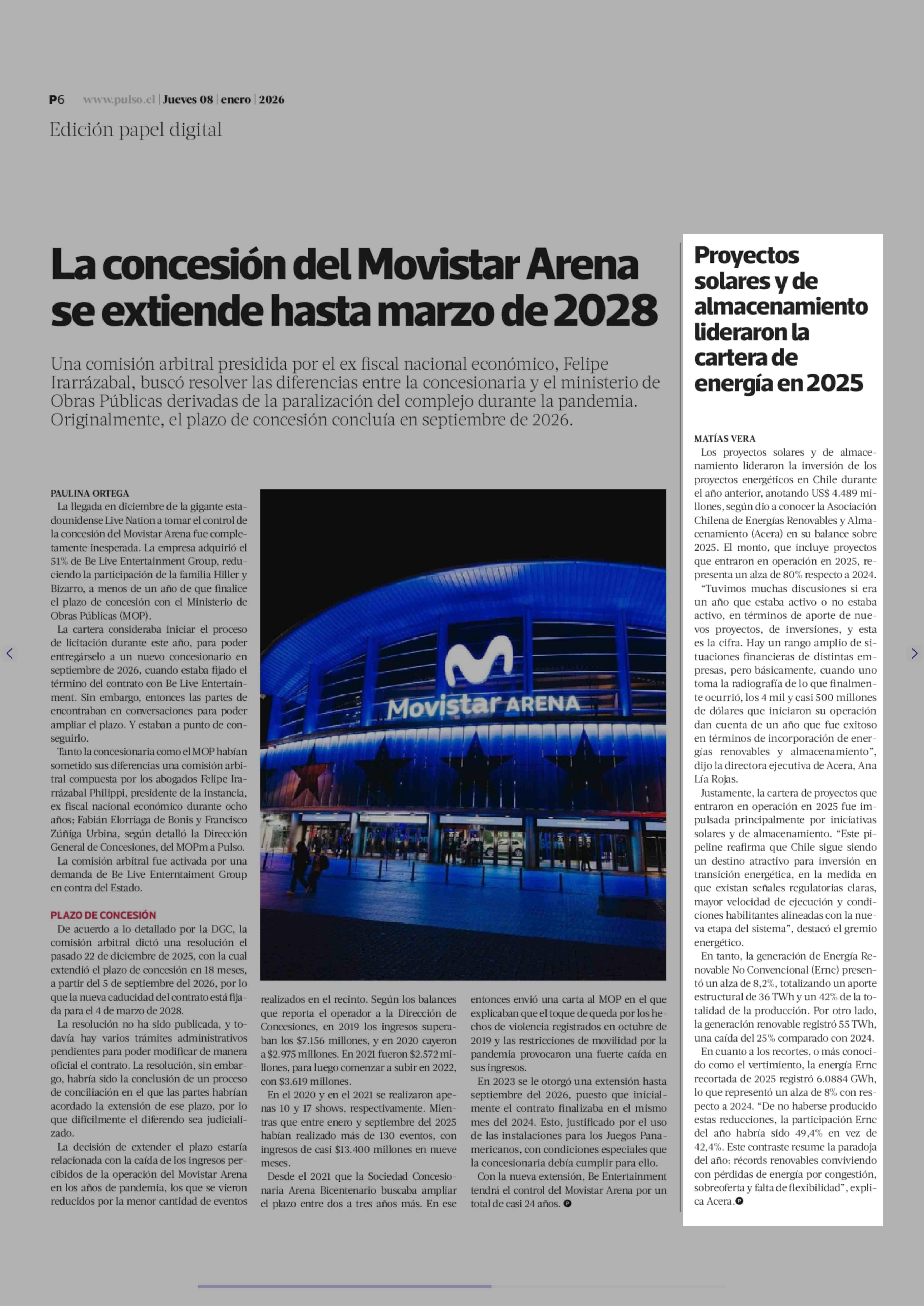 Proyectos solares y de almacenamiento lideraron la cartera de energía en 2025 08-01-2026 La Tercera |