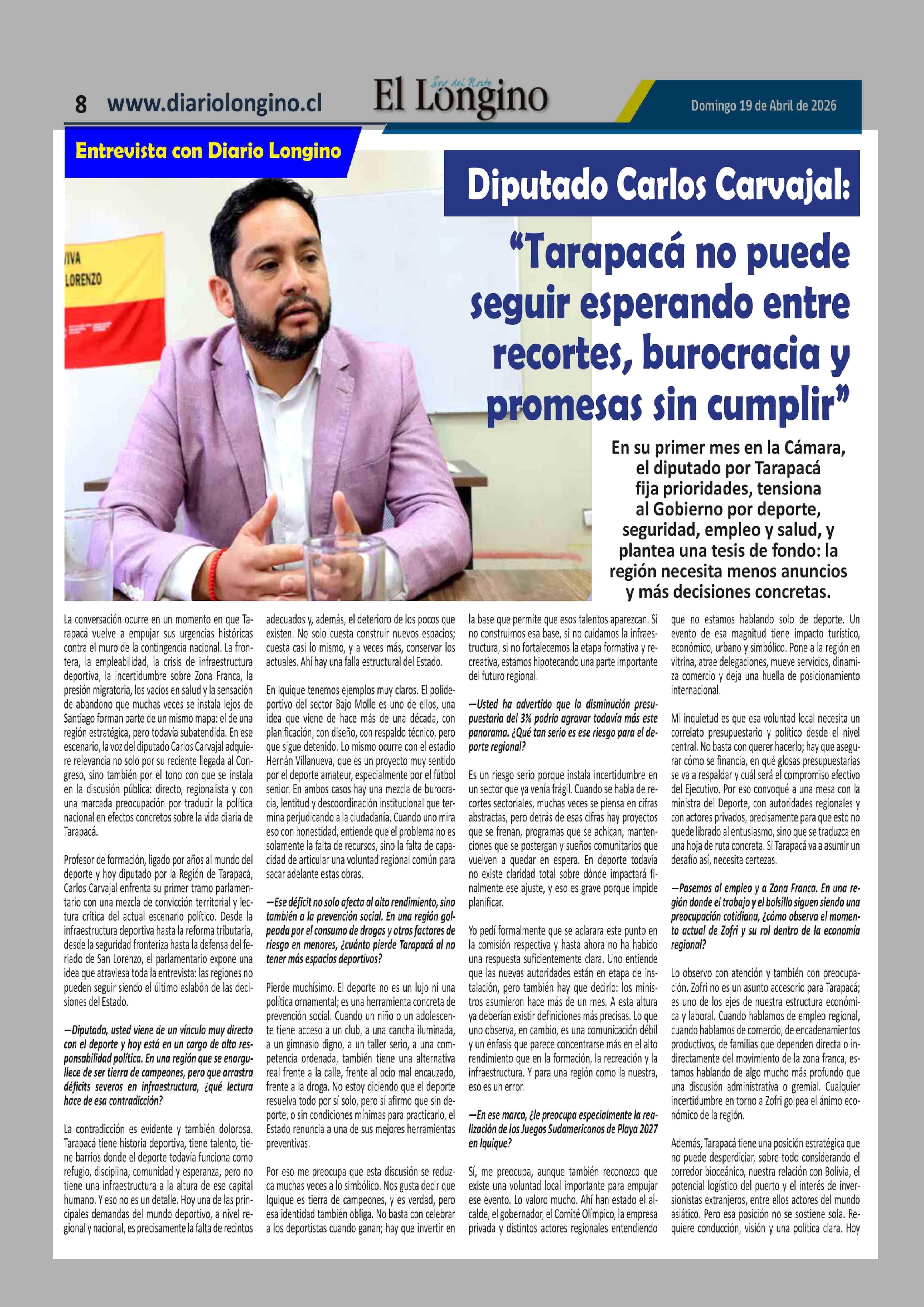 Título: Diputado Carlos Carvajal: "Tarapacá no puede seguir esperando entre recortes, burocracia y promesas sin cumplir"