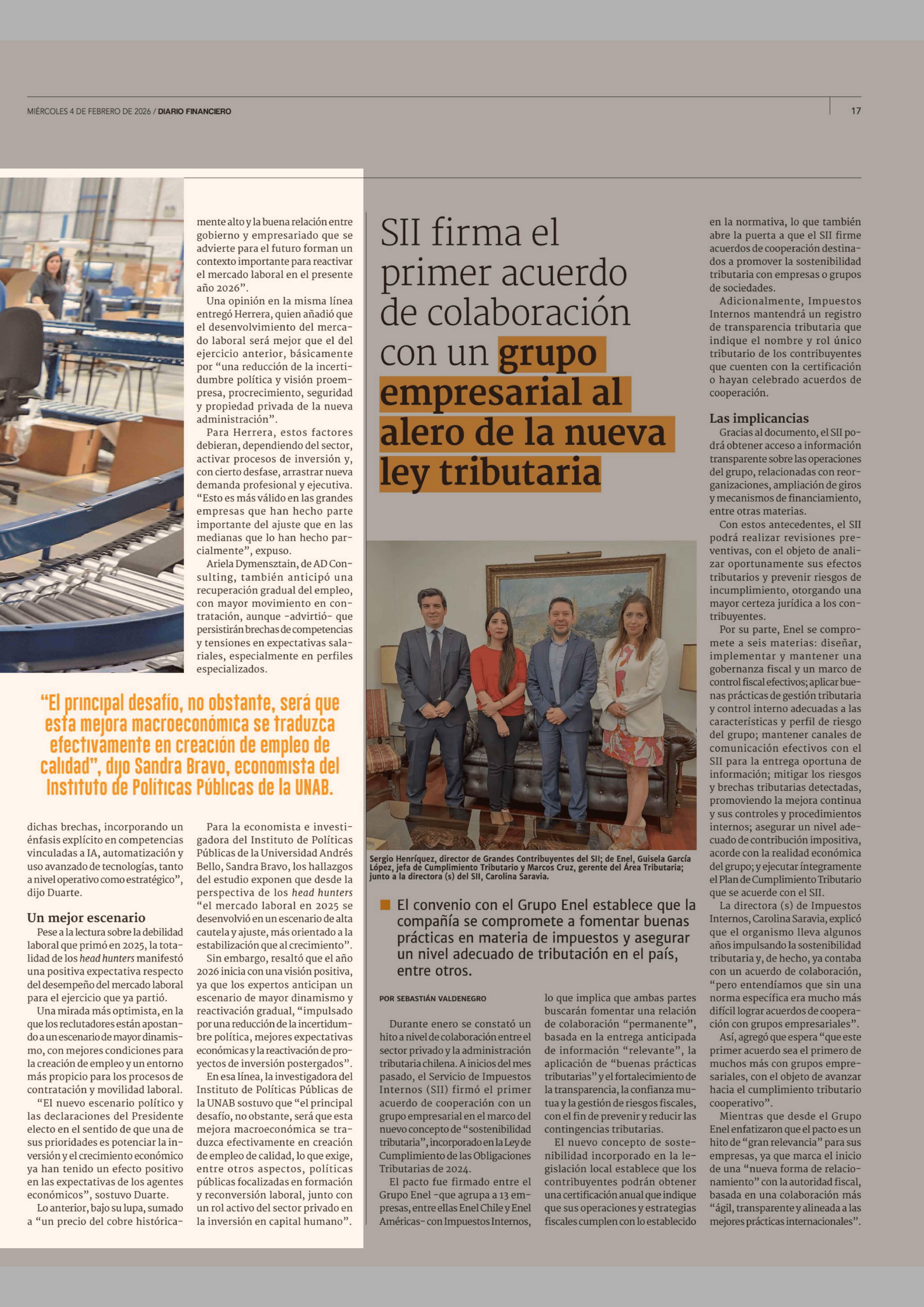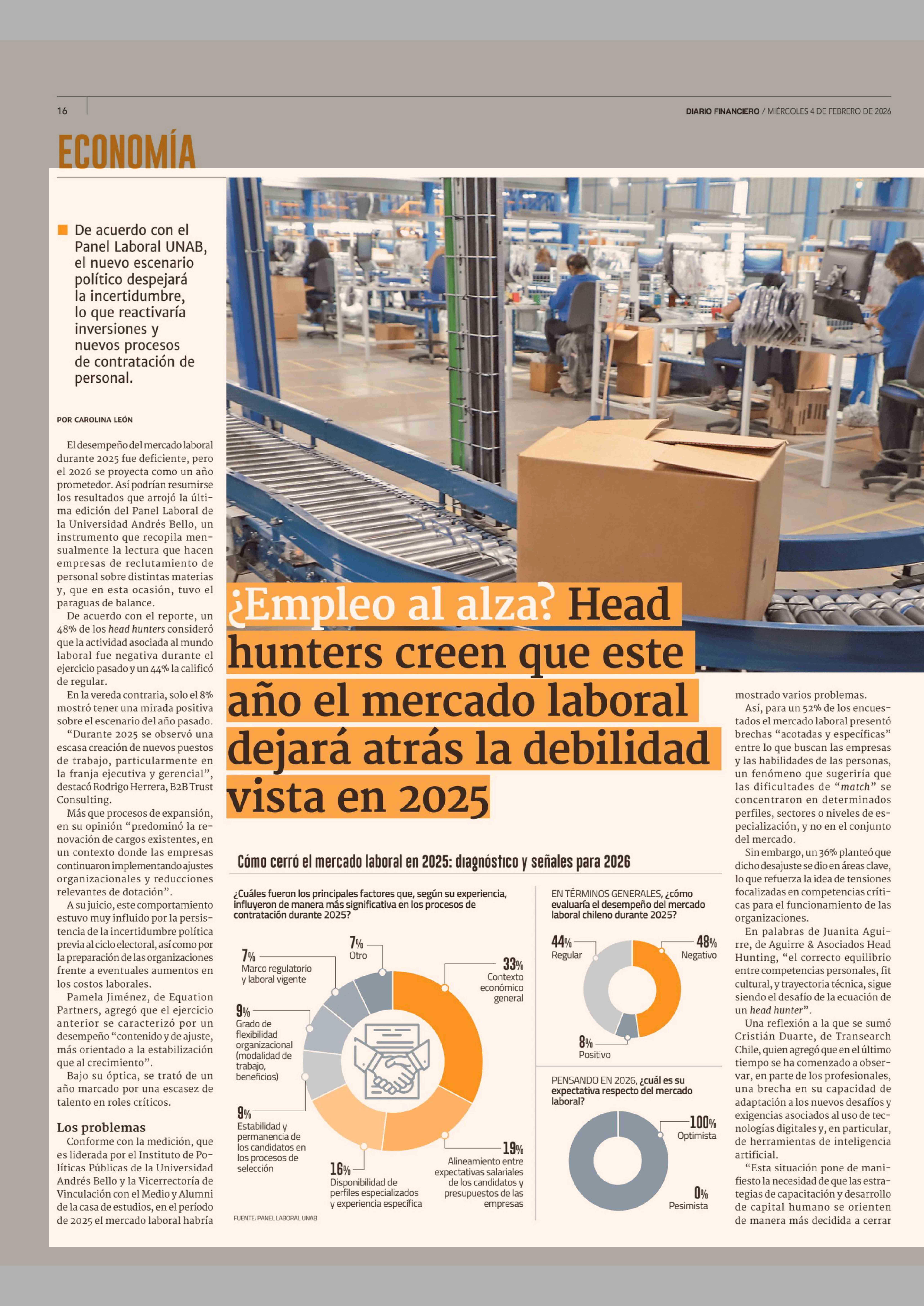 ¿Empleo al alza? Head hunters creen que este año el mercado laboral dejará atrás la debilidad vista en 2025 04-02-2026 Diario Financiero |