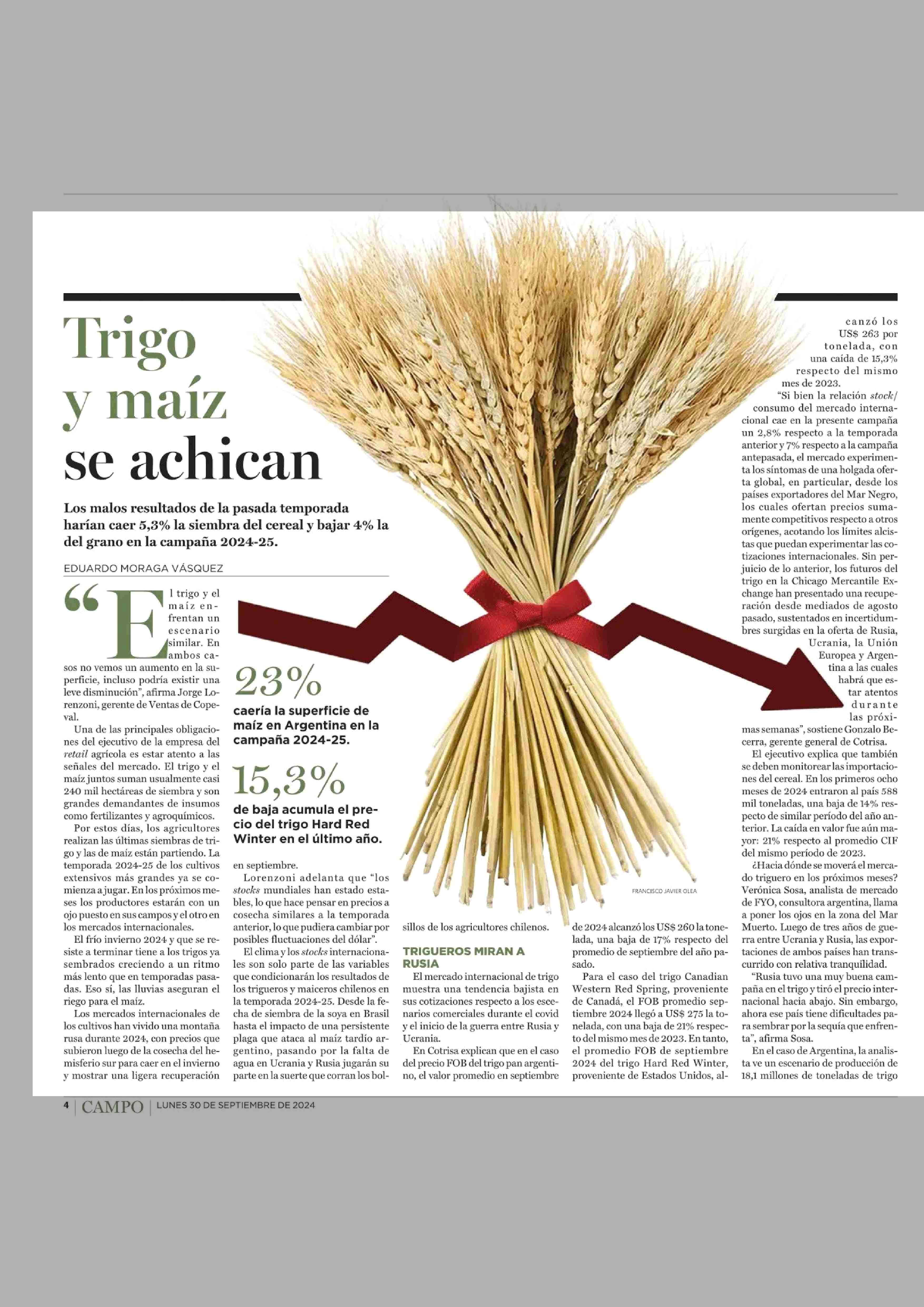Trigo y maiz se achican 30-09-2024 El Mercurio |