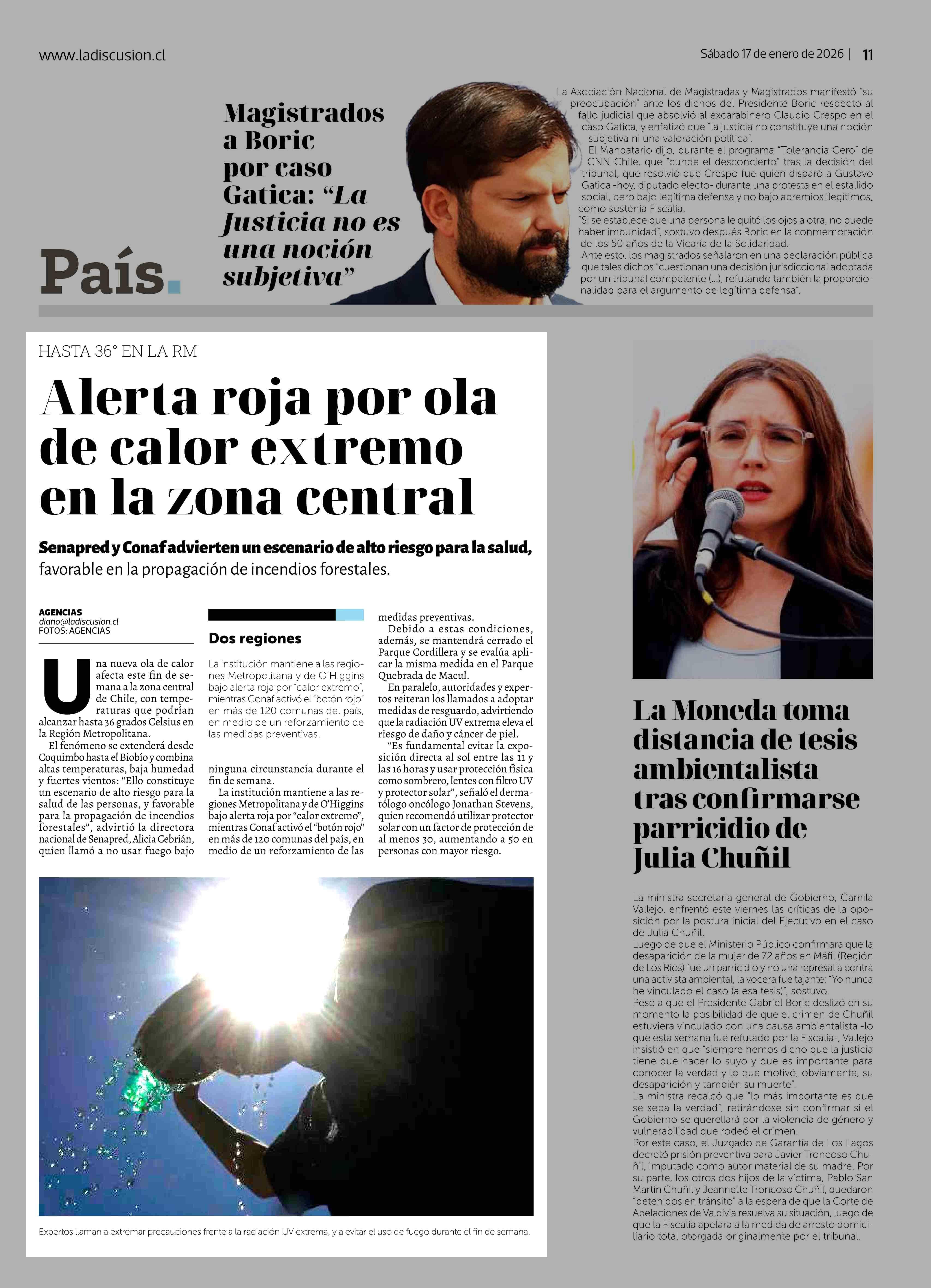 Alerta roja por ola de calor extremo en la zona central 17-01-2026 La Discusión |