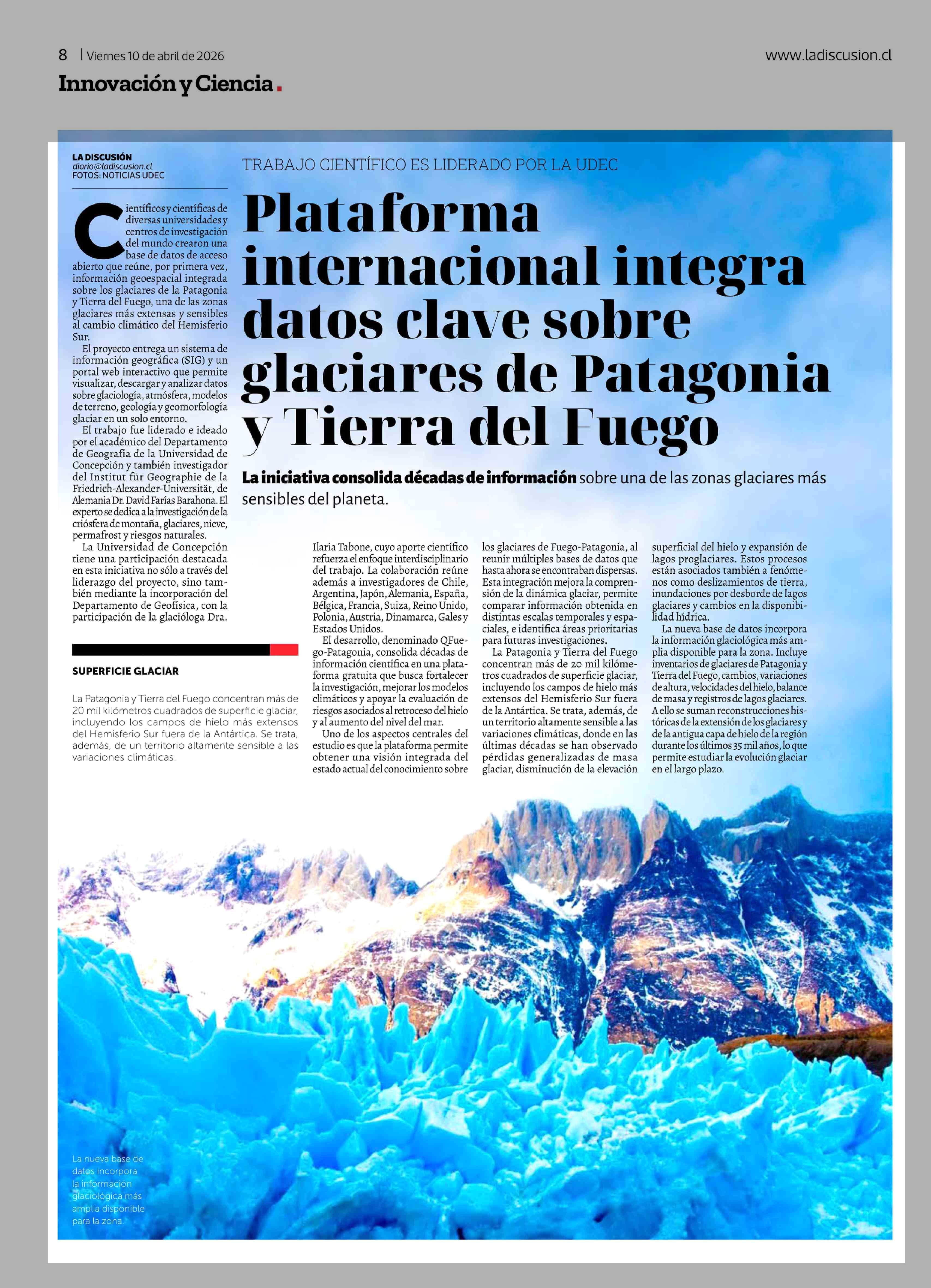 Título: Plataforma internacional integra datos clave sobre glaciares de Patagonia y Tierra del Fuego
