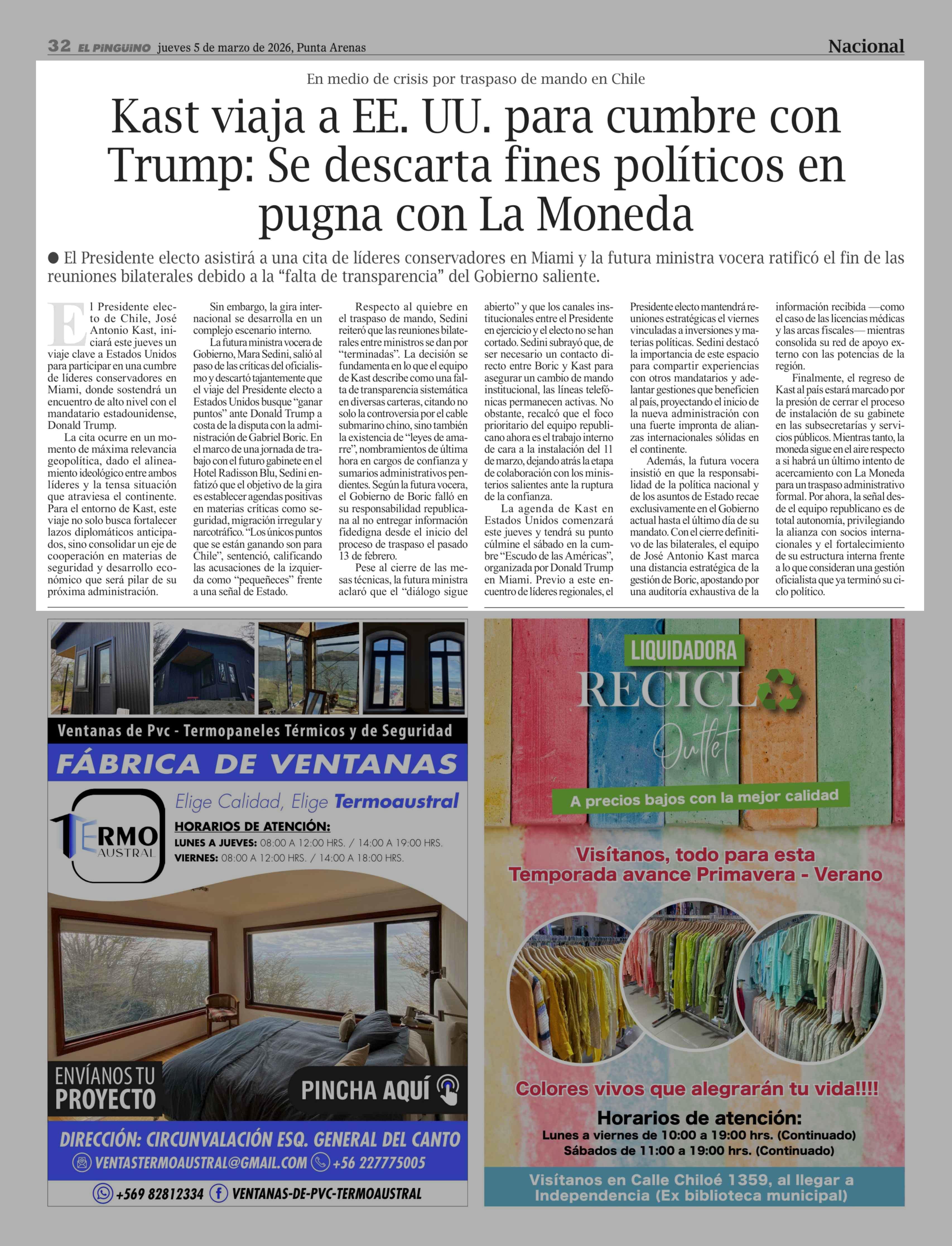 Fecha: 05-03-2026 Sector: Noticia general Región: Región de Magallanes y de la Antártica Chilena