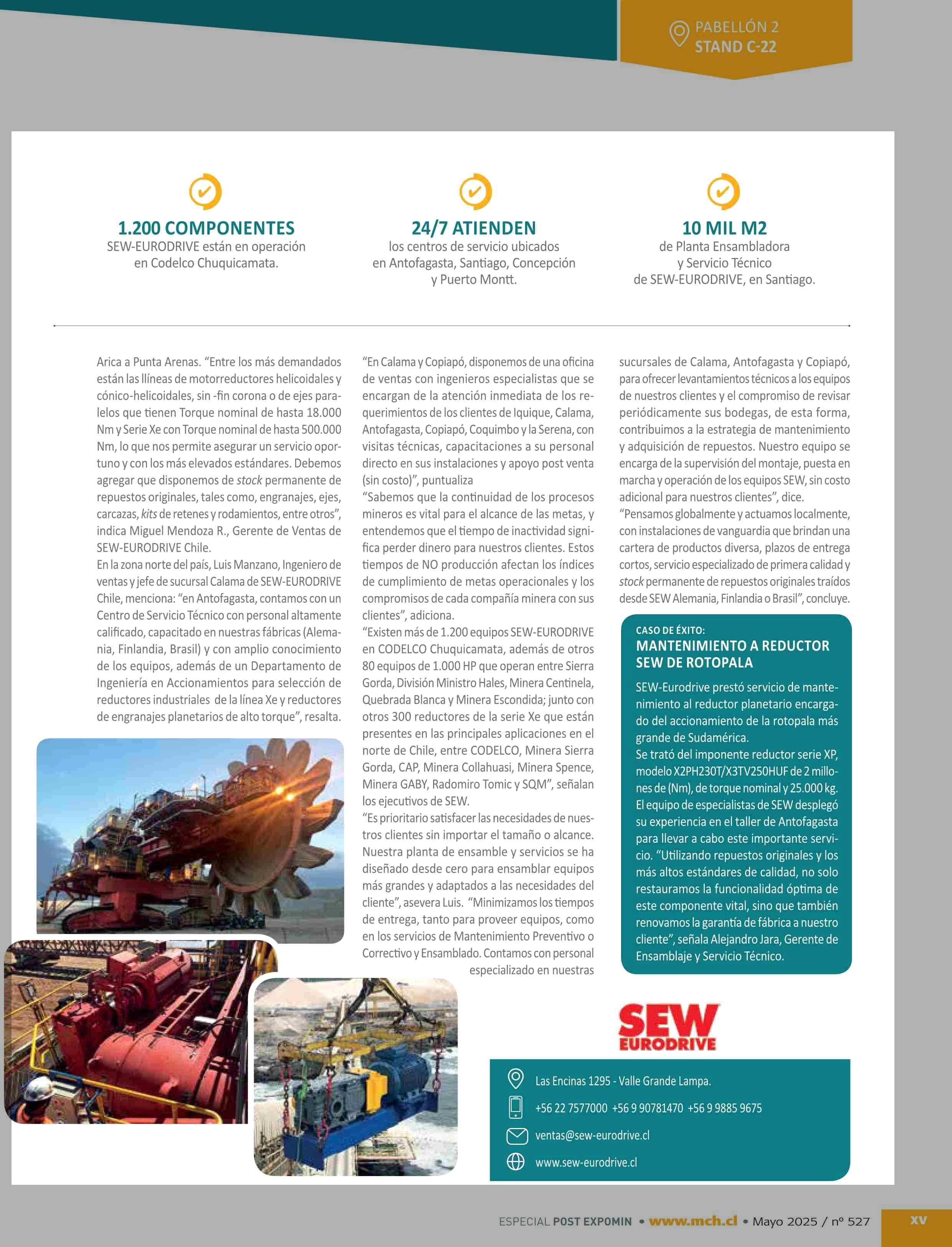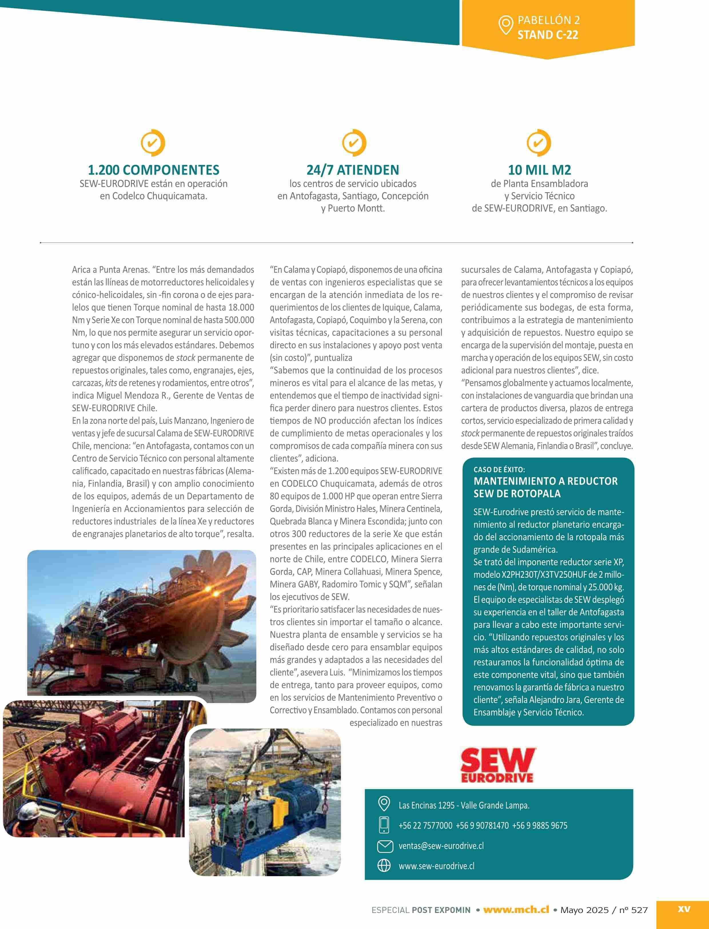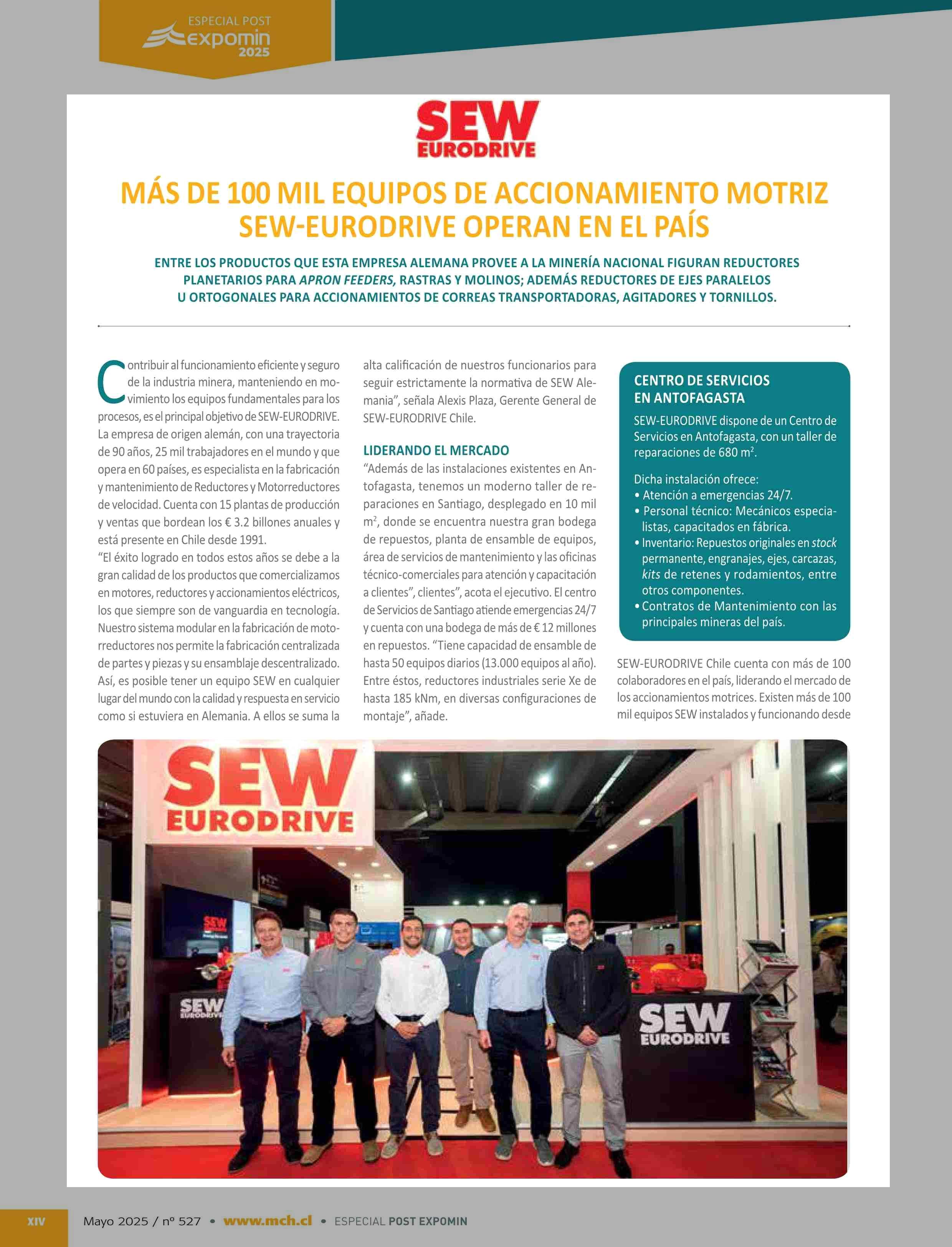 MÁS DE 100 MIL EQUIPOS DE ACCIONAMIENTO MOTRIZ SEW-EURODRIVE OPERAN EN EL PAÍS 27-05-2025 Revista Minería Chilena |