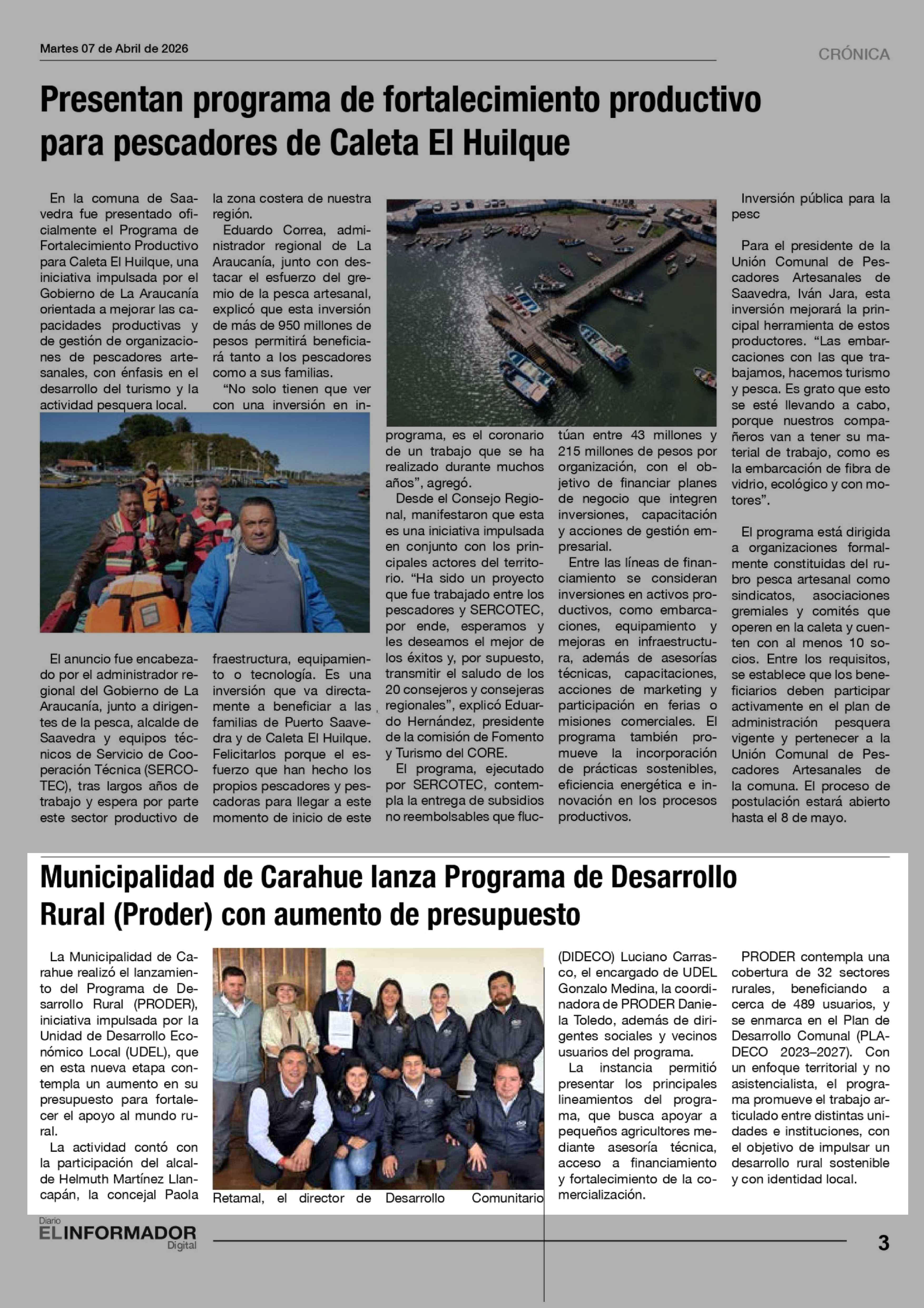 Título: Municipalidad de Carahue lanza Programa de Desarrollo Rural (Proder) con aumento de presupuesto