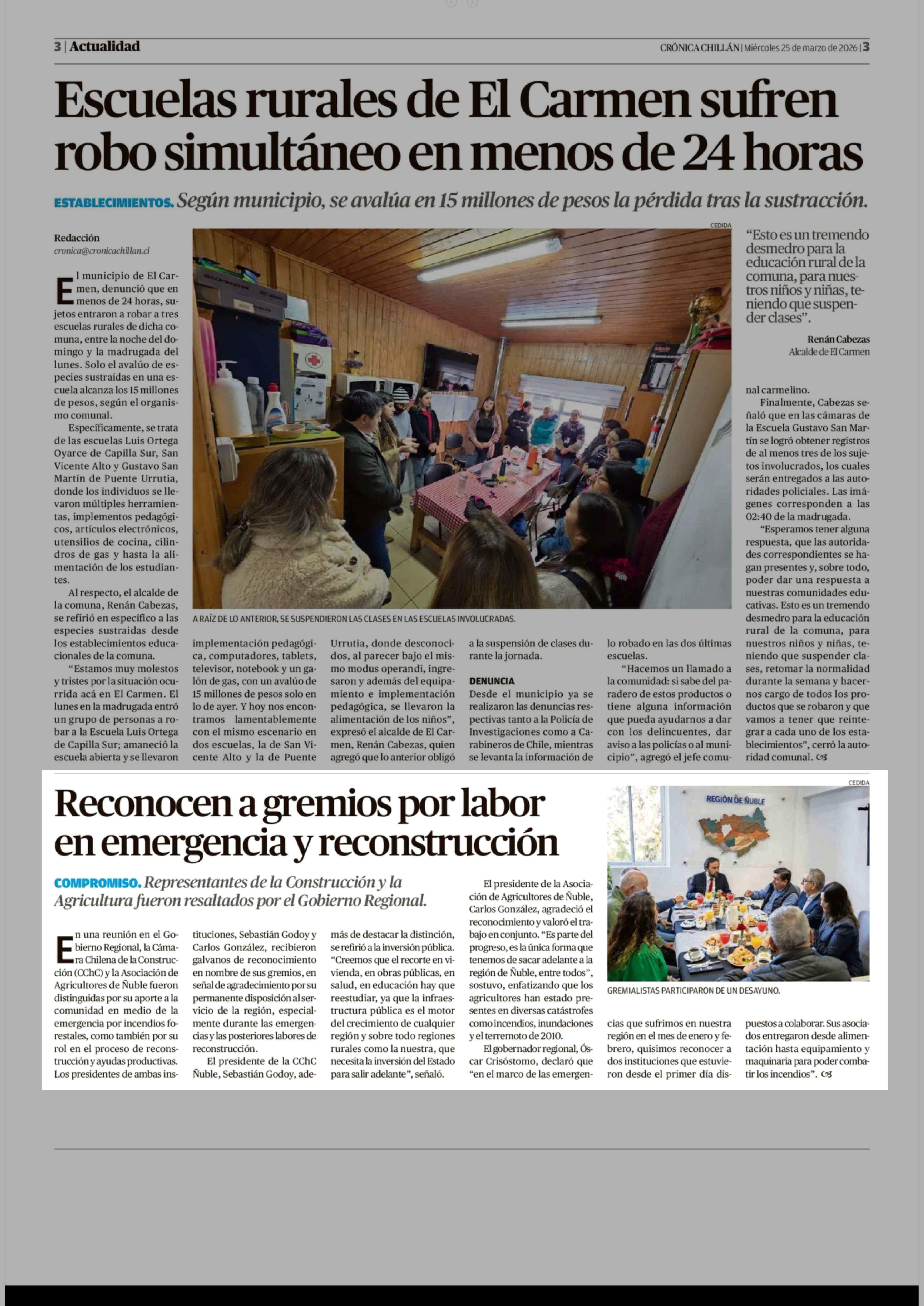 Fecha: 25-03-2026 Sector: Noticia general Región: Región del Ñuble
