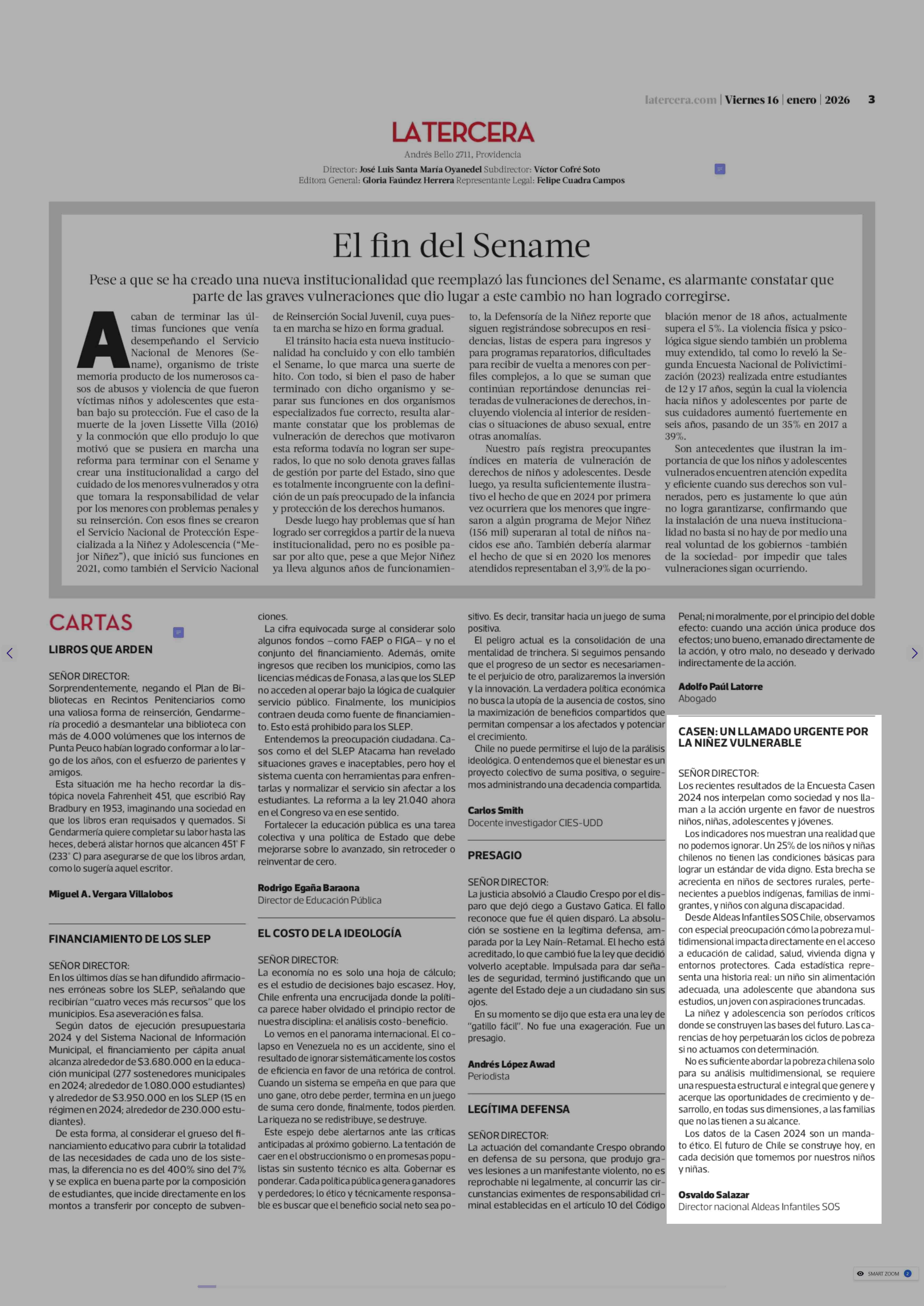 CASEN: UN LLAMADO URGENTE POR LA NIÑEZ VULNERABLE 16-01-2026 La Tercera |