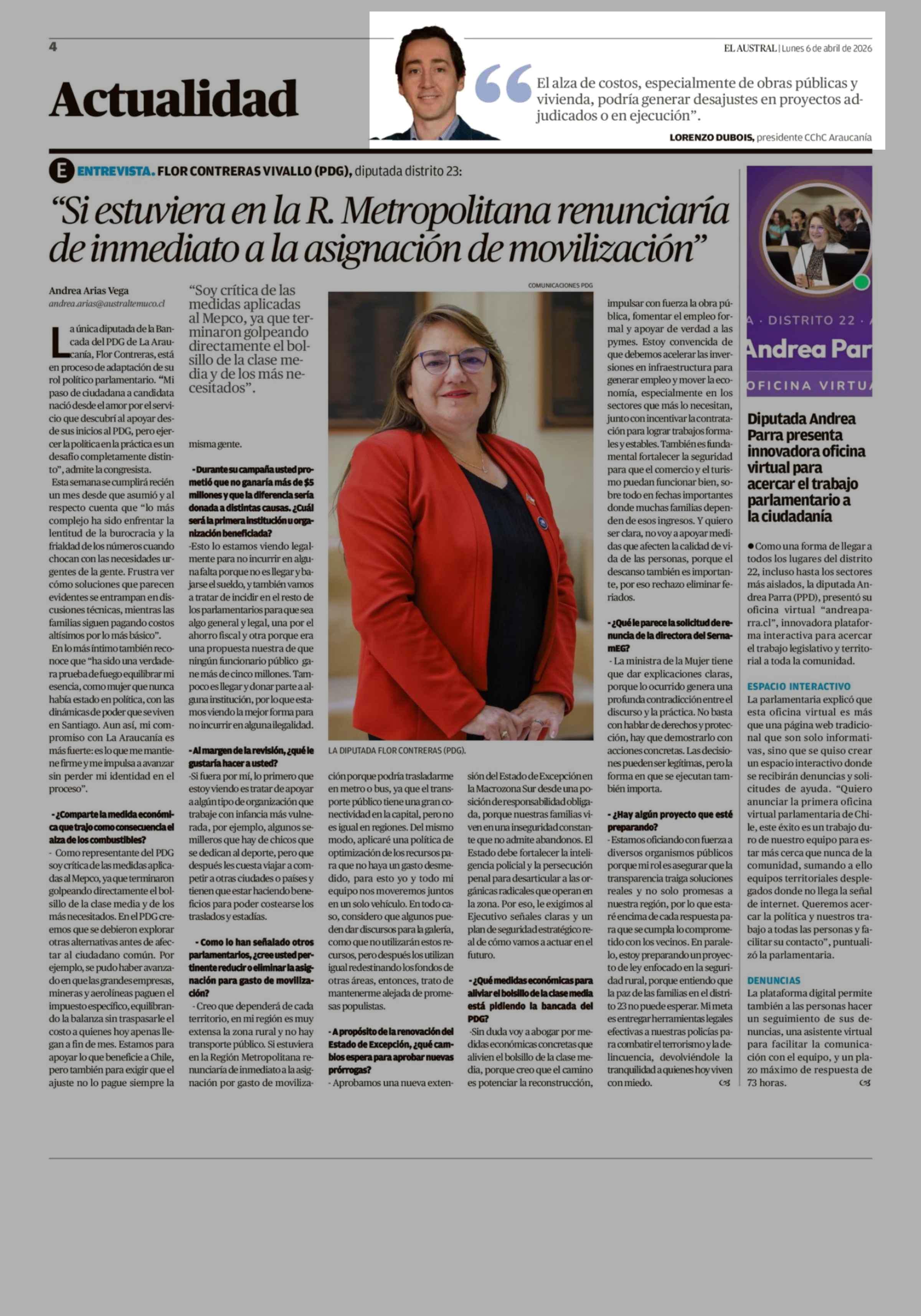 Fuente: El Austral de la Araucanía (El Austral de la Araucanía) Página(s): 4