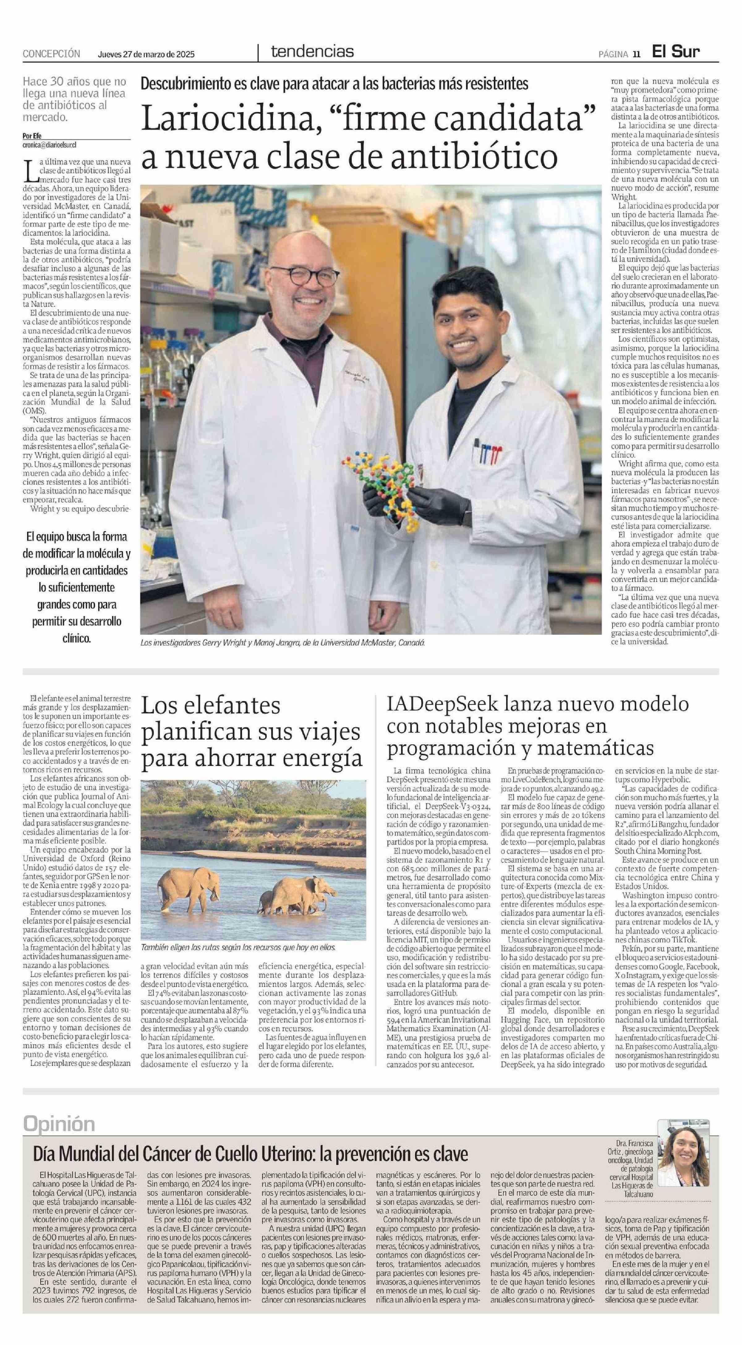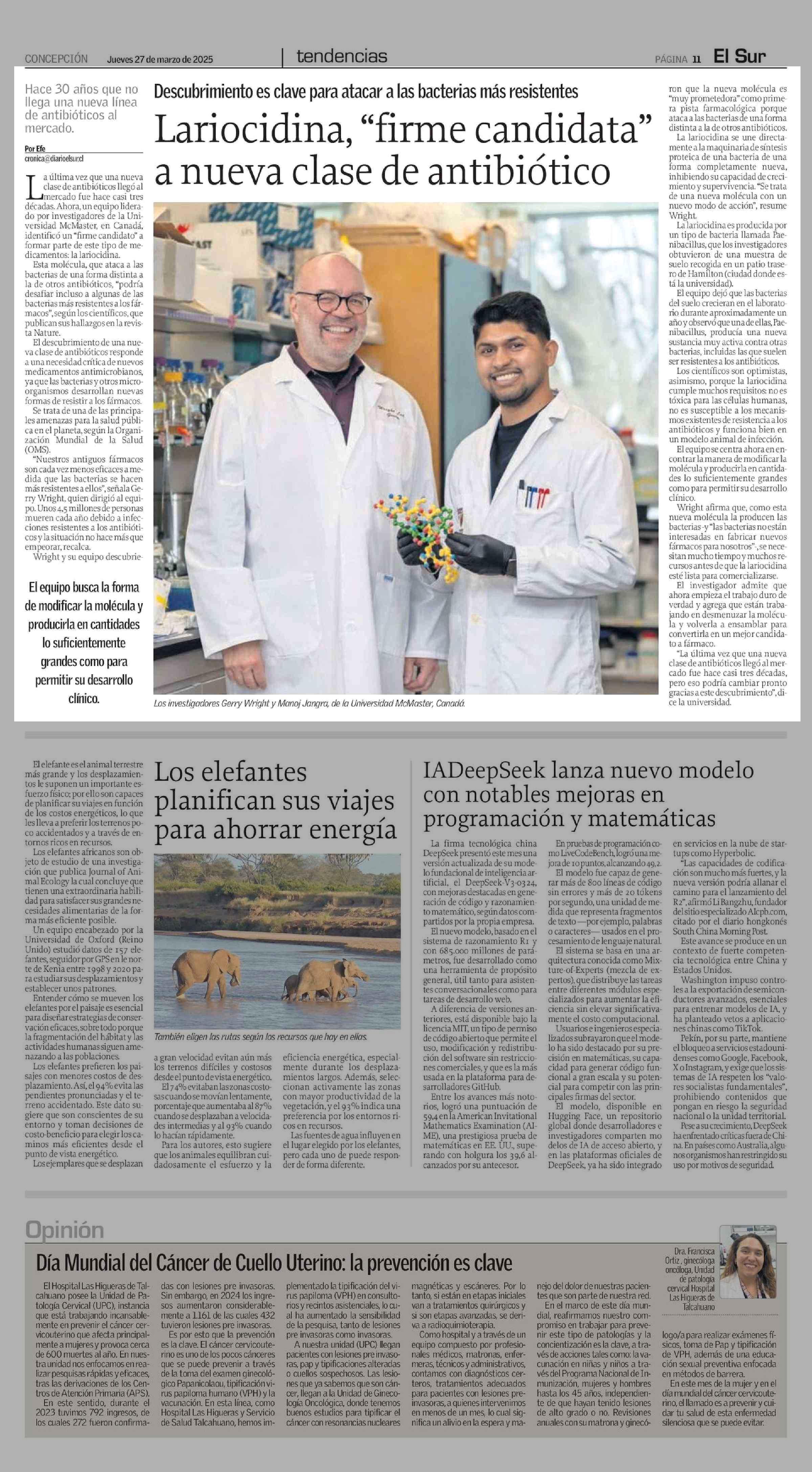 Lariocidina, “firme candidata” a nueva clase de antibiótico 27-03-2025 El Sur |