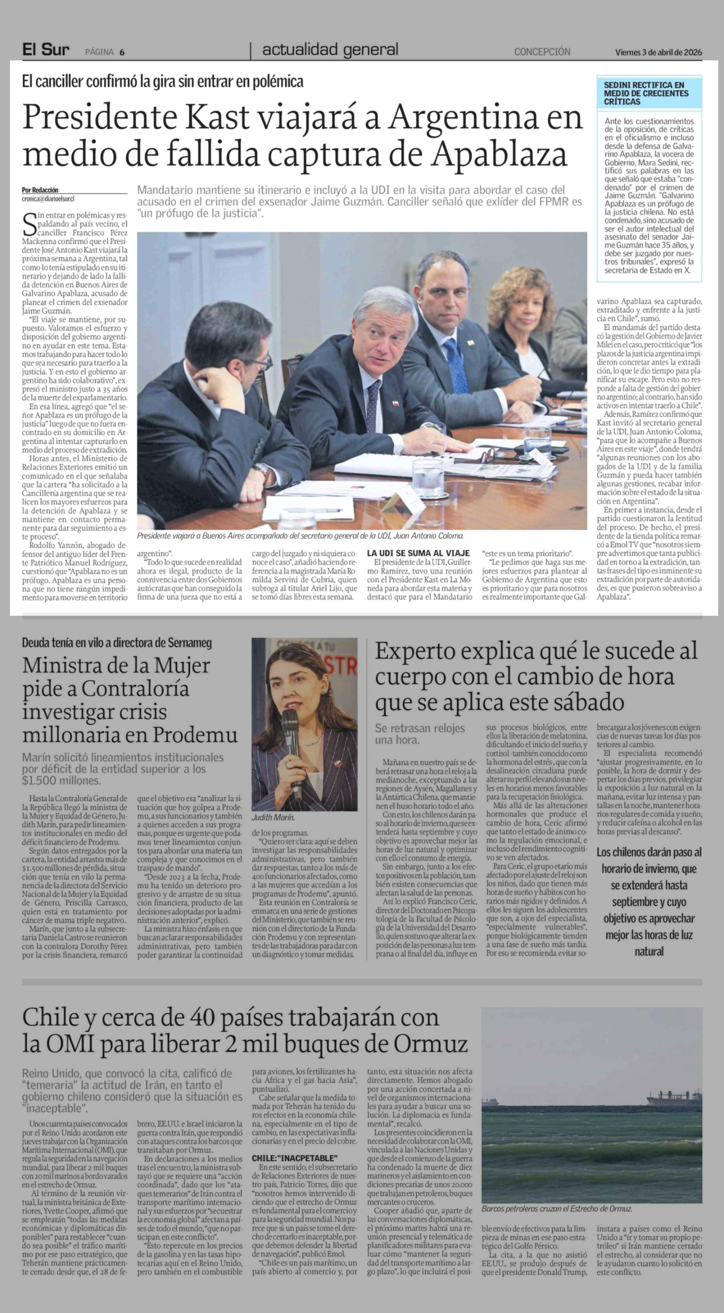Presidente Kast viajará a Argentina en medio de fallida captura de Apablaza 03-04-2026 El Sur |