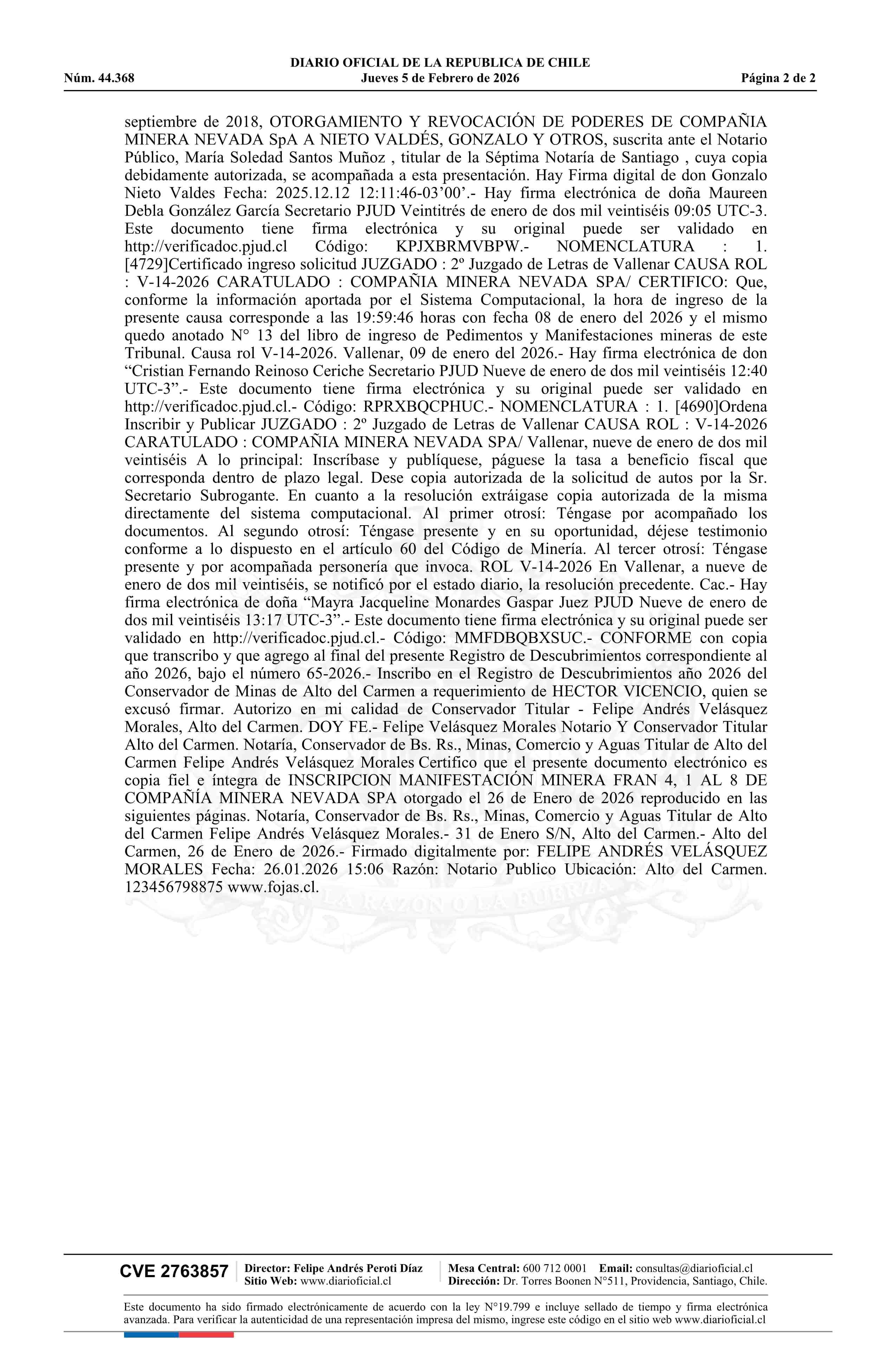05-02-2026 DIARIO OFICIAL CHILE - BOLETÍN OFICIAL DE MINERÍA