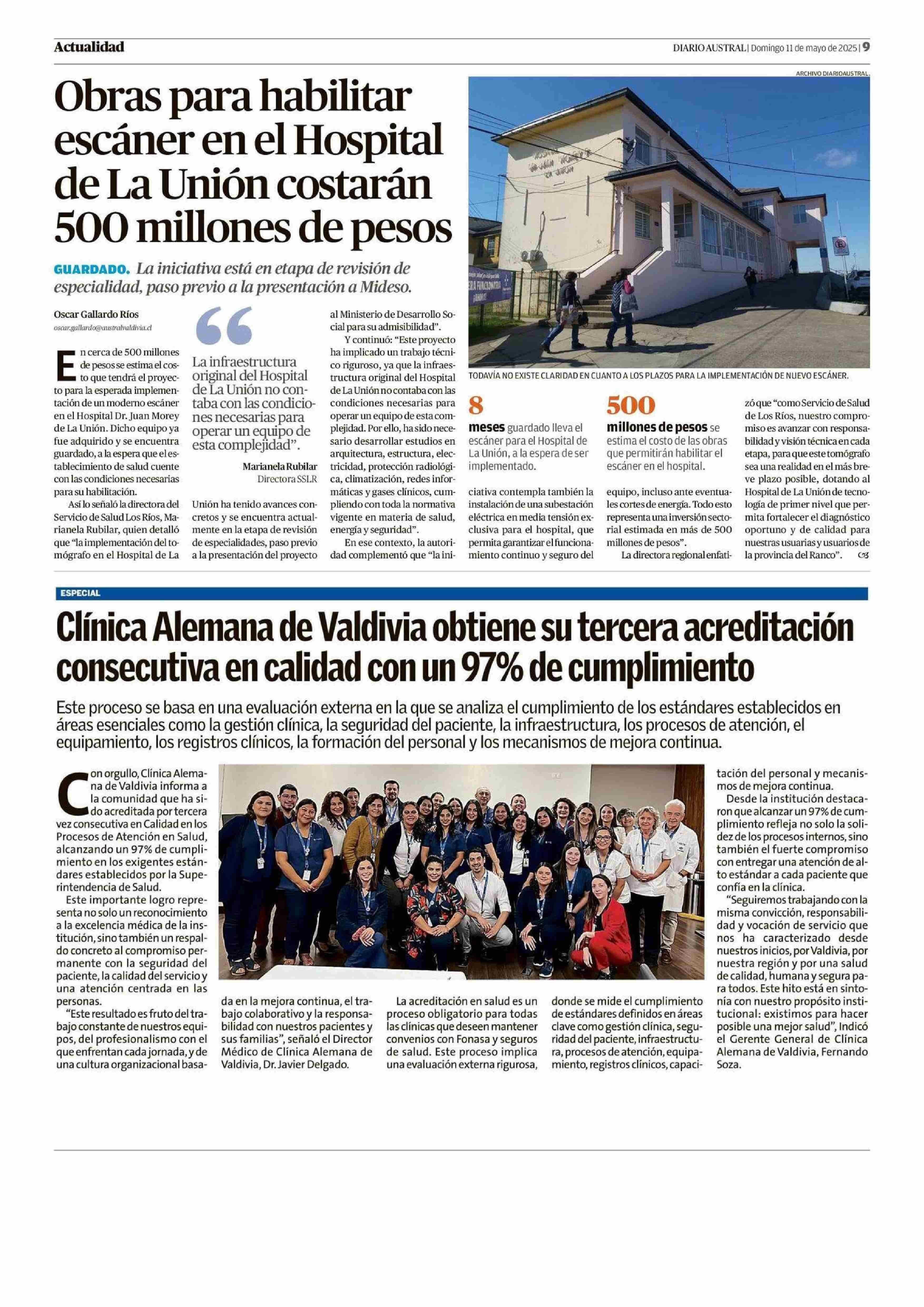Obras para habilitar escáner en el Hospital 500 millones de pesos 11-05-2025 Diario Austral Región de Los Ríos |