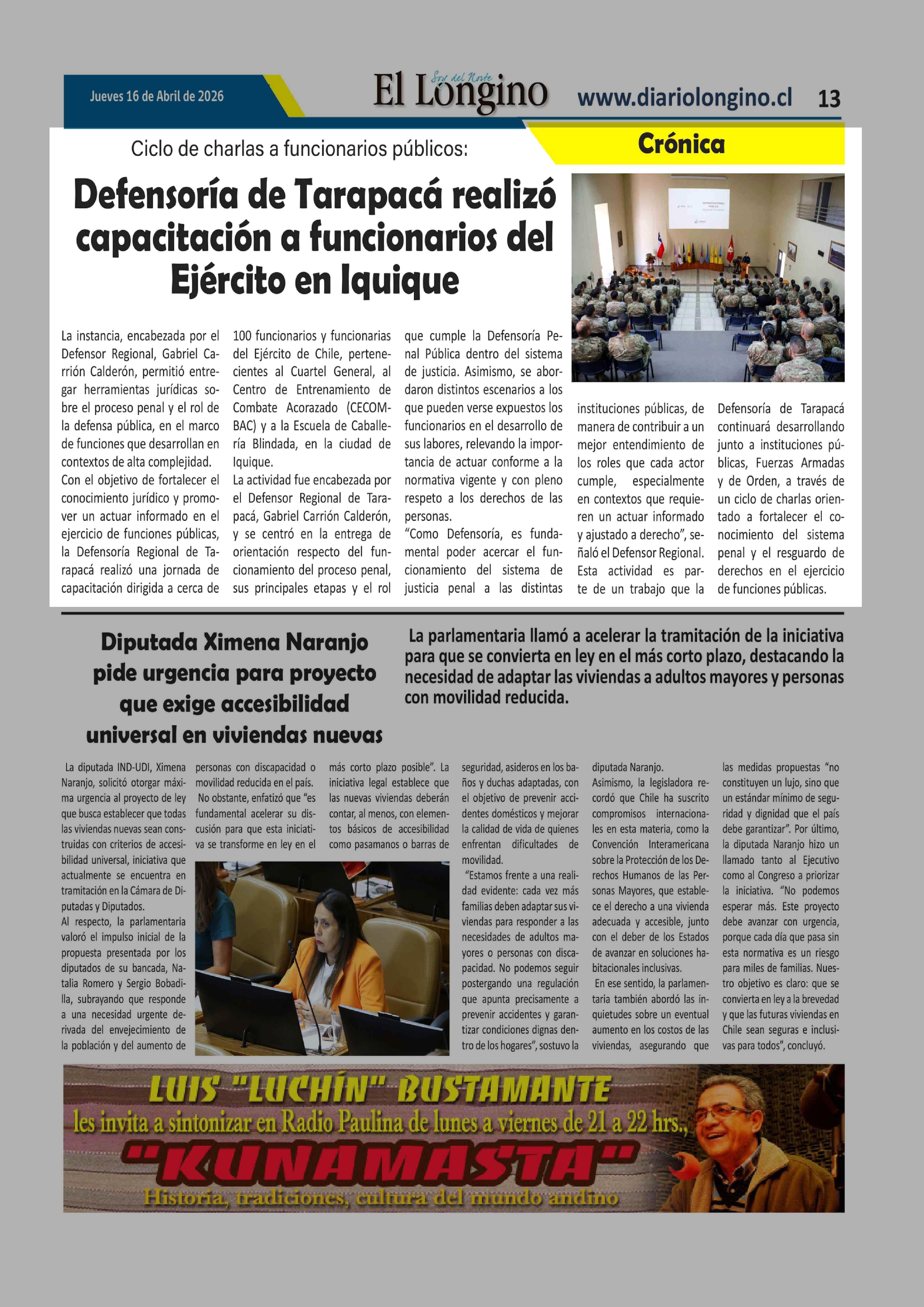 Fecha: 16-04-2026 Sector: Noticia general Región: Región de Tarapacá